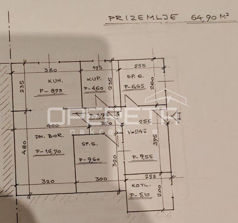 U prizemlju se nalaze 3 spavaće sobe, kupaonica, kuhinja i dnevni boravak.