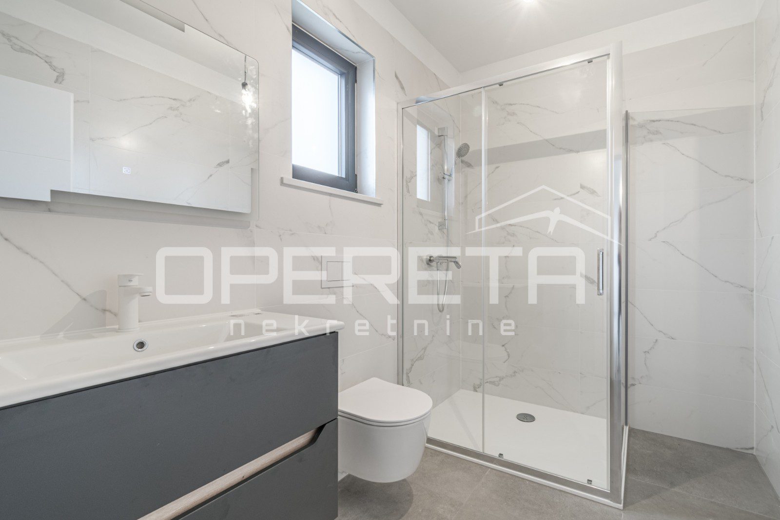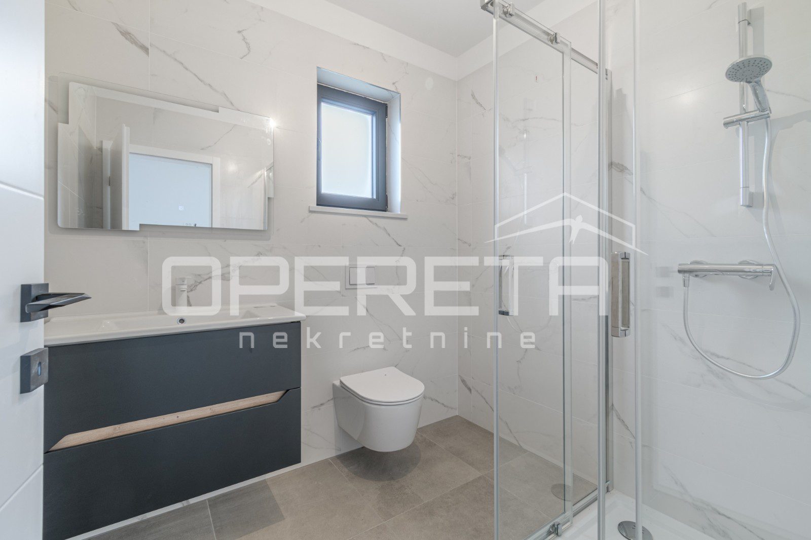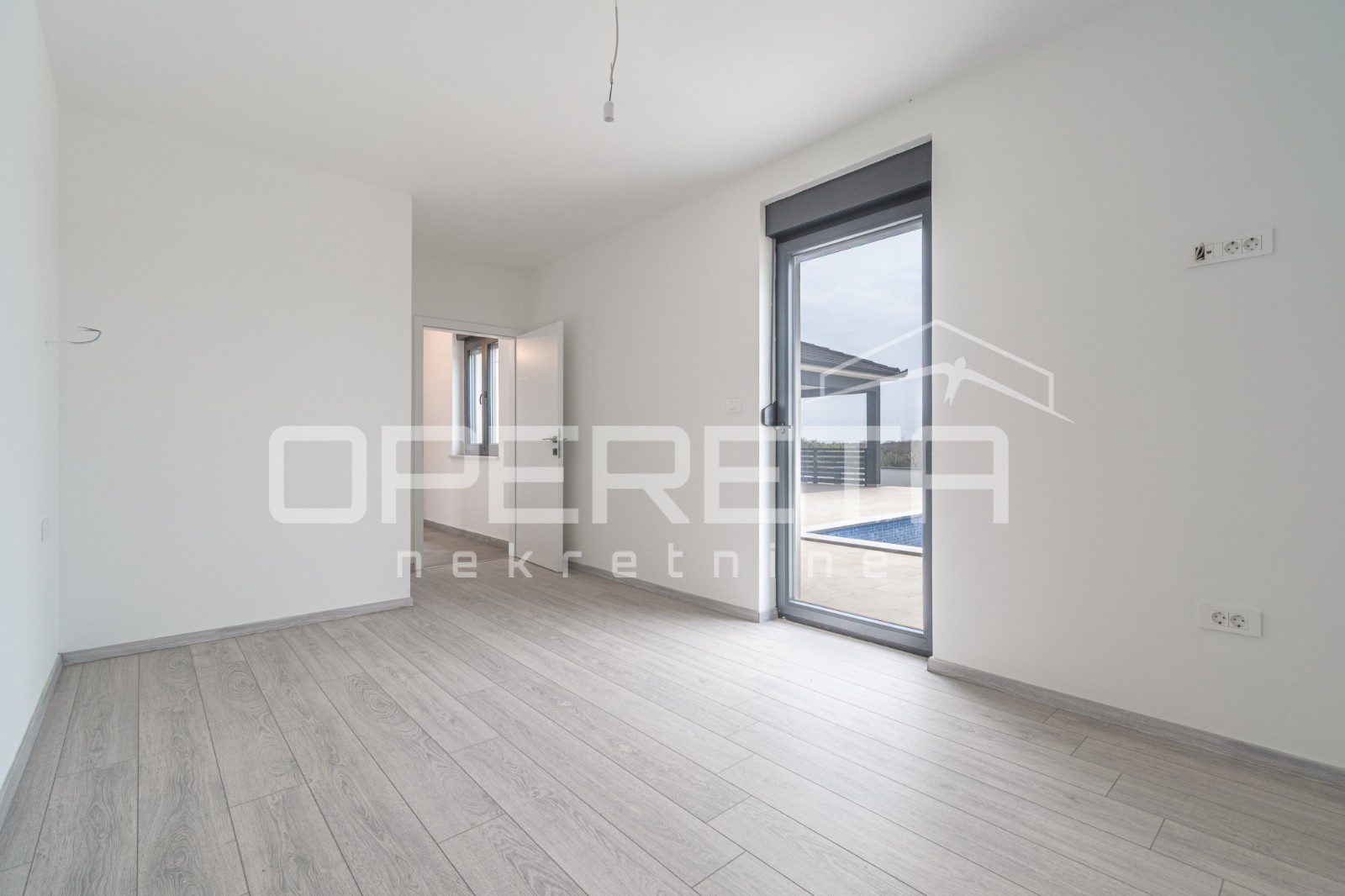 U vanjskom dijelu predviđen je prostor za ljetnu kuhinju, idealan za boravak na otvorenom i druženja tijekom toplijih mjeseci. Bazen površine 32 m² dodatno doprinosi osjećaju privatnosti i komfora.