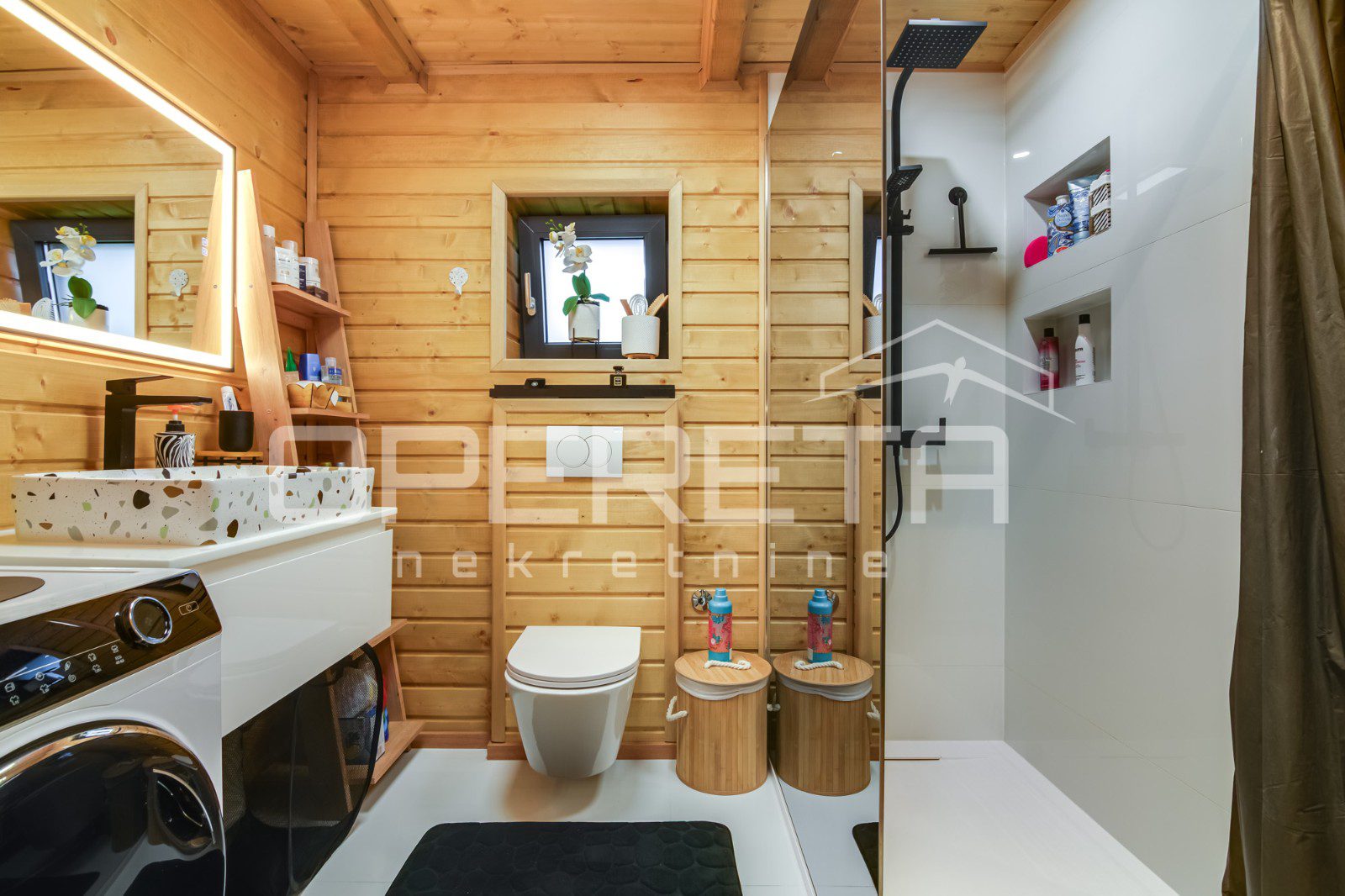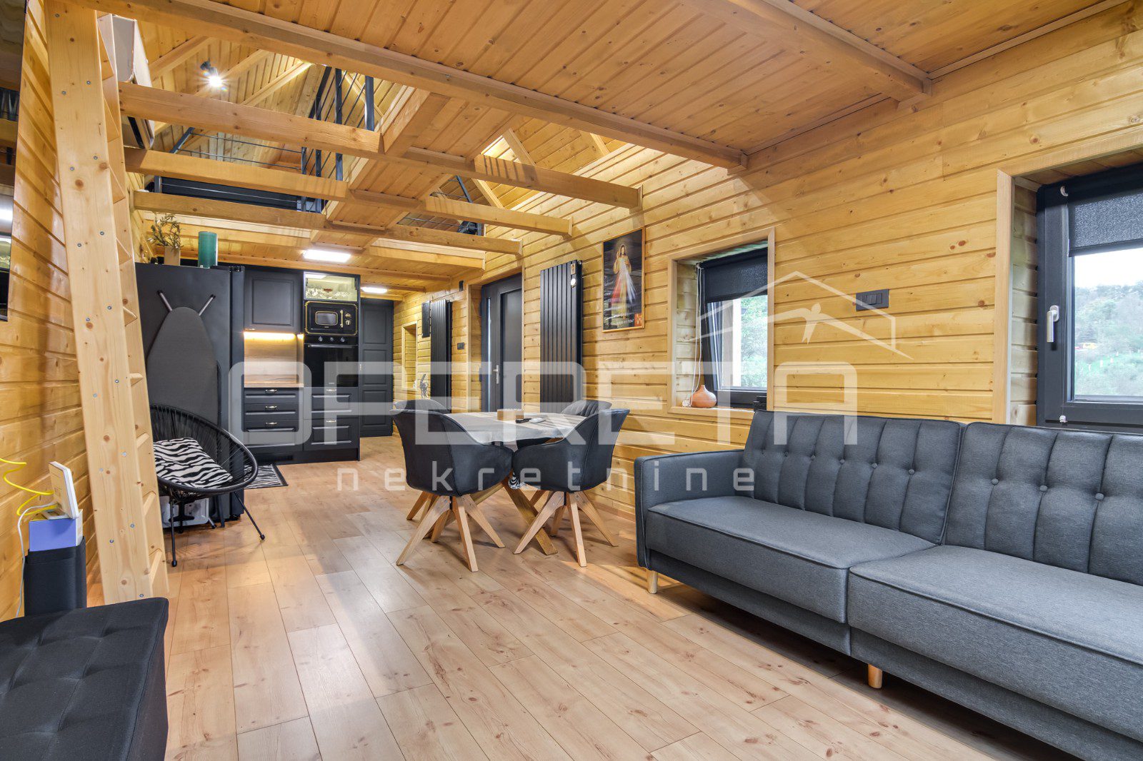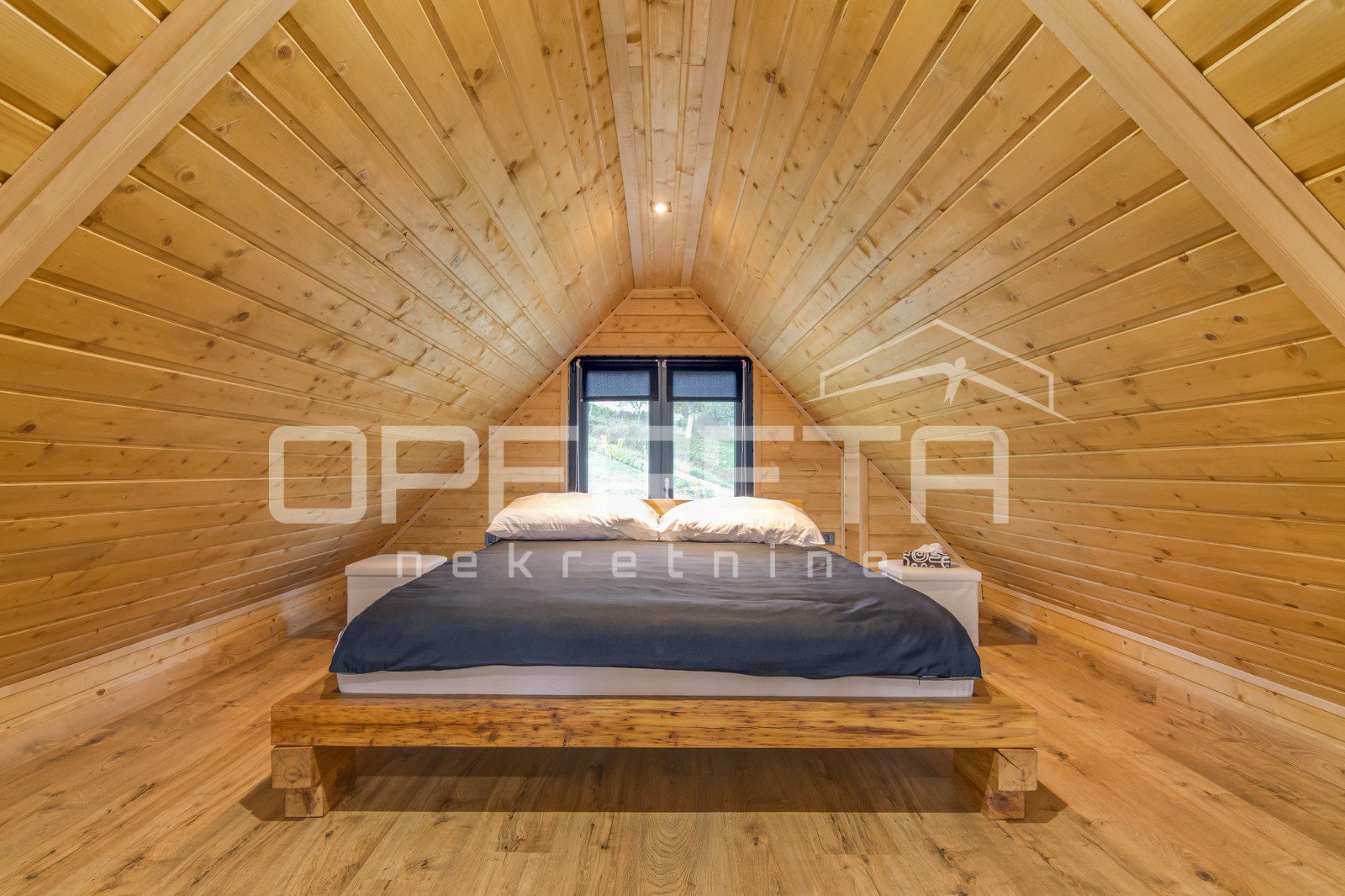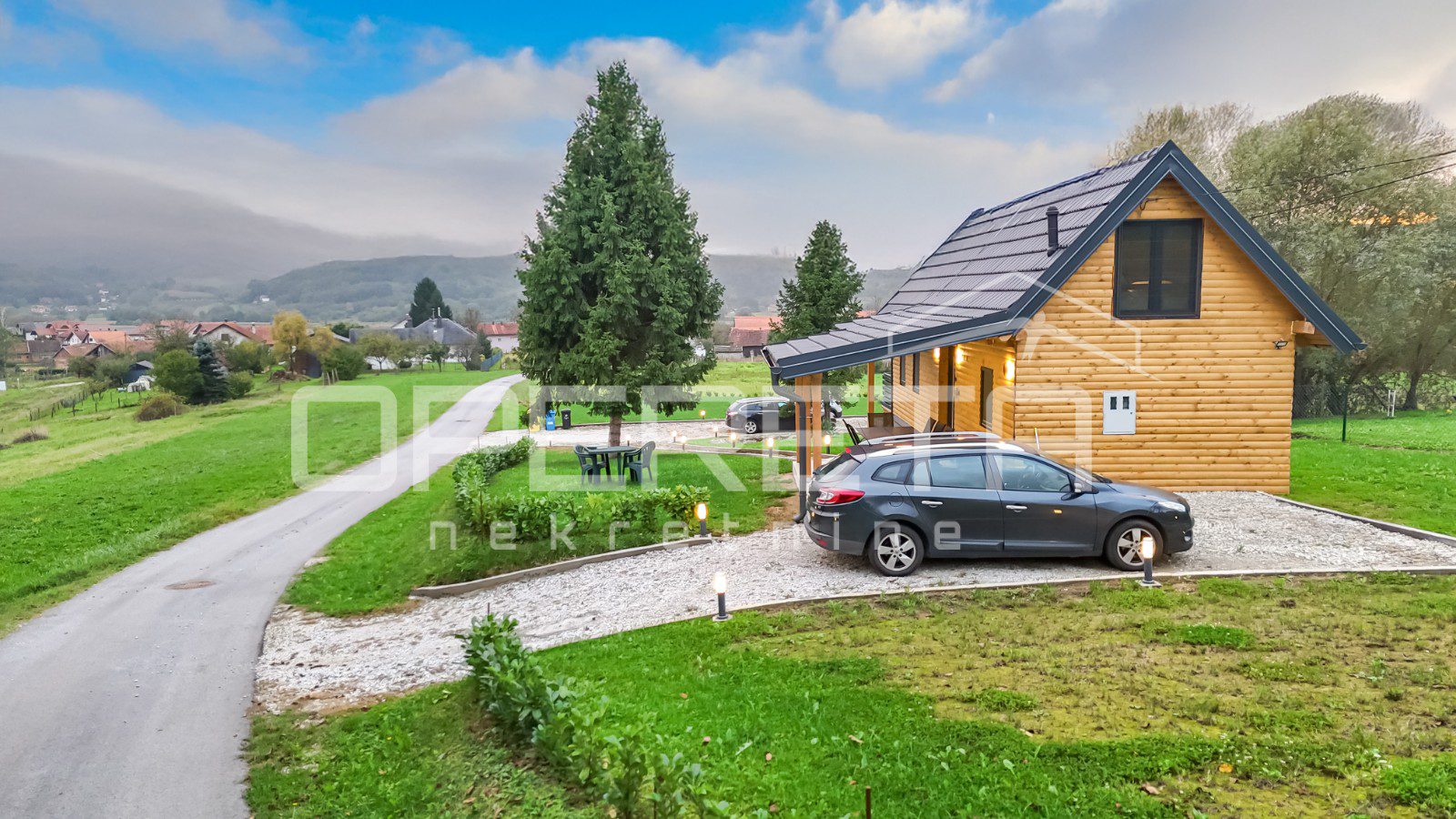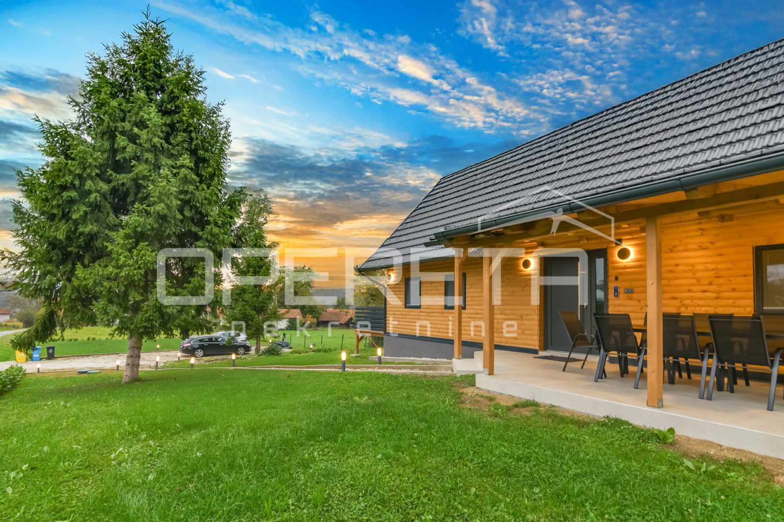 Izuzetna drvena kuća kompletno i kvalitetno namještena s okućnicom od 3 747 m2, dvije terase, velikim dvorištem, otvorenim panoramskim pogledom i zelenilom.