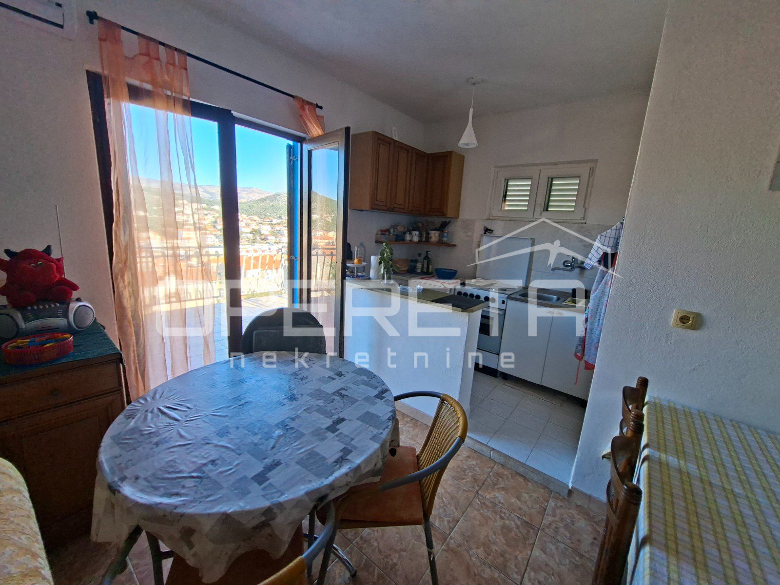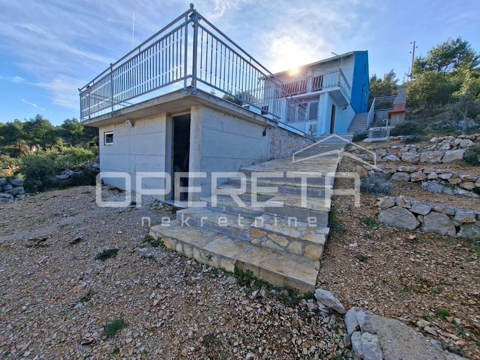 S obje etaže pruža se lijep i otvoren pogled na more, što ovoj nekretnini daje dodatnu vrijednost i poseban ugođaj. Vanjski prostor nudi veliki potencijal za boravak na otvorenom, a postojeći bazen dodatno naglašava karakter kuće kao idealne nekretnine za odmor ili turistički najam. Okućnica omogućuje uređenje prema vlastitim željama, bilo kroz dodatne sadržaje, vrt ili prostor za opuštanje.