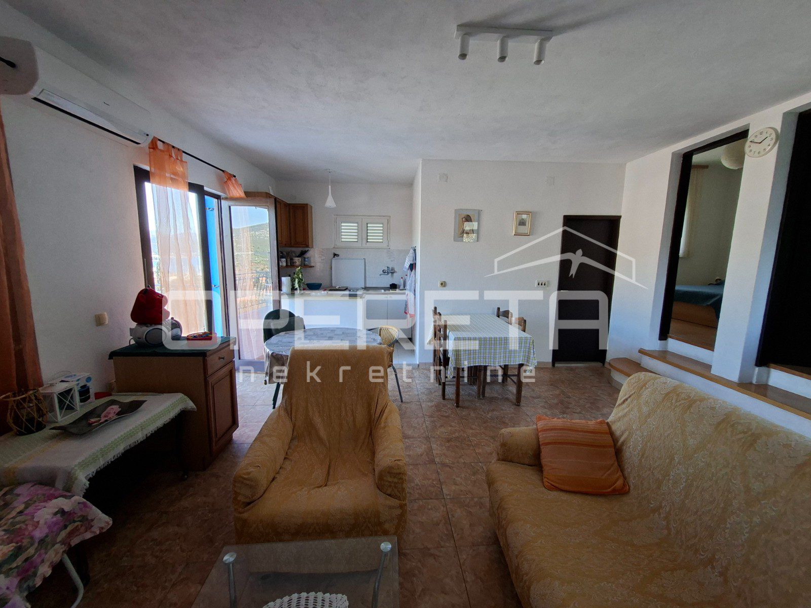 Na izuzetnoj i mirnoj lokaciji u Marini smjestila se samostojeća kuća koja pruža rijetku kombinaciju privatnosti, otvorenog pogleda na more i potencijala za daljnje ulaganje. Kuća se prostire na dvije etaže i raspolaže s ukupno 76 m2 stambenog prostora, funkcionalno raspoređenog za ugodan boravak. Okružena je prostranom okućnicom koja osigurava potpunu samoću i osjećaj izdvojenosti, bez neposrednih susjeda i buke.