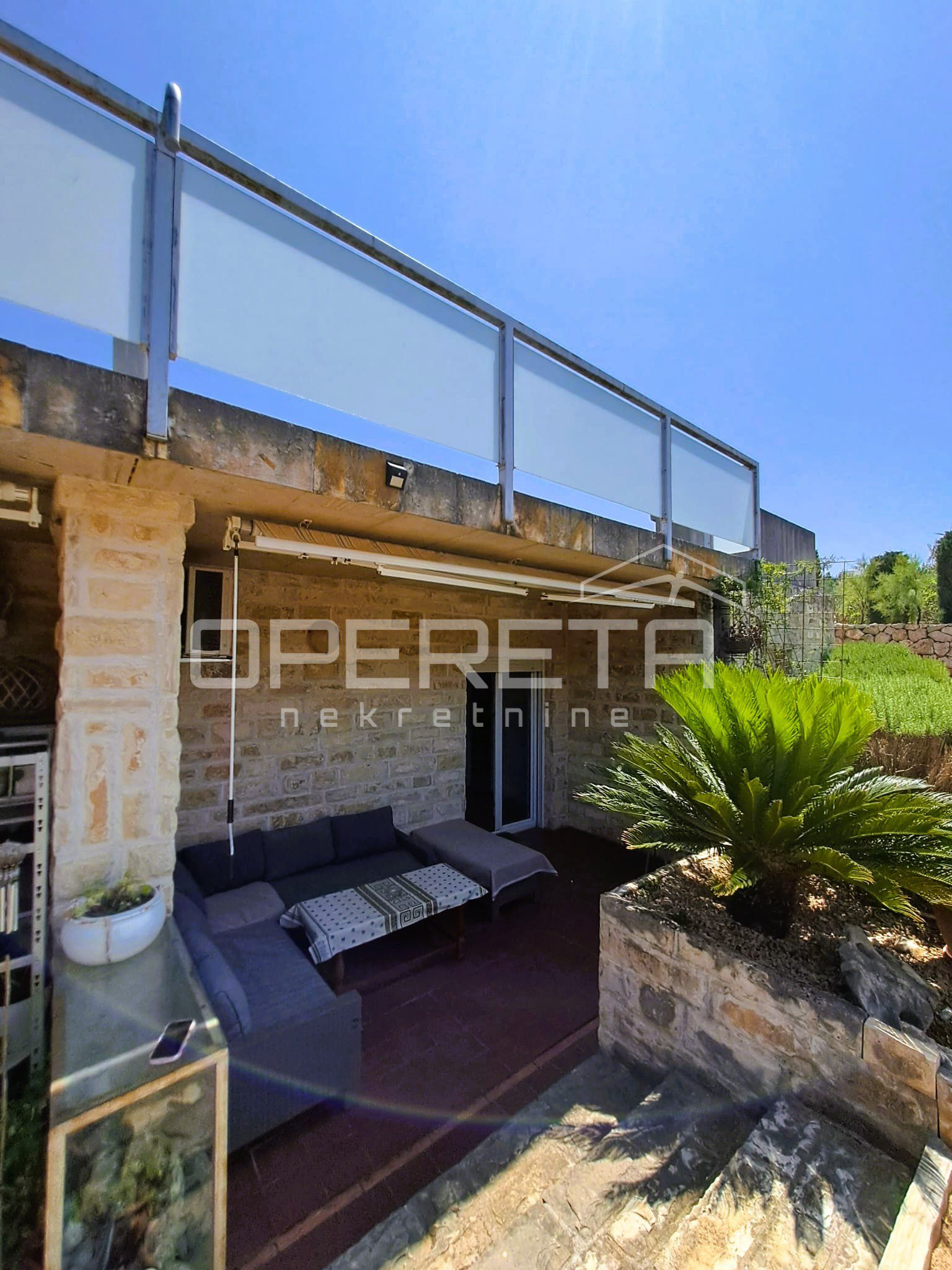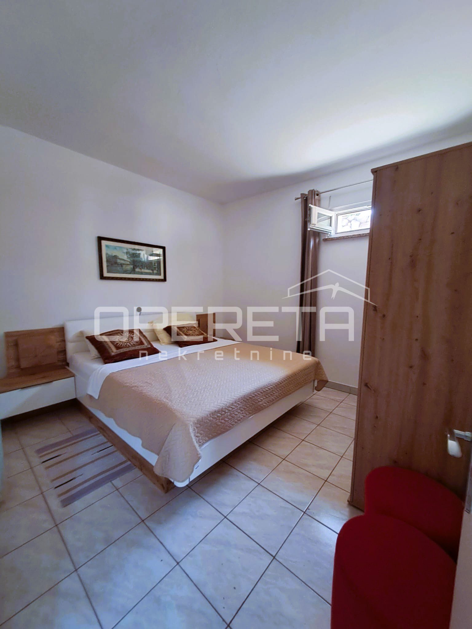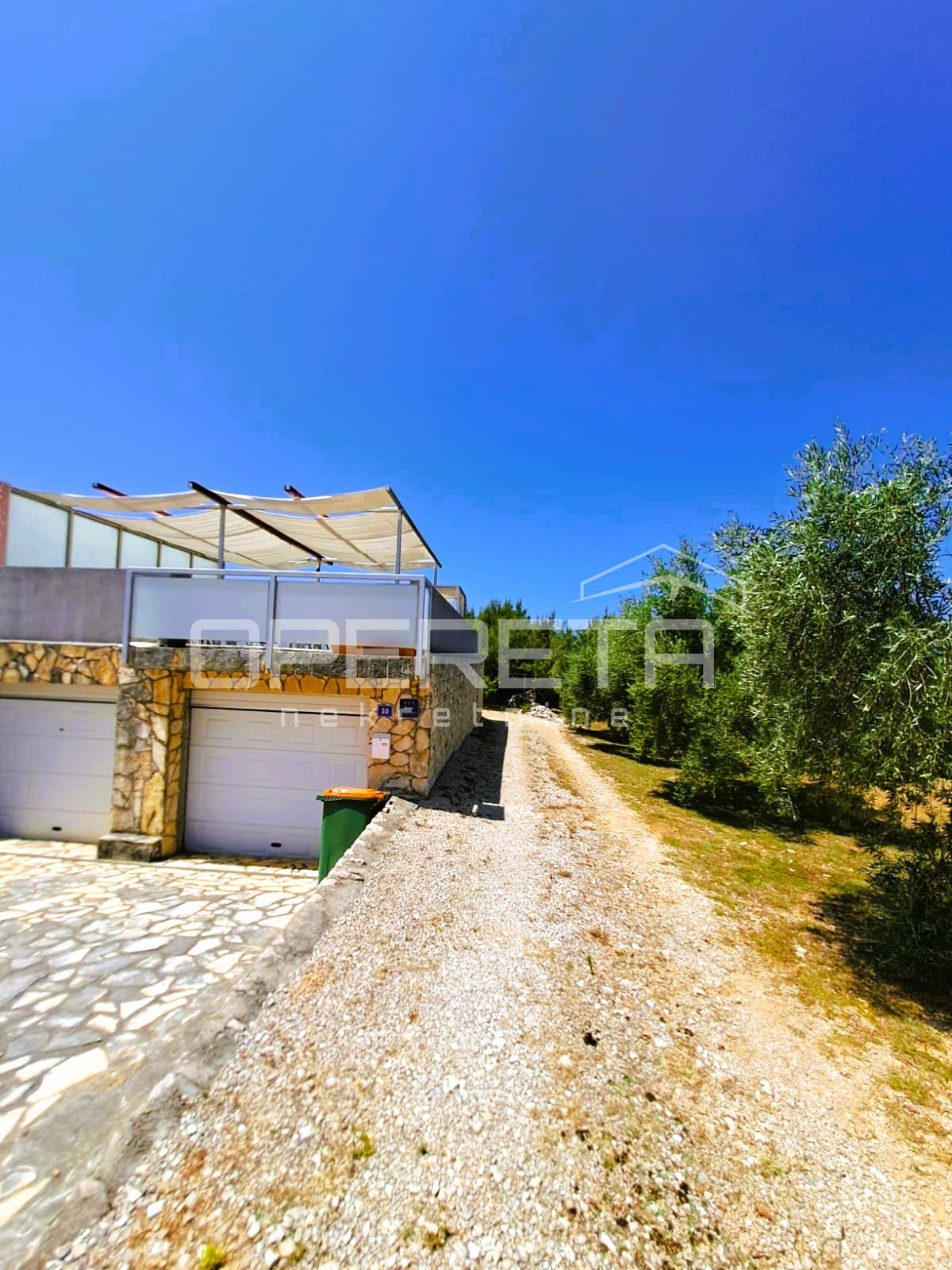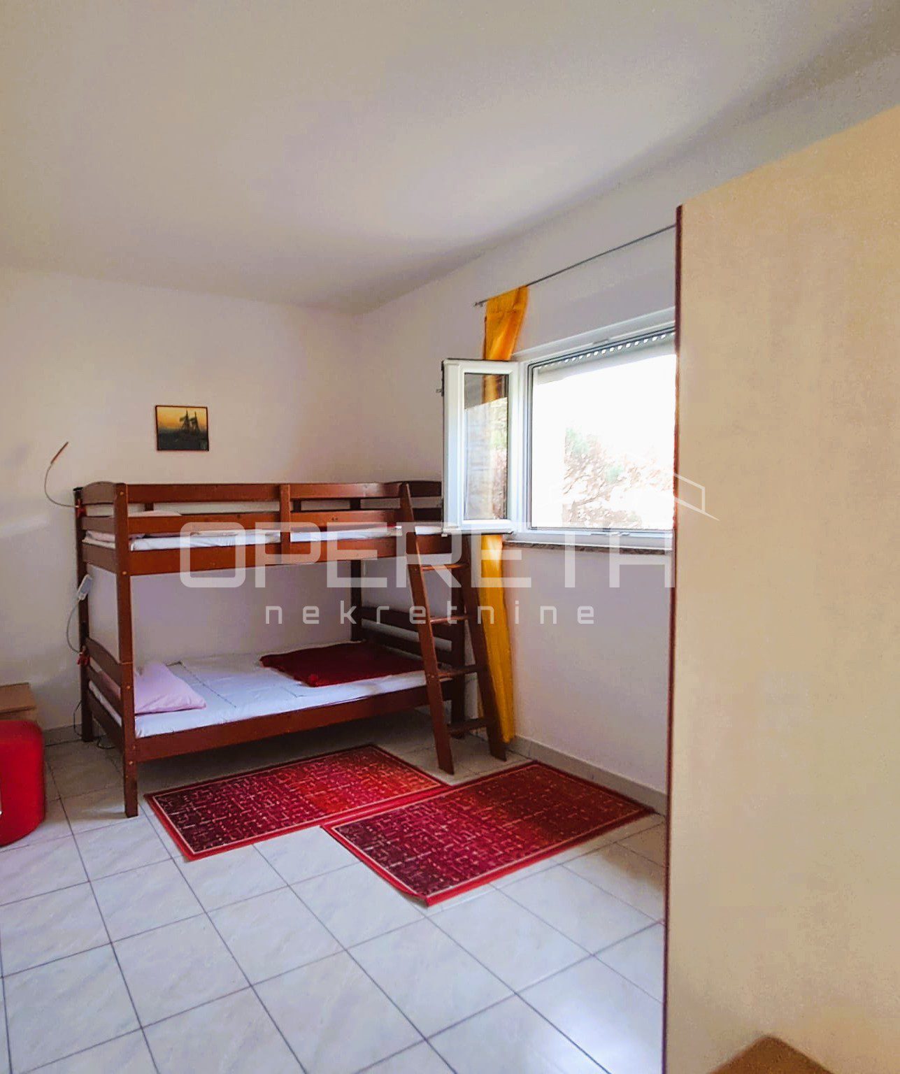 Ova nekretnina prostire se u prizemlju i sastoji se od četiri potpuno namještena apartmana, svaki s vlastitim ulazom i terasom, što omogućava maksimalnu privatnost i udobnost. Osim toga, na parceli se nalaze i dvije prostrane garaže, pogodne kako za parkiranje tako i za dodatnu ostavu ili prenamjenu u poslovni prostor. Dvorište je ograđeno i uređeno, a cijeli prostor odiše mirom i privatnošću, što je izuzetno cijenjeno u turističkom najmu, ali i za obiteljski život.