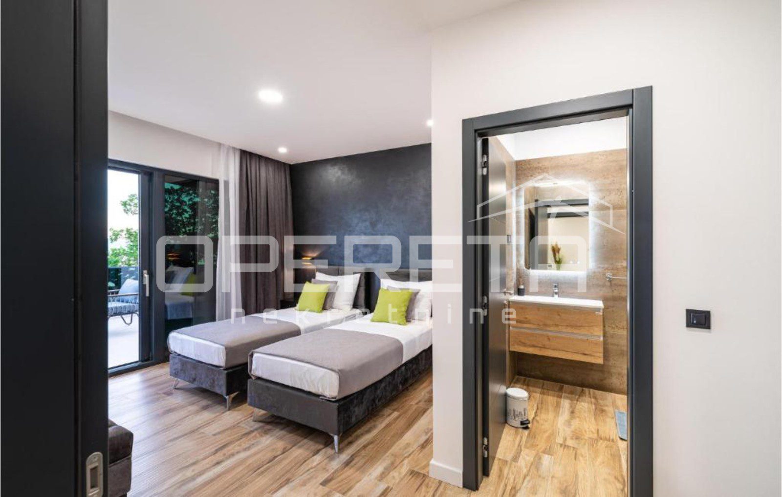 Moderna kuća prodaje se potpuno namještena. Parking je osiguran za do tri automobila.