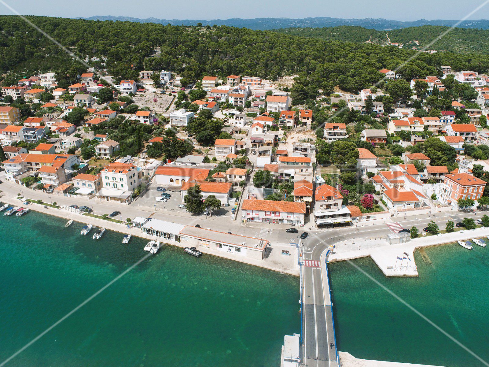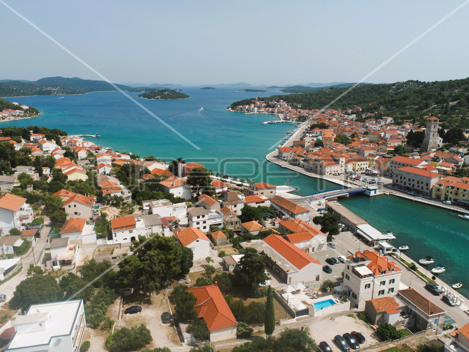 U centru Tisna nalazi se samostojeći objekt sa 4 apartmana, površine 290 m2. Kuća se sastoji od podruma, prizemlja, kata, potkrovlja i garaže kao pomoćni objekt. Smještena je na parceli od 800 m2.