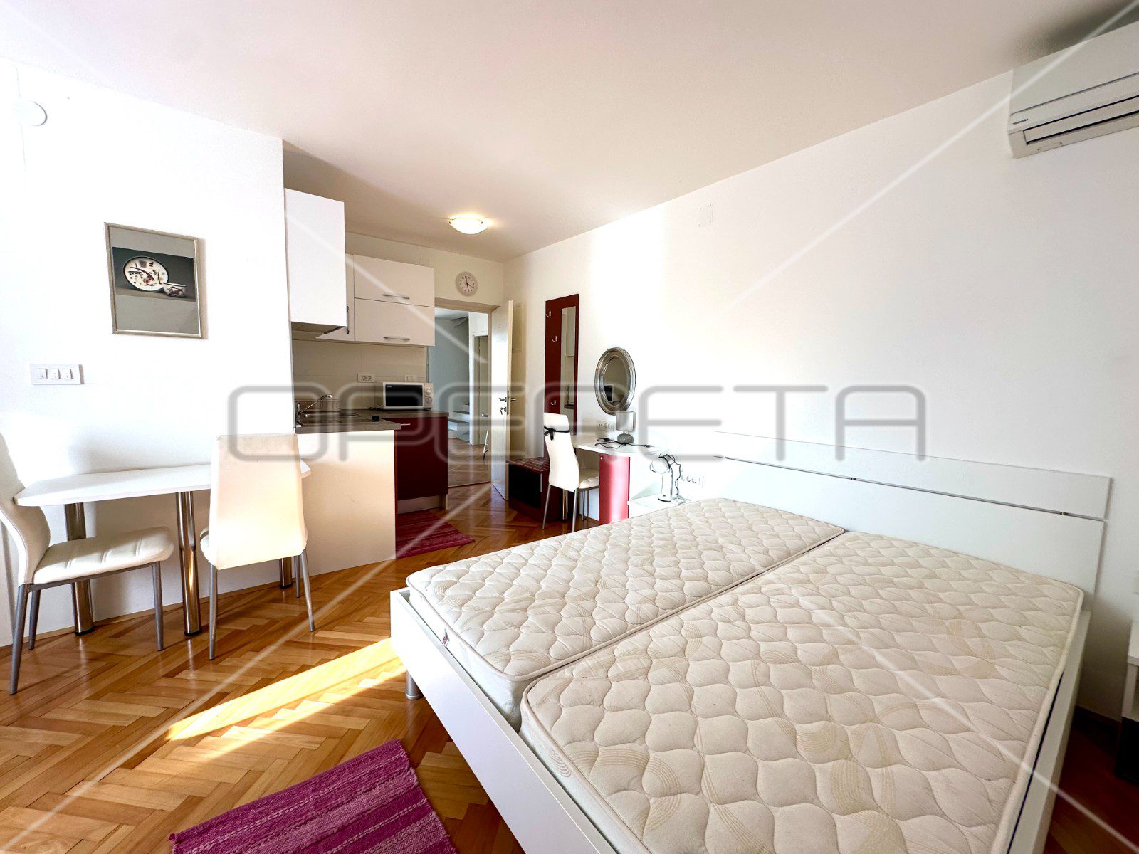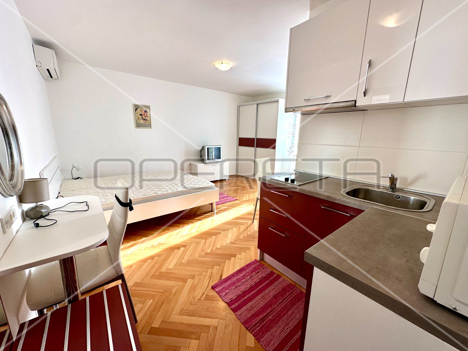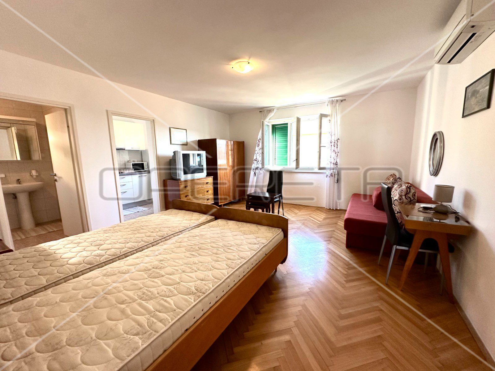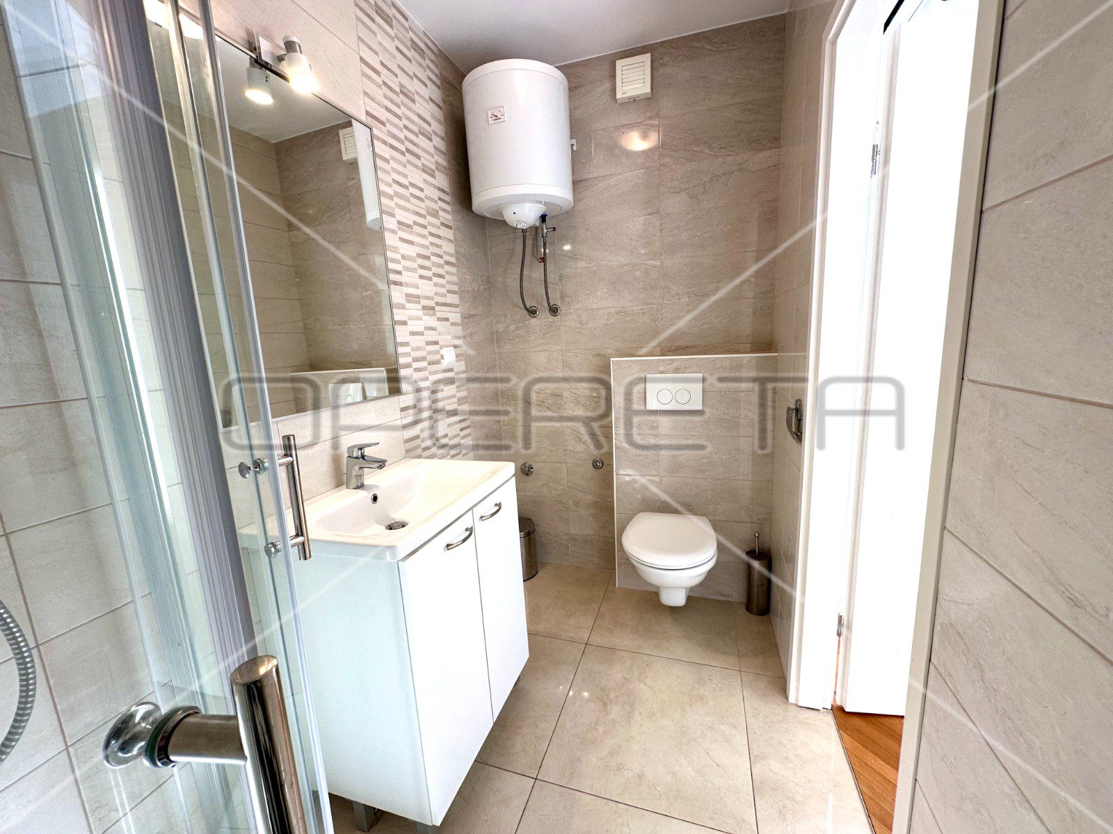 Sve ovo upotpunjeno je udobnom kupaonicom koja nudi praktičnost i udobnost za svakodnevnu upotrebu.