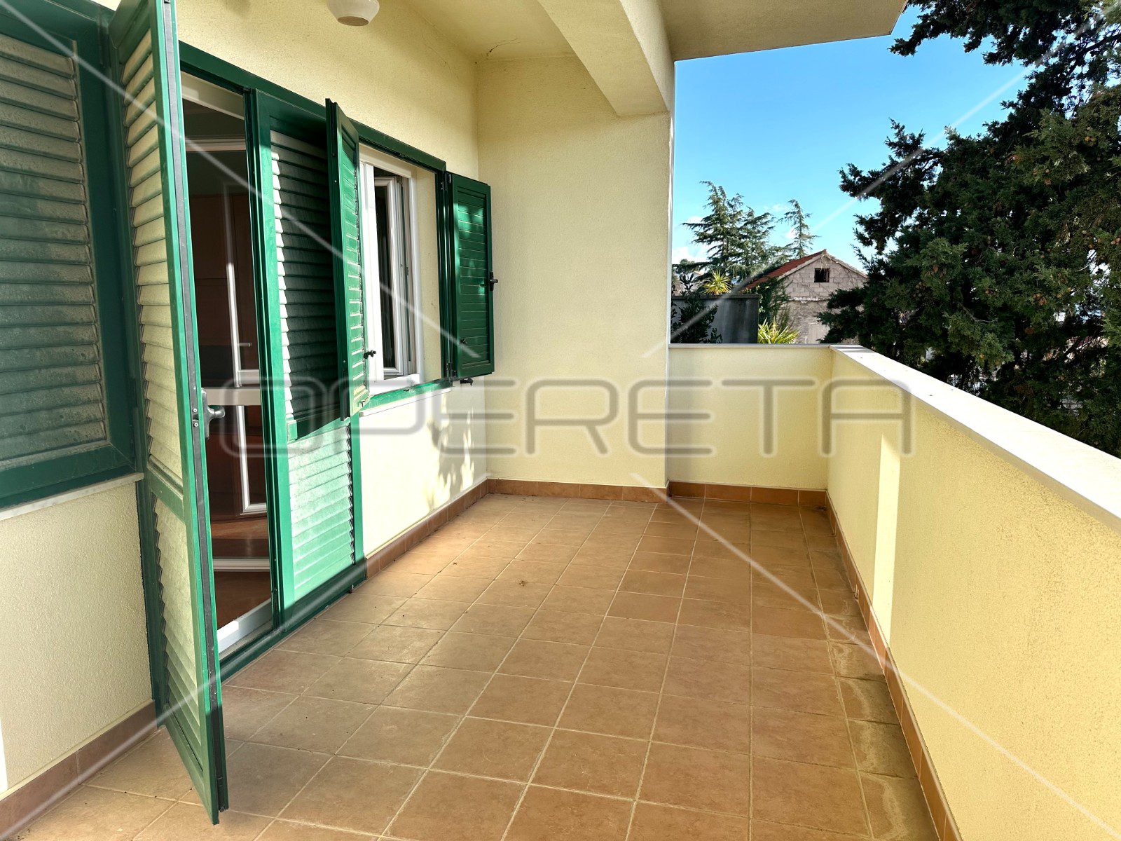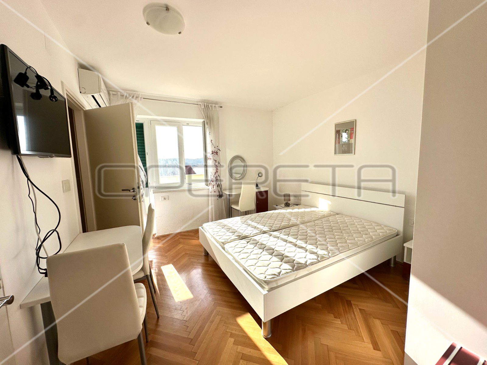 Spavaća soba također ima izlaz na prostranu terasu, pružajući privatnost i mogućnost osvježavajućeg jutra na otvorenom.