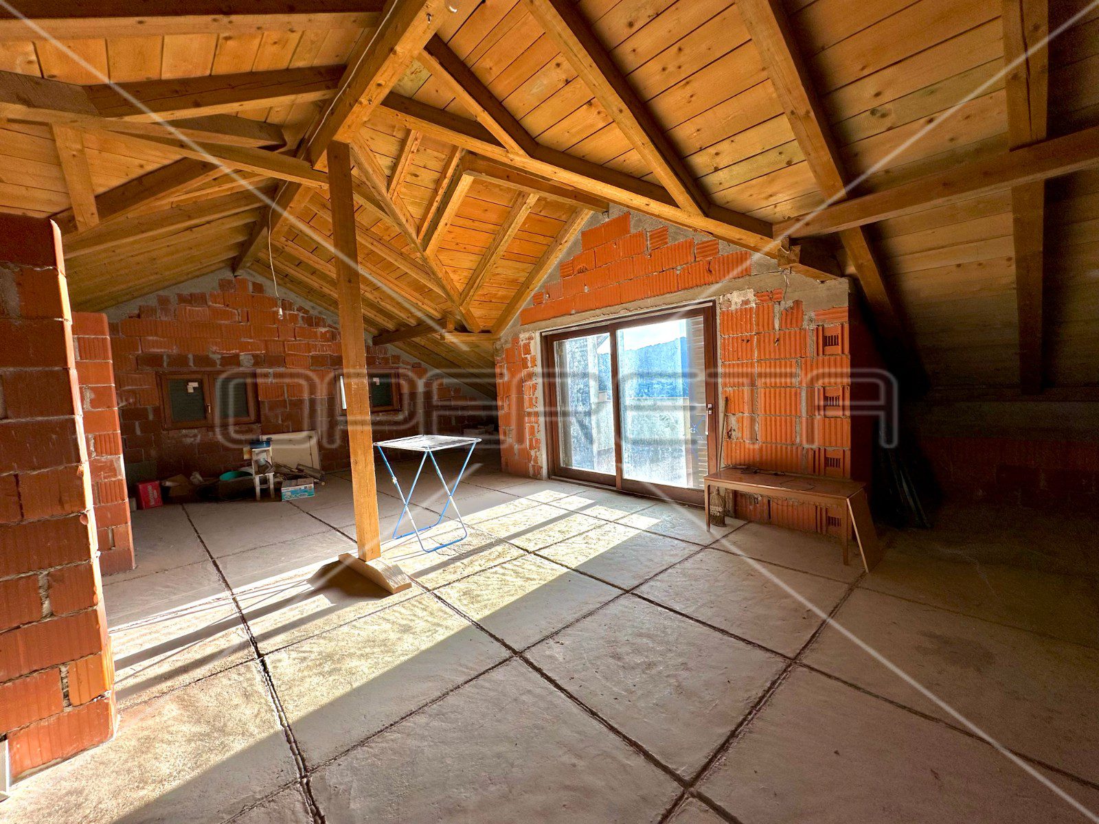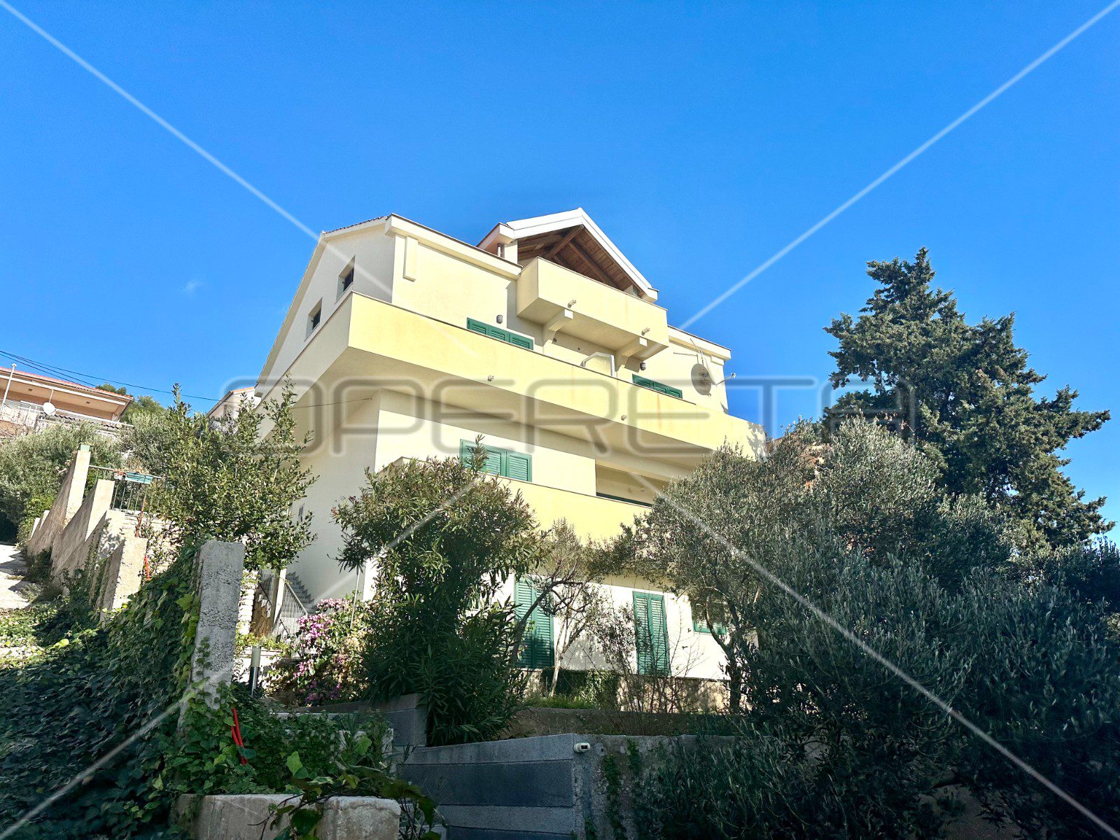 Ova kuća odiše potencijalom i mogućnostima, posebice zahvaljujući roh bau potkrovlju na drugom katu i to s terasom s koje puca nesmetan pogled na more i otoke. Potkrovlje u fazi roh bau-a pruža priliku za jedinstveno oblikovanje i prilagodbu prema individualnim preferencijama.