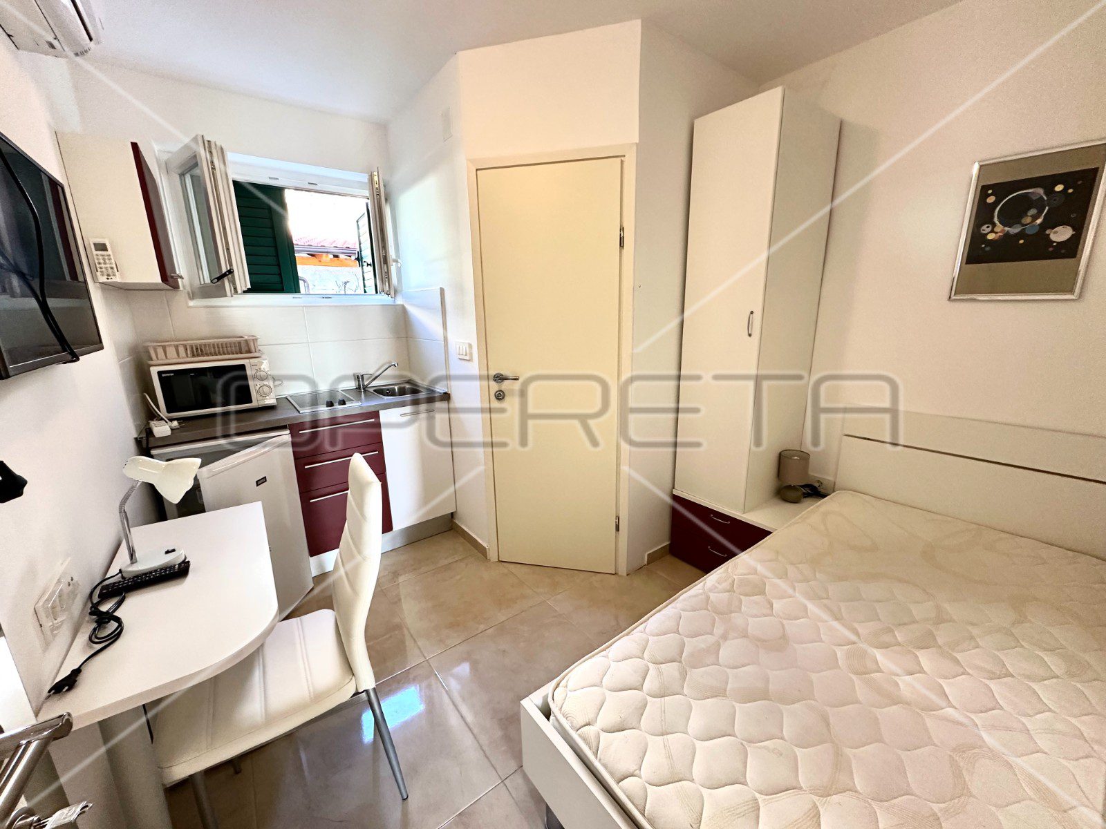 Svaki studio apartman je opremljen vlastitom kupaonicom i opremljenom kuhinjom, pružajući sve što je potrebno za samostalan život ili kratkoročni boravak. Dva od tih studio apartmana imaju privilegiju izlaza na terasu s koje se pruža pogled na more.