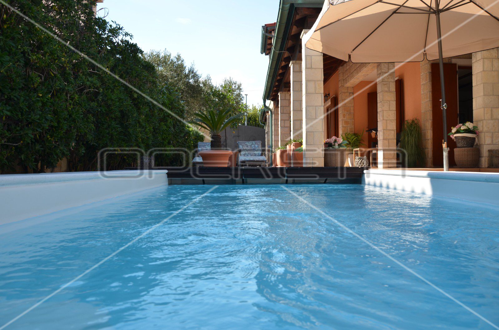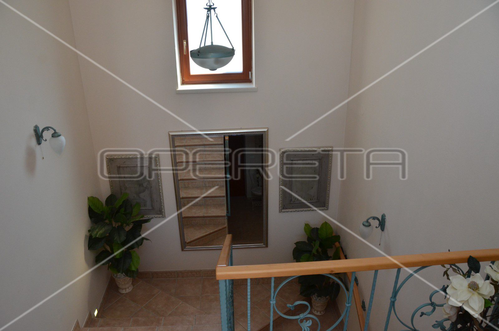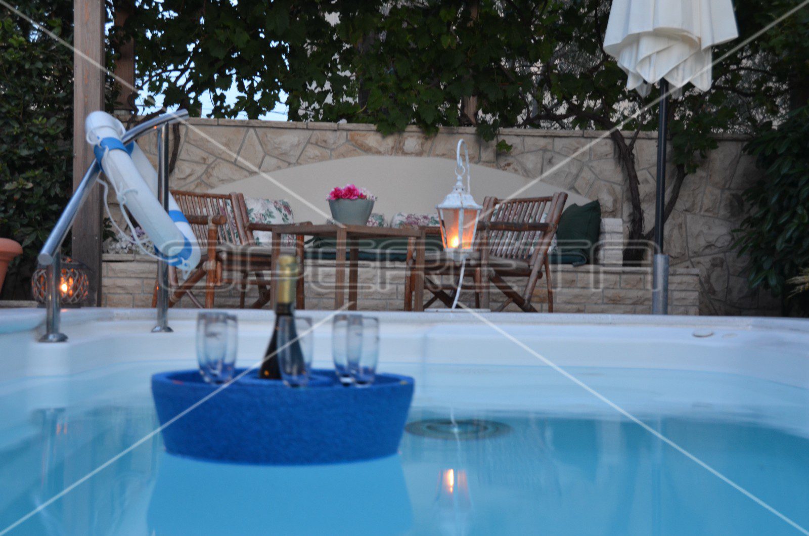 Jedinstvena, luksuzna i rustikalna vila, autohtonog dizajna i arhitekture, izgrađena 2010. g., ukupne površine od 197 m2 s uređenom i ograđenom okućnicom koja pruža mir i privatnost u blizini centra Novalje. Udaljena svega 250 m od glavnog trga te 350 m od mora i plaže. Razvedena u dvije etaže: donjom etažom prostire se dnevni boravak s kaminom i izlazom na terasu, blagovaonica s kuhinjom, velika prostorija za druženja, kupaonica te zaseban wc. Raskošnim stubištem povezana je gornjom etažom na kojoj se nalaze 3 spavaće sobe od kojih je jedna povezana s prostorom s jacuzzijem za 3 osobe, lođe, kupaonice s wc-om i hodnika. Kvalitetno građena pomno biranim detaljima i opremljena najkvalitetnijim materijalima, uređajima i talijanskim namještajem. Dnevni boravak u prizemlju komunicira s vanjskom natkrivenom terasom uz koju se nalaze ljetna kuhinja i prostorija s tušem. Prostor za uživanje nastavlja se u potpuno ograđenoj okućnici u kojoj se smjestio bazen veličine 3×5 m. Privatan luksuz u centru Novalje i blizini mora! Preporuka!