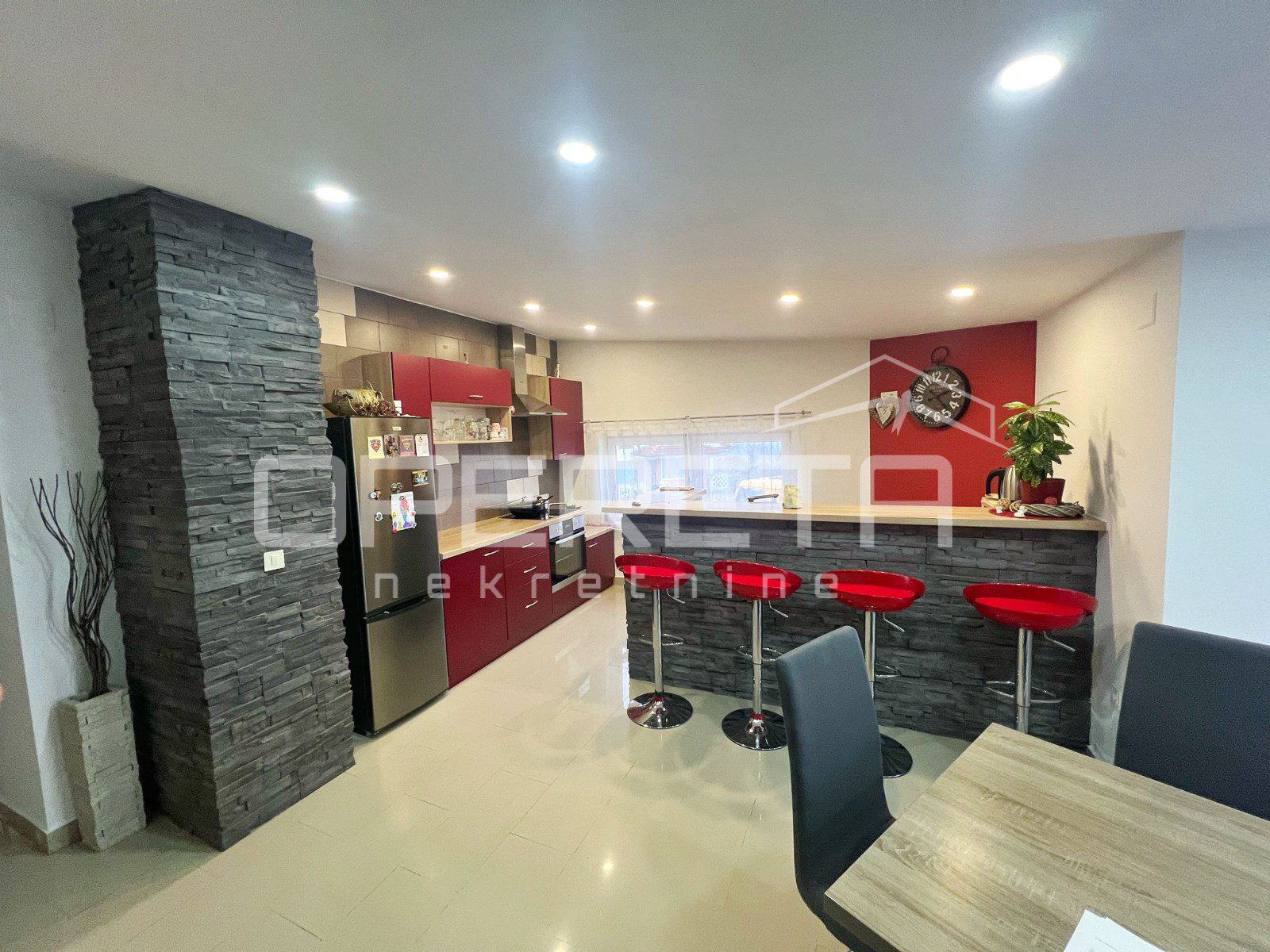 Manja kuća ima zasebnu garažu, kuhinju s blagovaonicom, dnevni boravak, spavaće sobe i terasu. Obje kuće opremljene su centralnim grijanjem i klima uređajem.