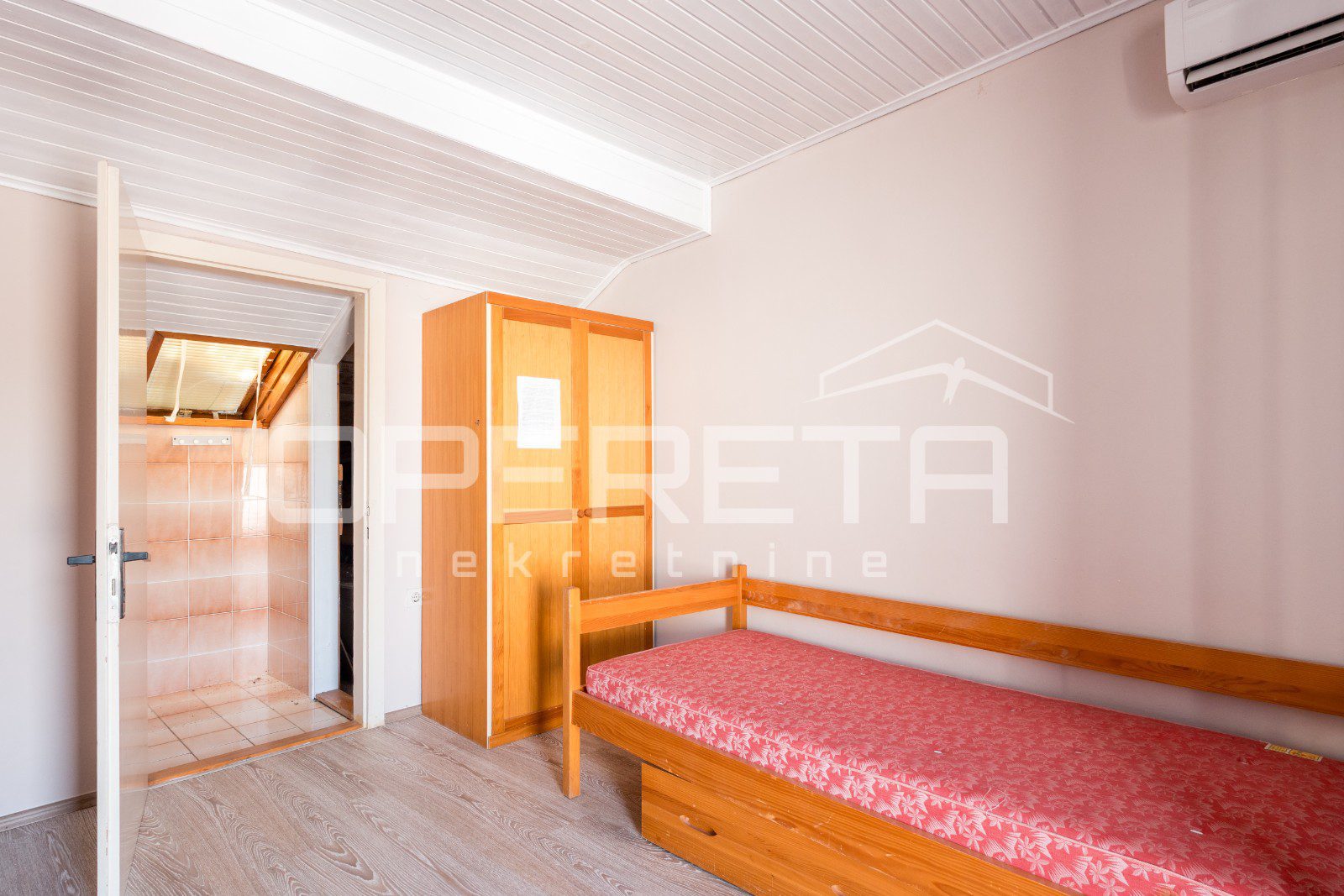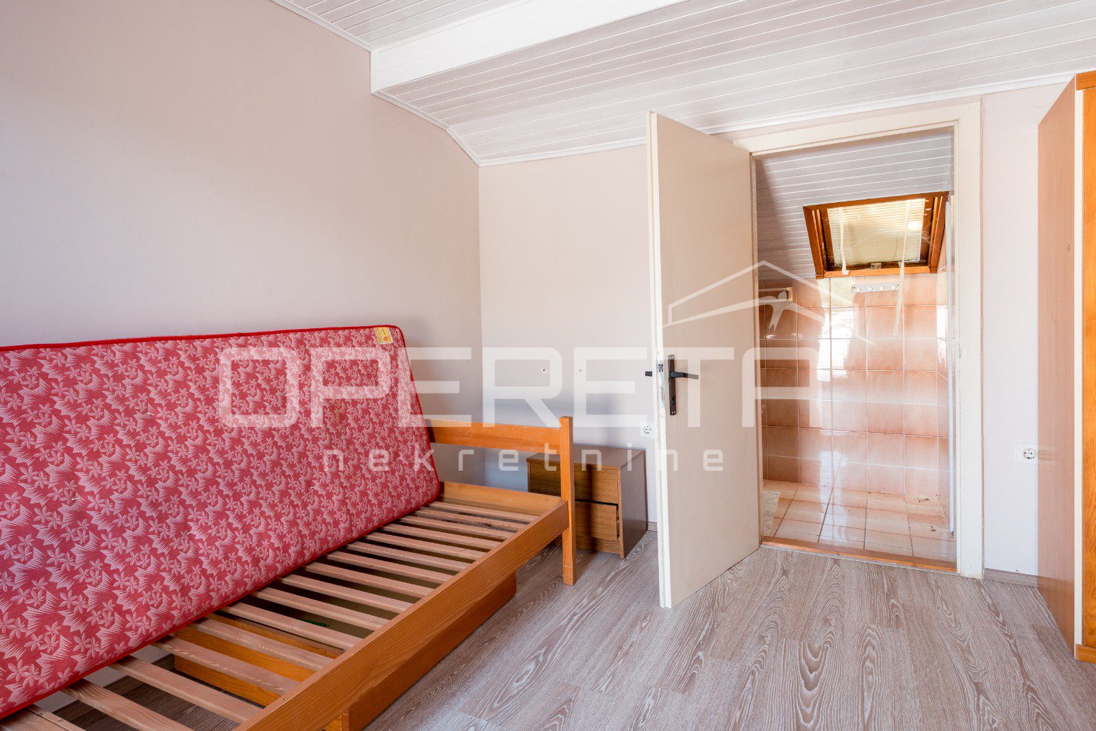 Na katu se nalaze dvije sobe, kuhinja s blagovaonicom, kupaonica i spremište.