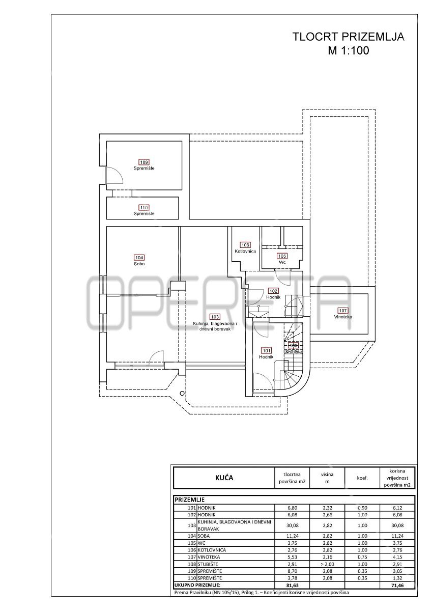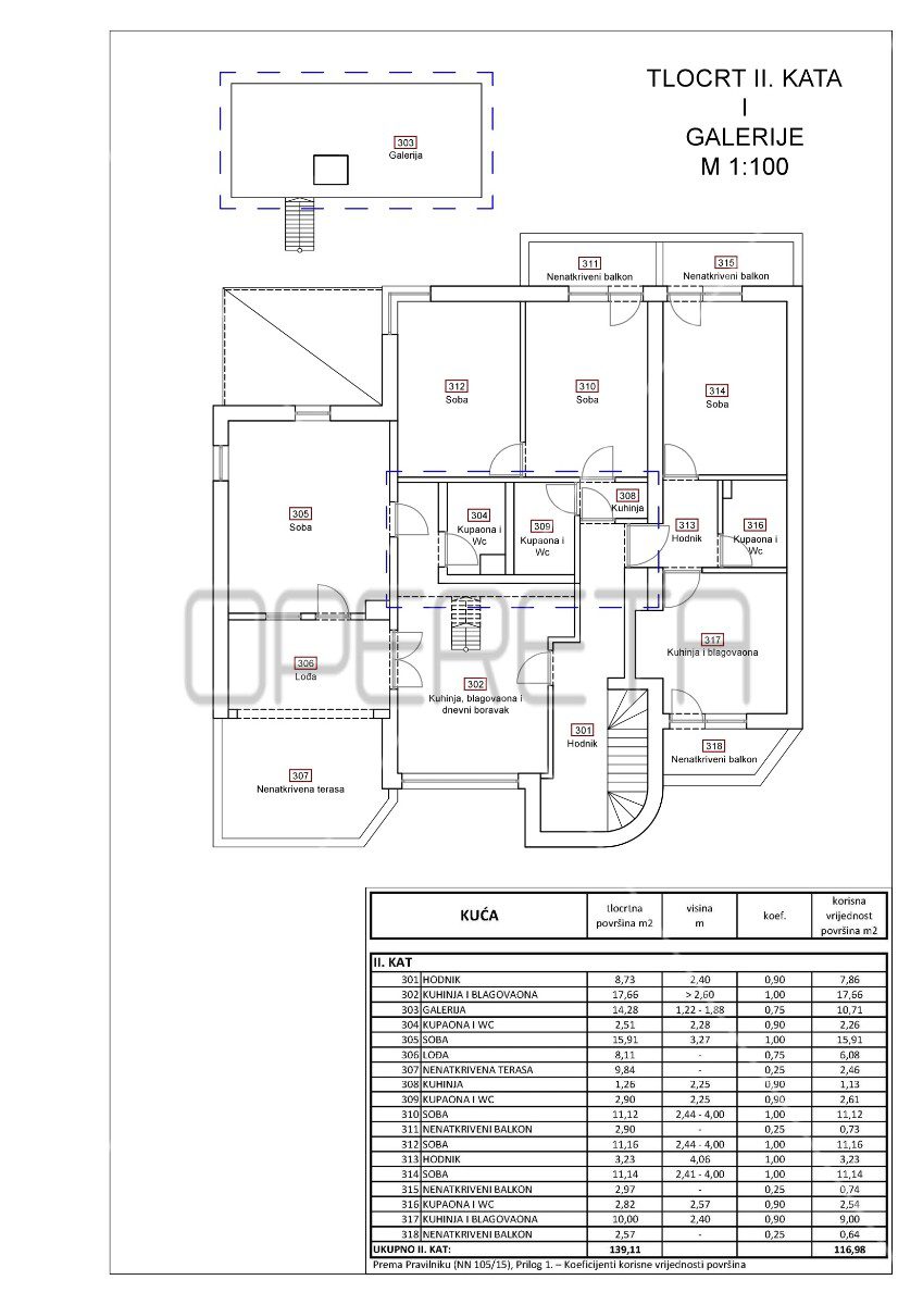Prodaje se stambena vila u Klenovici na izvrsnoj lokaciji sa pogledom na more. Sastoji se od prizemlja, dva kata i galerije. Prizemlje se sastoji od hodnika, dnevnog boravka sa kuhinjom i blagovaonicom, spavaće sobe, dva spremišta, wc-a, stubišta, kotlovnice i vinoteke. Na prvome katu nalazi se hodnik, dnevni boravak sa kuhinjom i blagovaonicom, 2 zasebna dnevna boravka, 3 spavaće sobe, kuhinja sa blagovaonom, gostinjski wc, kupaonica sa wc-om, stubište, nenatkrivena terasa i natkriveni balkon. Na drugom katu i galeriji nalazi se hodnik, dvije kuhinje sa blagovaonicom, zasebna kuhinja, 3 kupaonice sa wc-om, 4 spavaće sobe, lođa, nenatkrivena terasa i 3 nenatkrivena balkona. Kuća se može koristiti za stanovanje ili kao turistički potencijal.