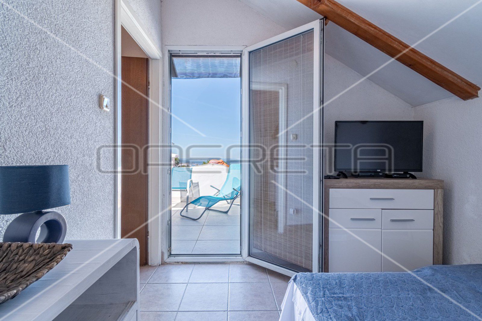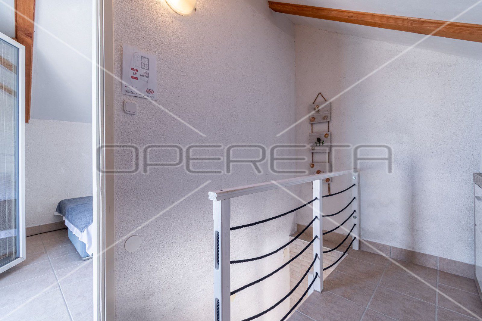 Iz ulaznog prostora prvog kata unutrašnje stepenice vode prema potkrovlju u kojem se nalazi dodatna spavaća soba te odvojeni prostor s kutkom za odmaranje i pohranu. Potkrovlje ima veliku atraktivnu terasu s koje se proteže očaravajuć pogled na more, zalaske sunca, otoke Kvarnera i prirodu. Teško je opisati takvu scenu, ona se treba doživjeti.