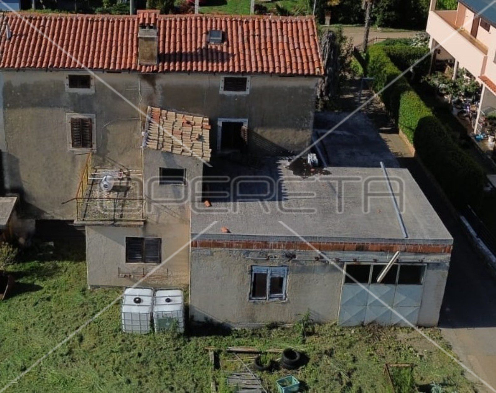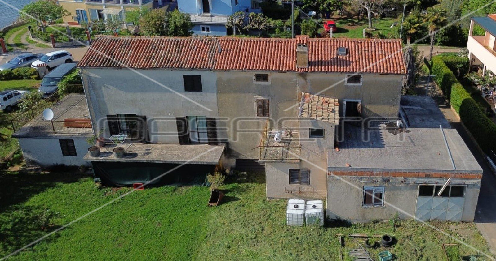 Površina kuće iznosi 260 m2 raspoređene na prizemlje, 1.kat i potkrovlje. U prizemlju se nalazi ulazni hodnik, dnevni boravak i kuhinja sa blagovaonicom. Unutarnjim stepenicama se dolazi na 1.kat gdje se nalazi hodnik, dvije spavaće sobe, kupaonica i terasa s otvorenim pogledom na more i plažu. U visokom potkrovlju nalaze se dvije dodatne sobe i ostava. Pored ulaza u kuću nalazi se garažni prostor koji se trenutno koristi kao dodatno spremište te konoba. S obzirom na raspored prostorija, kuća pruža brojne mogućnosti za novog vlasnika. Kuća zahtijeva kompletnu adaptaciju.