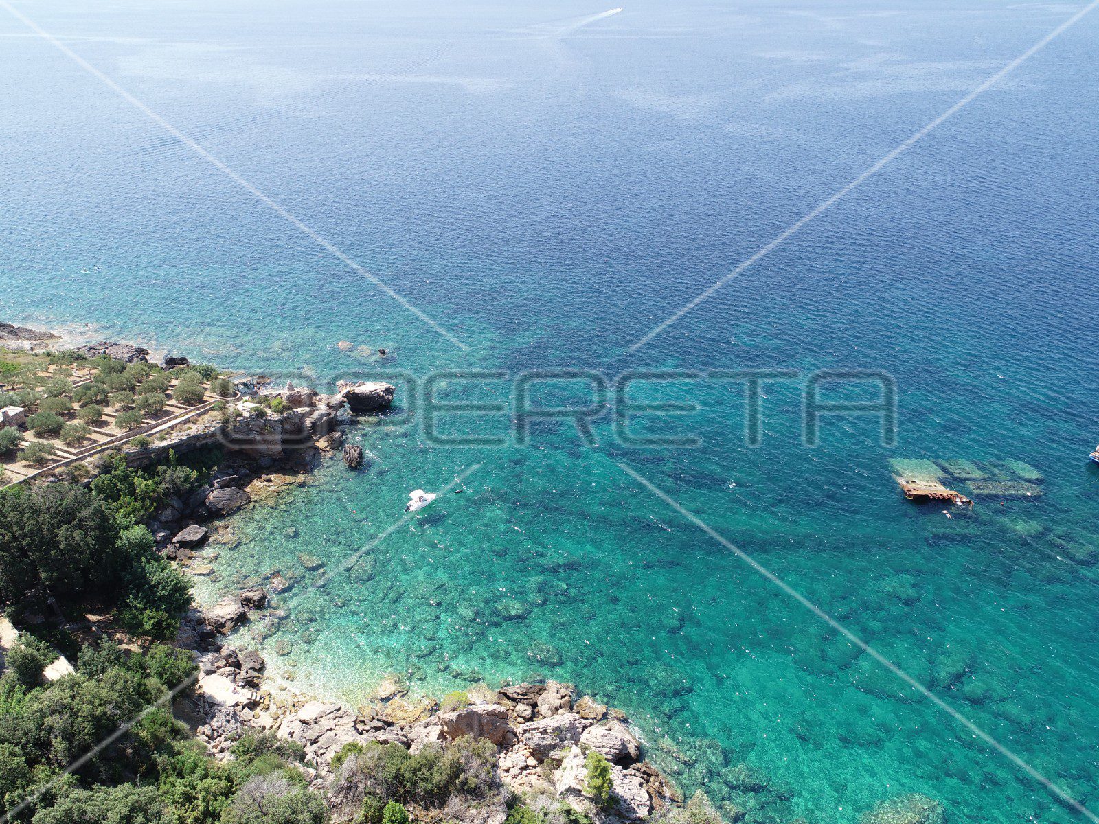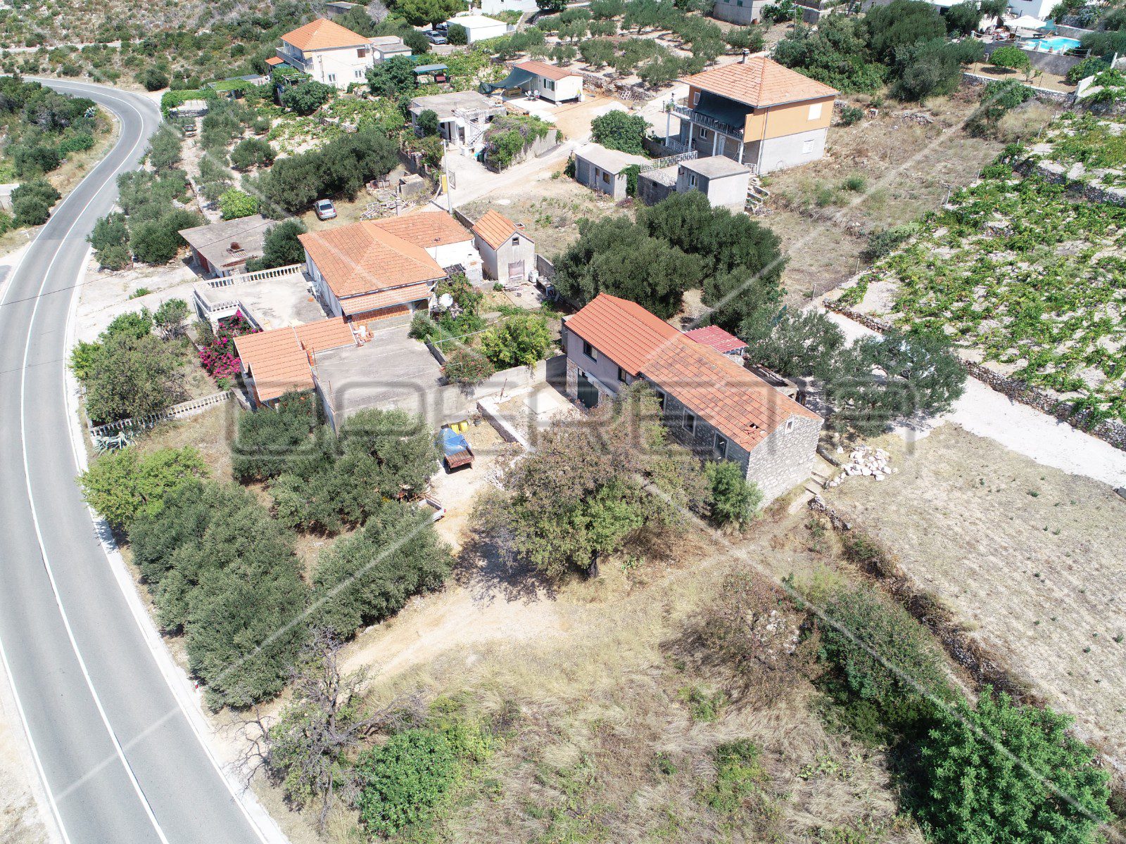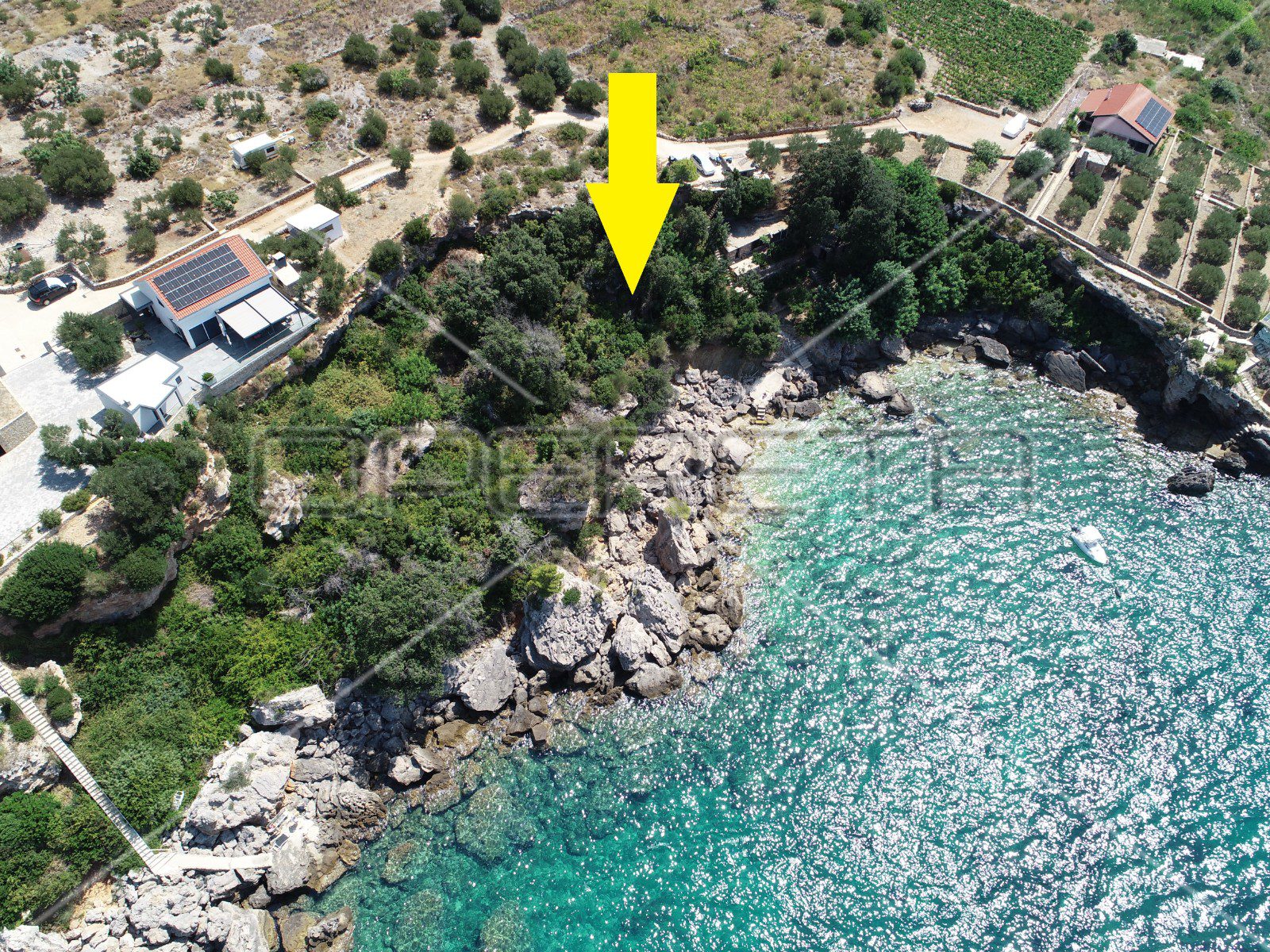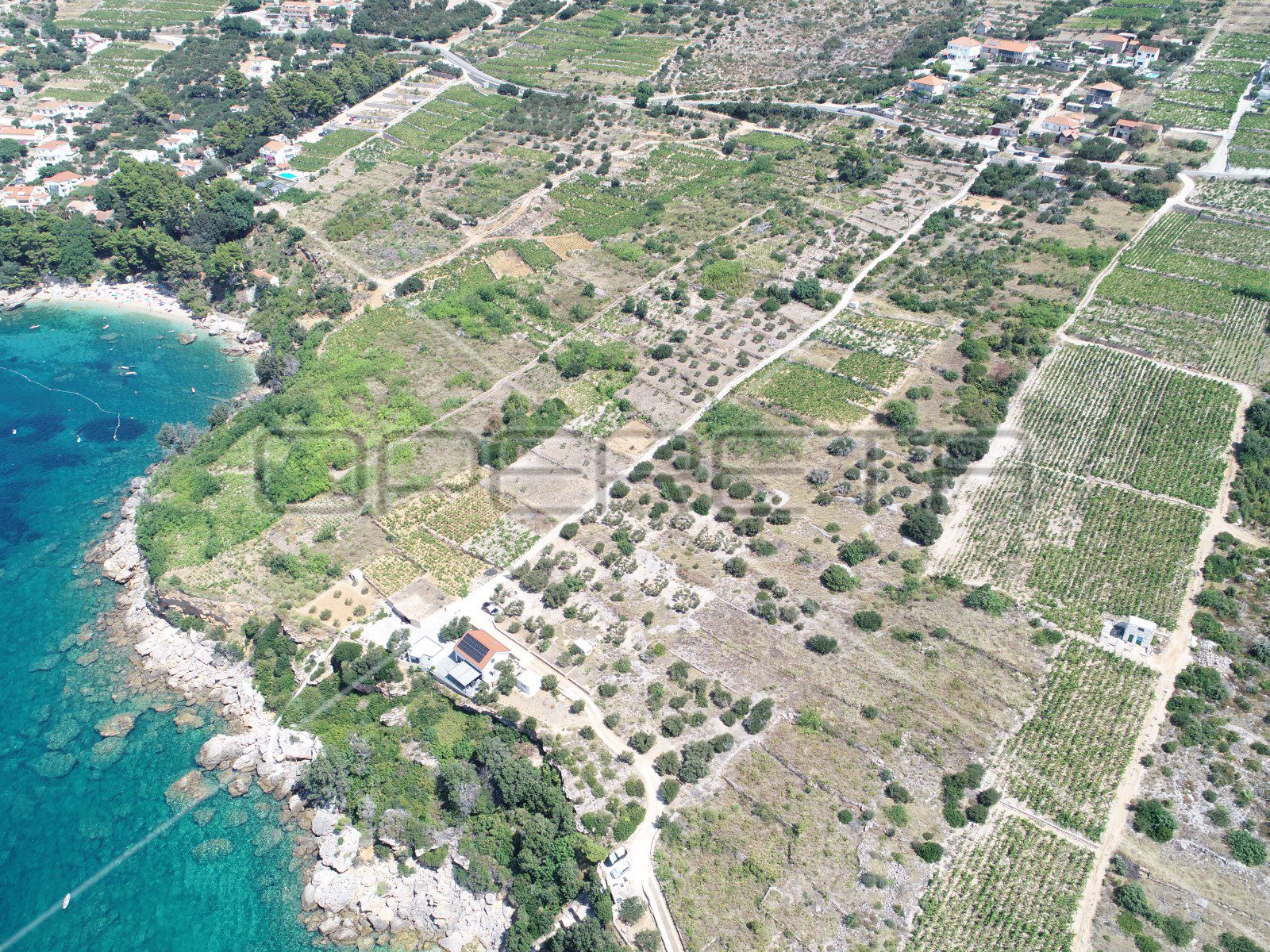 Nekretnini pripada i dodatno zemljište poljoprivredne namjene, veličine oko 8.000 m², koje se proteže sve do obale. Na tom prostoru već rastu masline, a njegov prirodan položaj i širina idealni su za razvoj različitih turističkih, rekreativnih ili poljoprivrednih sadržaja. Posebnu vrijednost daje prirodna uvala s malom šljunčanom plažom i izuzetno čistim morem, što ovu lokaciju čini savršenim mjestom za odmor, relaksaciju i bijeg od svakodnevice.