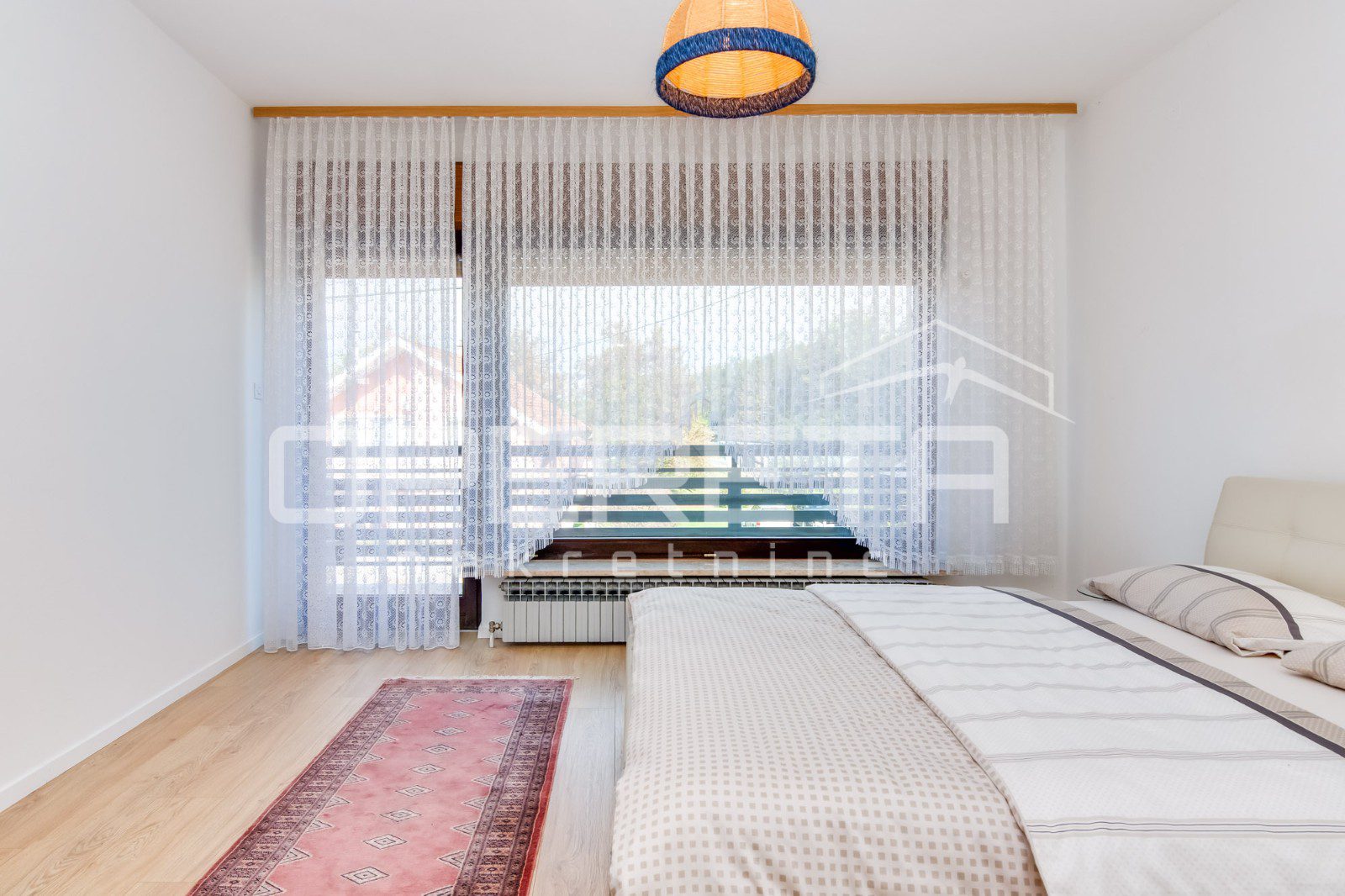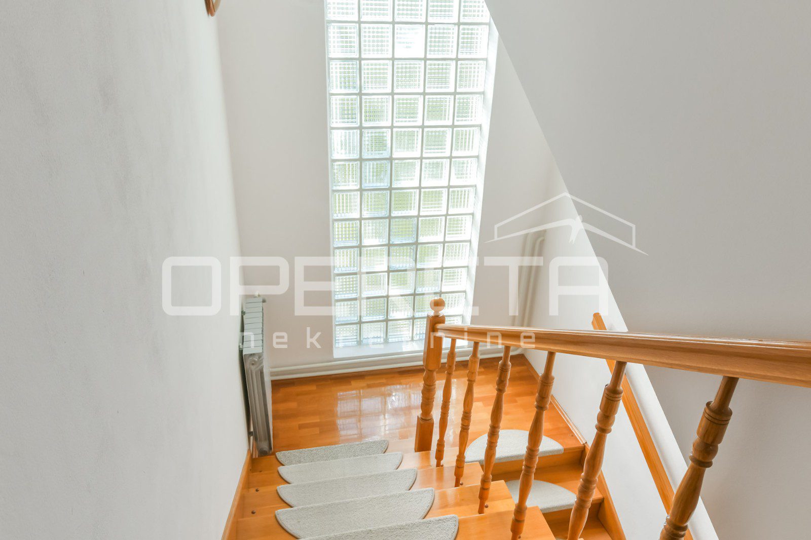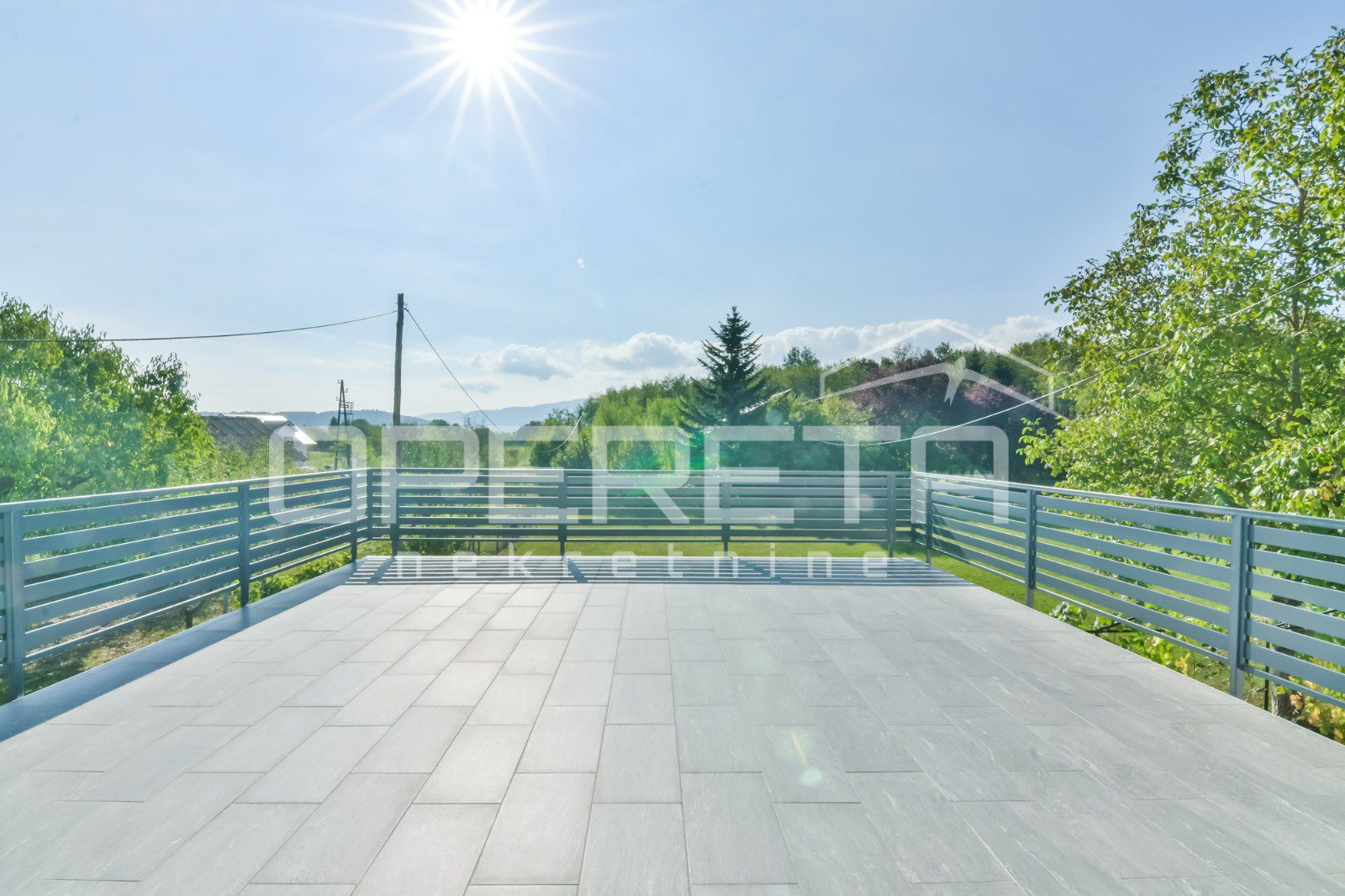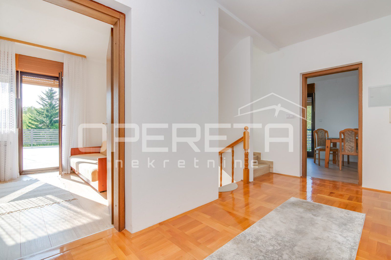 Samostojeća, kvalitetno građena i uredno održavana, prozračna, puna svjetla i ugodna obiteljska katnica stambene površine 280 m2 na ravnoj i ograđenoj parceli od 861 m2 u neposrednoj blizini centra Oroslavja. Orjentirana na sve 4 strane svijeta, sastoji se od prizemlja, kata i potkrovlja povezanih nutarnjim stubištem. U prizemlju se nalazi prostran dnevni boravak, radno/spavaća soba, kuhinja, kupaonica, zaseban wc, hodnik te spremište i garaža s nutarnjim i vanjskim ulazom. Nutarnje stubište povezuje ga s katom gdje se nalazi prostran “open space” dnevni boravak (dvostrani izlaz na balkon) s blagovaonicom i predviđenim mjestom za kuhinju, kupaonica te dvije spavaće sobe od kojih jedna ima izlaz na balkon, a druga na prostranu terasu okrenutu na mirnu dvorišnu stranu. Potkrovlje je otvoreno, u roh bau fazi. Mogućnost alternativnog grijanja: uz peć na kruta goriva, moguće plinsko grijanje (razvedene instalacije i postavljeni radijatori po cijelog kući) te grijanje na kamin.