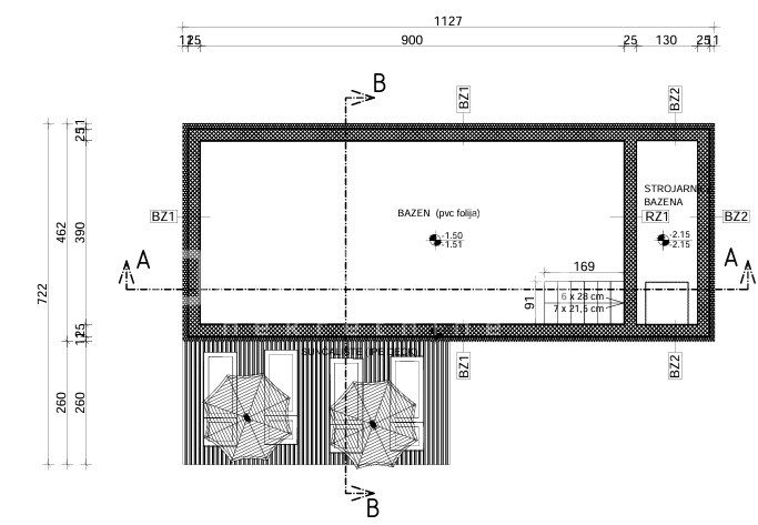 Vanjski prostor predstavlja produžetak luksuznog odmora i životnog stila, nudeći raznovrsne zone za opuštanje i zabavu. Terasa sa “smart” podizanjem sjenila izvrsno komunicira s eksterijerom: bazenom površine 35 m2 (opremljen sustavom grijanja) i sunčalištem.