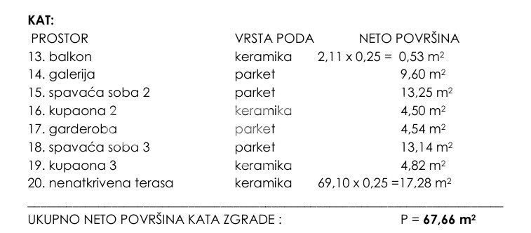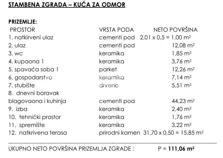 S ukupnom površinom od NKP 240 m2 stambenog prostora, raspoređenog na dvije etaže, nudi obilje prostora za ugodan boravak i zabavu.