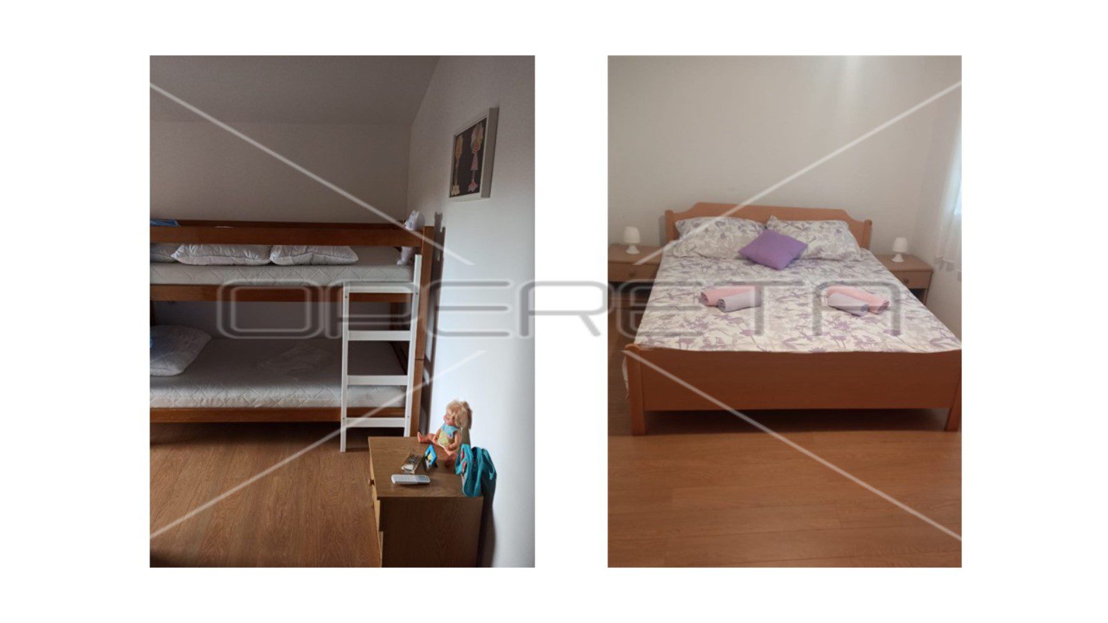 Samostojeća kuća na dvije etaže u mjestu Ždrelac, udaljena 120 metara od plaže do koje vodi mirna slijepa ulica. Objekt nudi tri zasebna apartmana: u prizemlju su dvosobni apartman i studio, dok se na katu nalazi apartman s dvije spavaće sobe, kuhinjom, dnevnim boravkom i dvije kupaonice, renoviran 2023. godine.