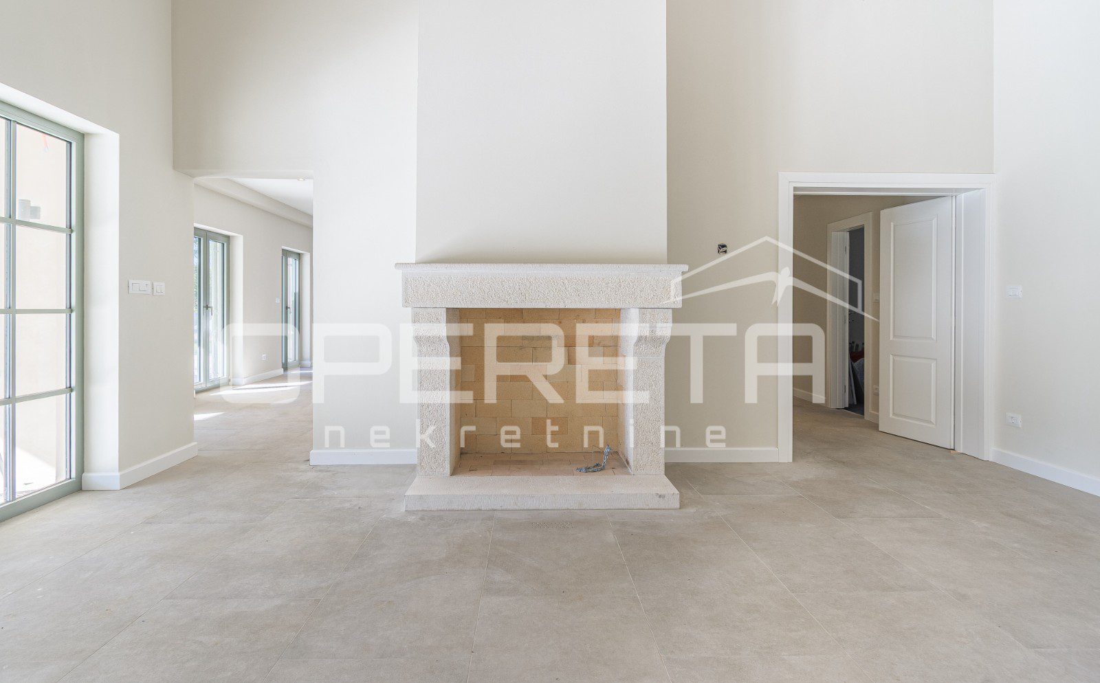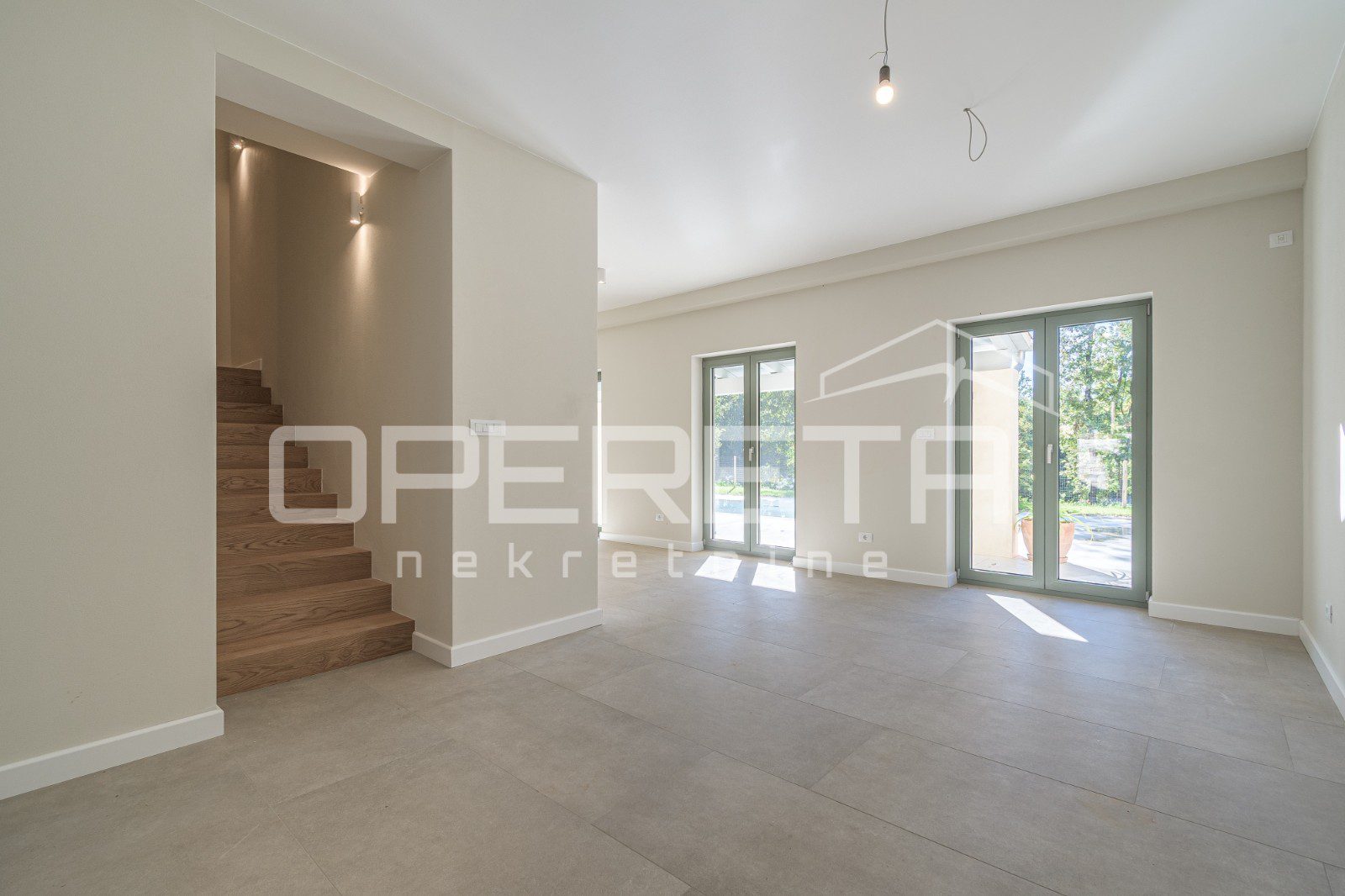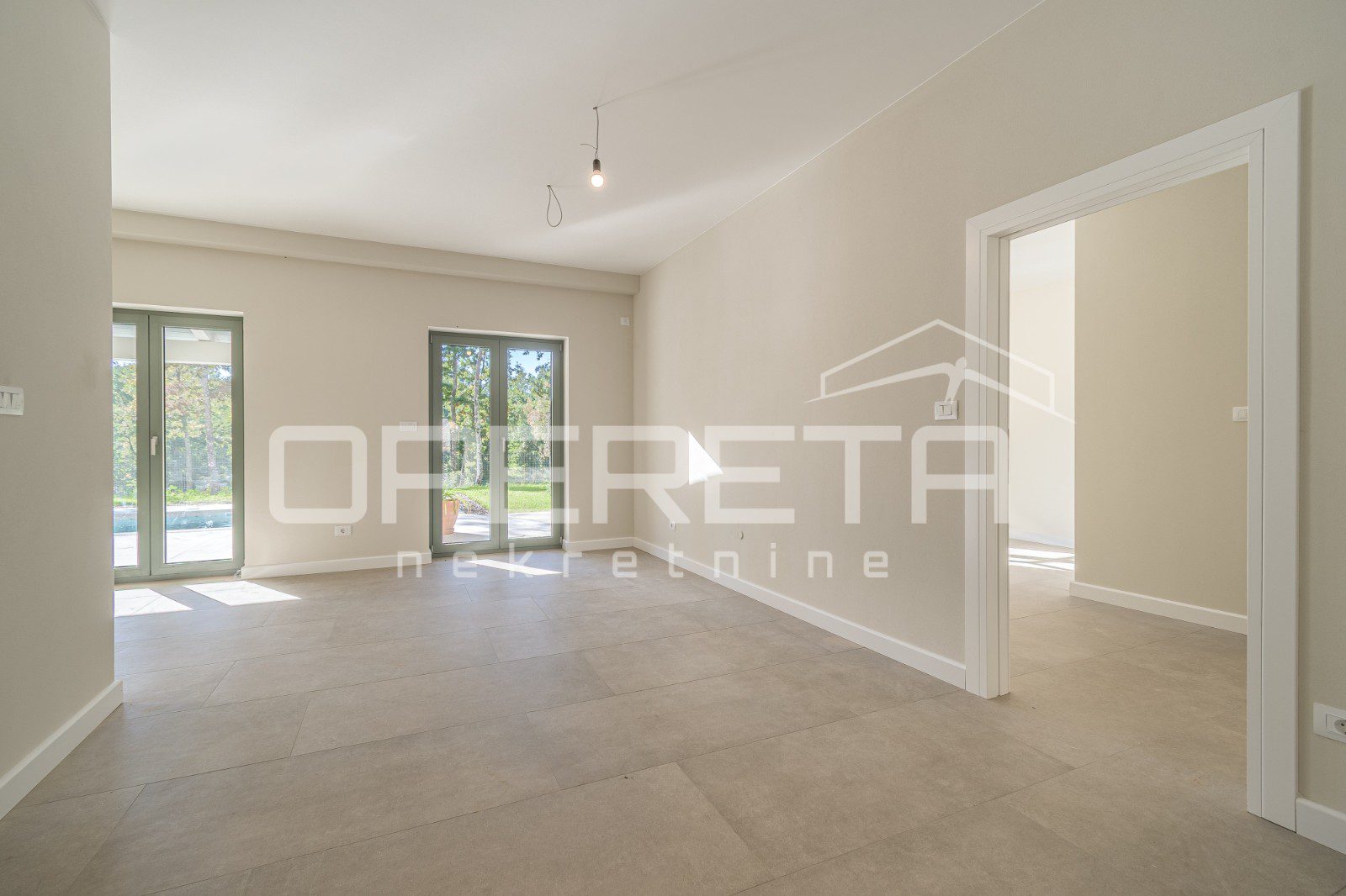 U prizemlju se nalazi ulazni hodnik, prostrana kuhinja s blagovaonicom, dnevni boravak s dominantnim kaminom, gostinjski WC te jedna spavaća soba s vlastitom kupaonicom. Svaka prostorija u prizemlju ima direktan izlaz na natkrivenu terasu, prostrana sunčališta i bazen, čineći savršen spoj unutarnjeg i vanjskog prostora.
