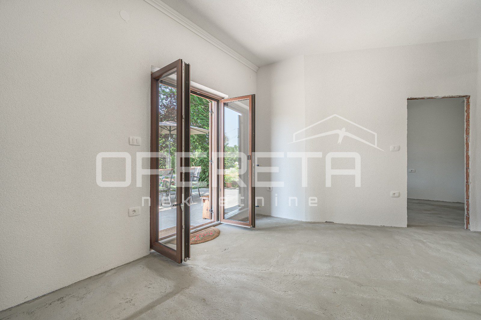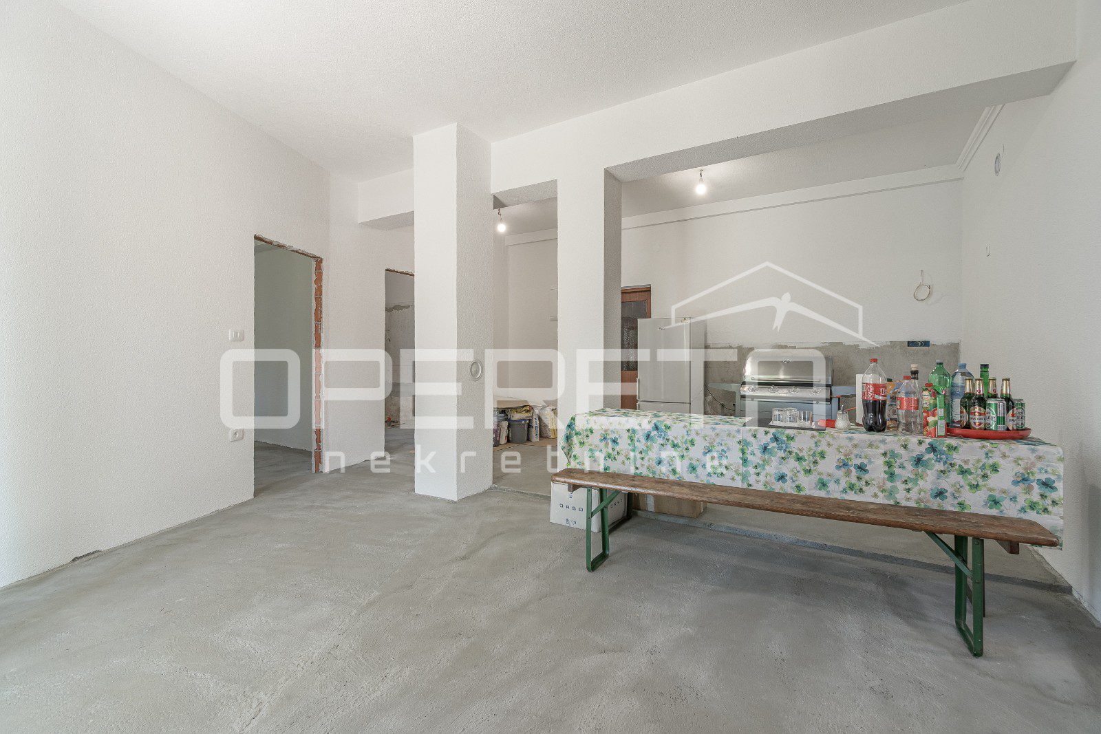 Kuća se sastoji od prizemlja i kata, međusobno povezanih unutarnjim i vanjskim stubištem, što omogućuje korištenje kao dvije odvojene jedinice. Prizemlje je u visokom stupnju adaptacije – izvedene su nove instalacije struje i vode te su pripremljene podloge za završnu obradu. Raspored obuhvaća dnevni boravak s kuhinjom i blagovaonicom, jednu spavaću sobu te kupaonicu.