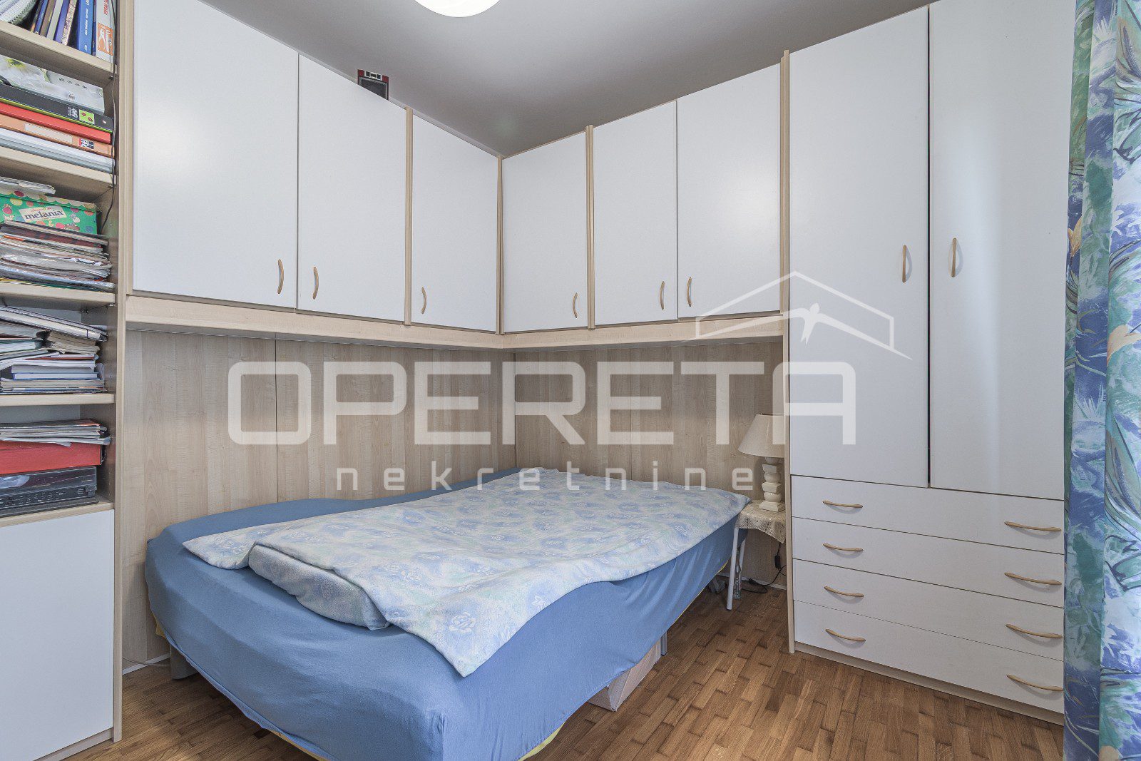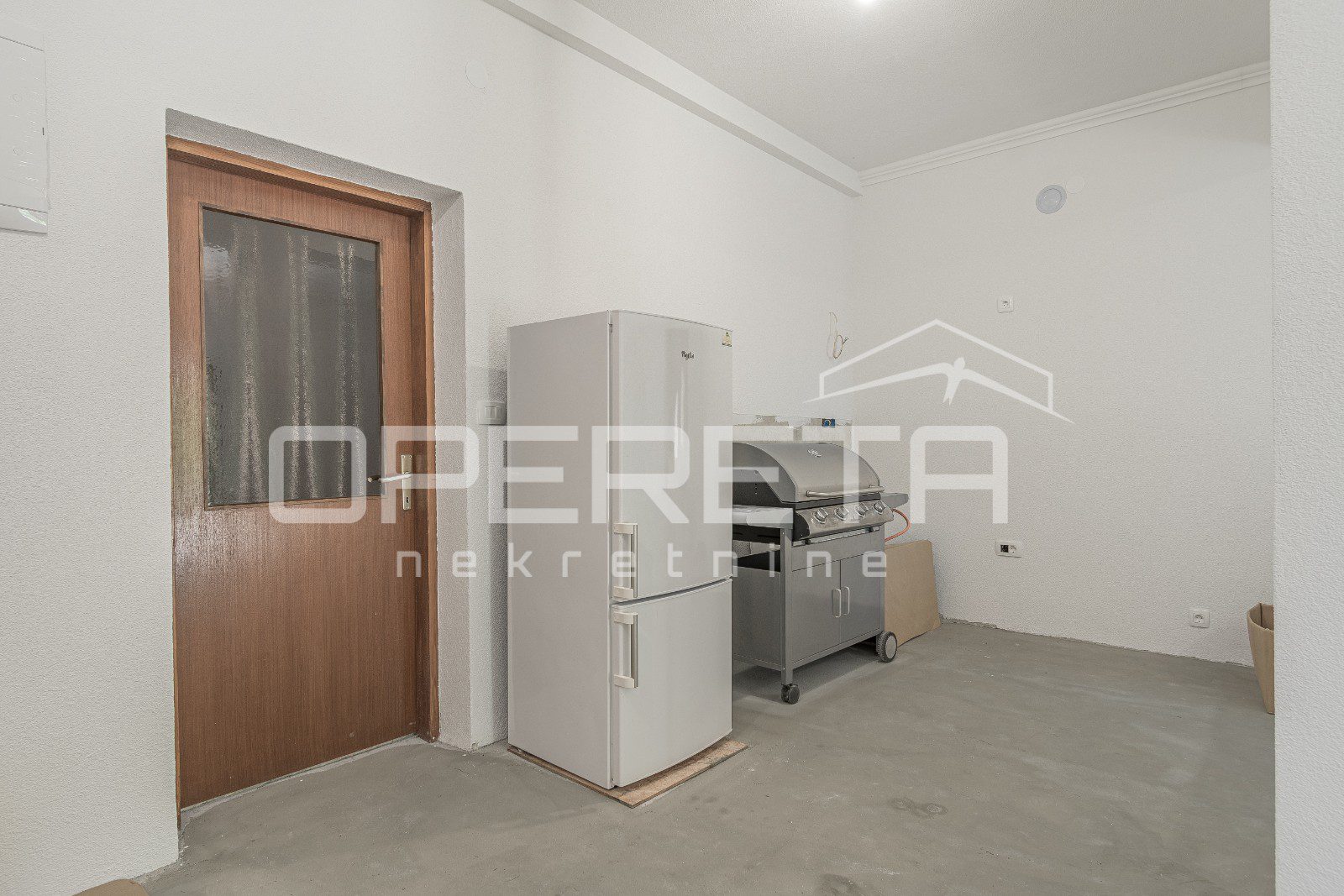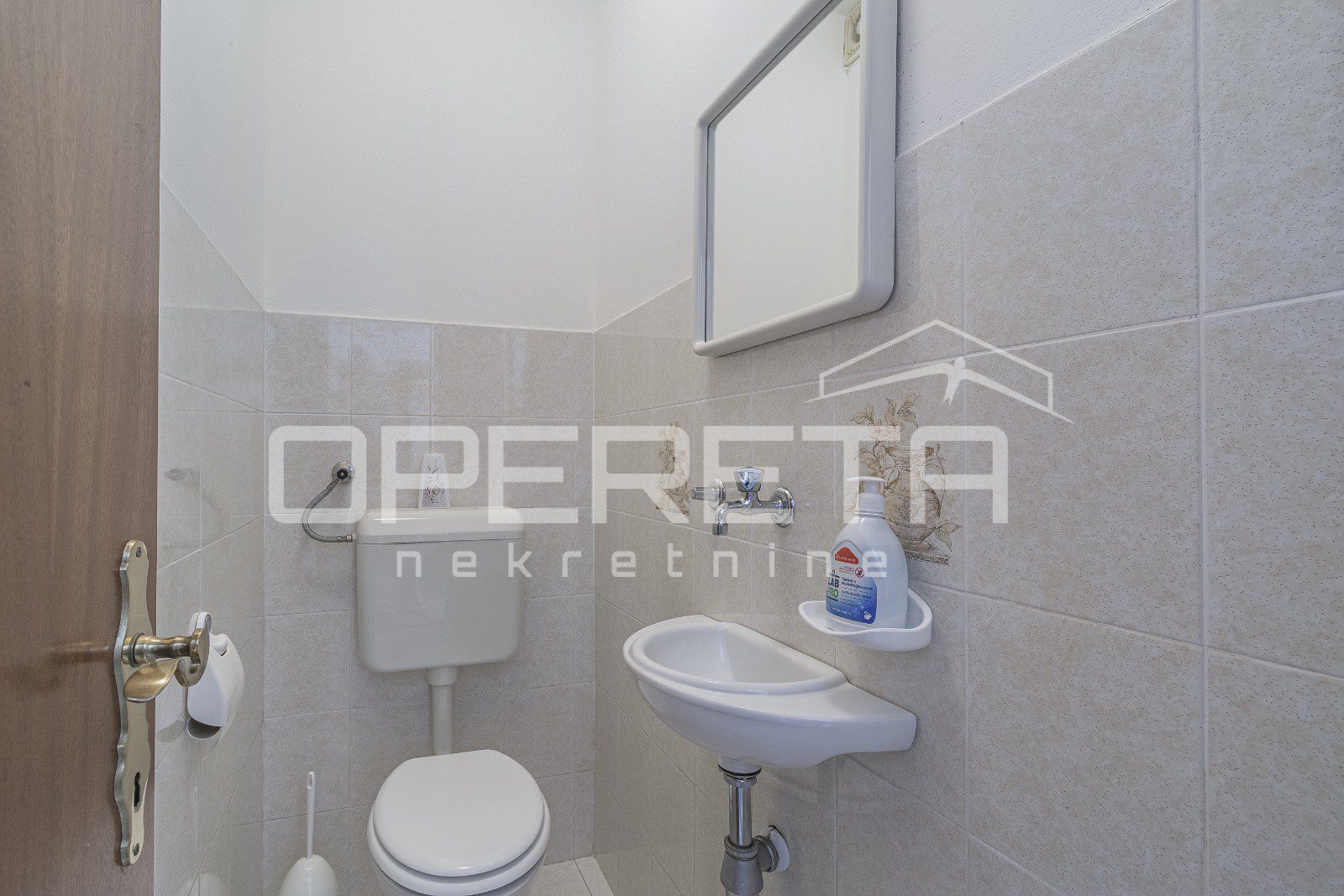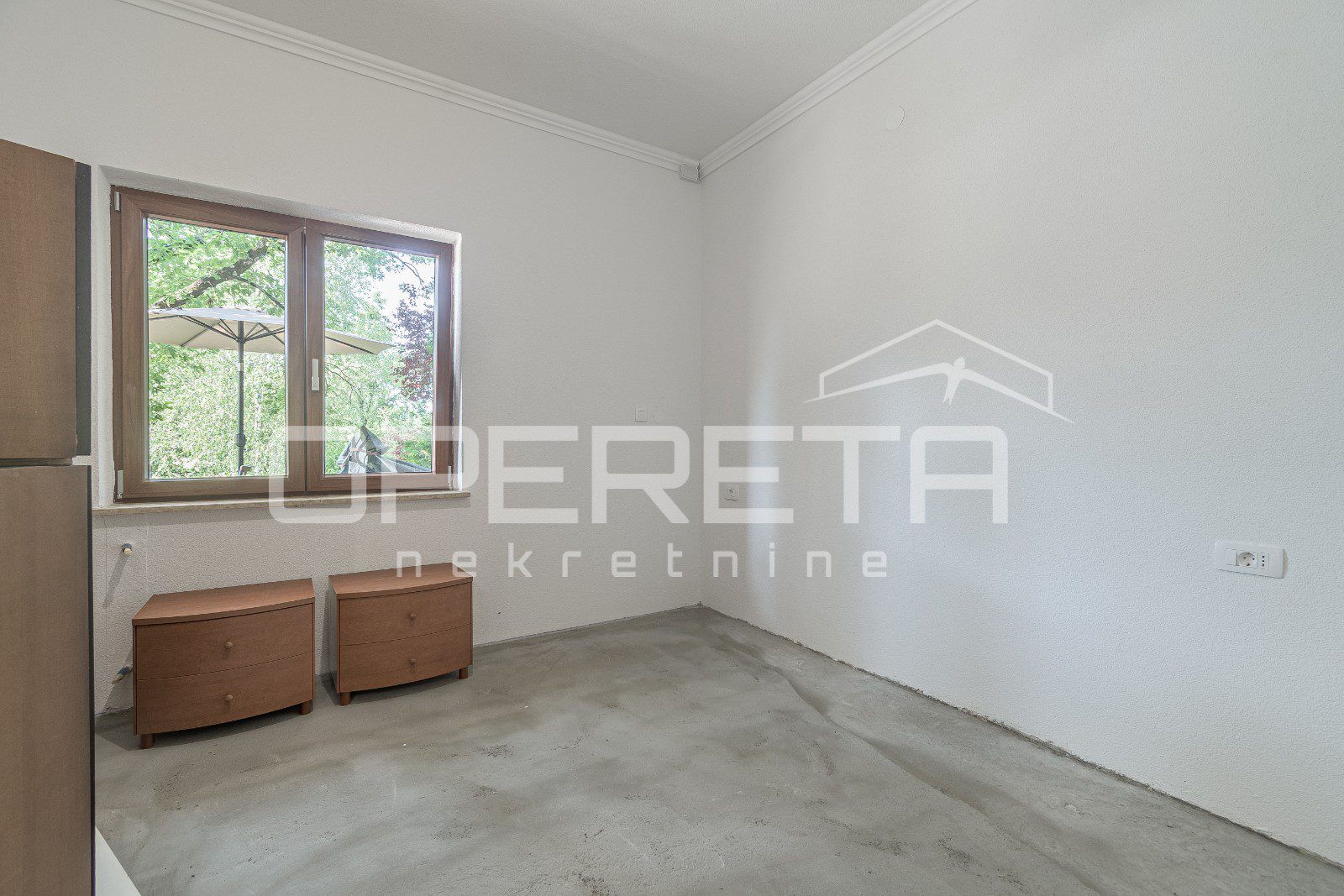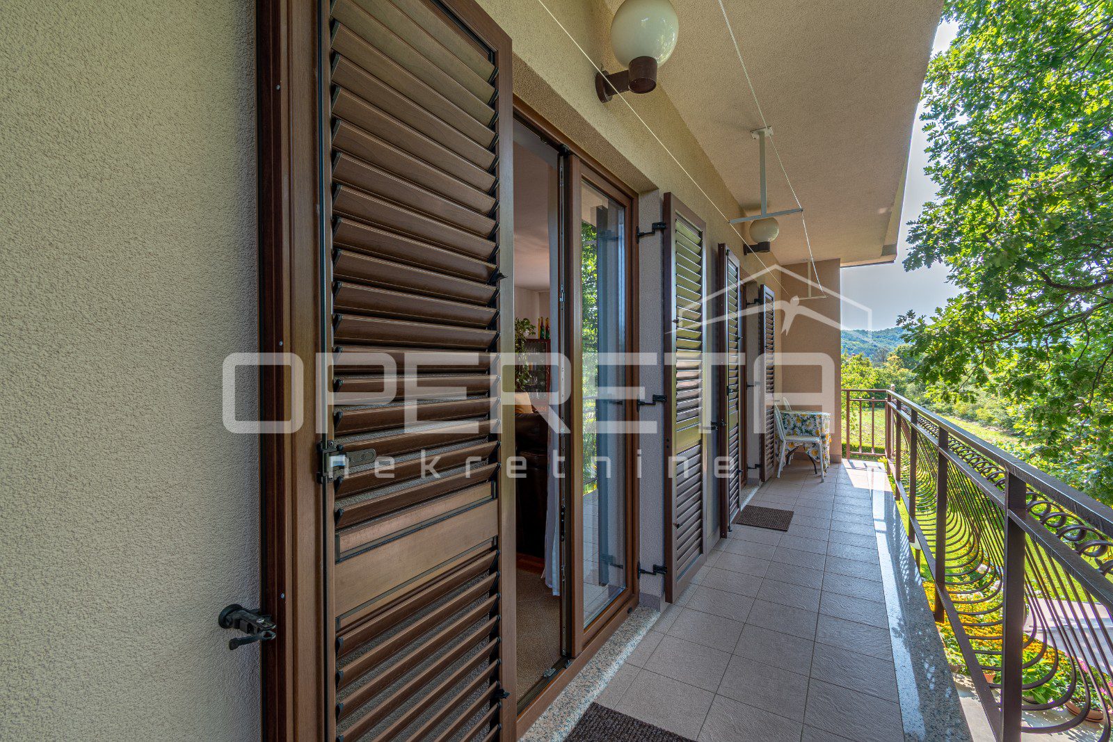 Na katu se nalazi stambeni prostor koji uključuje tri spavaće sobe, kupaonicu, odvojeni toalet, kuhinju s izlazom na balkon te blagovaonicu i dnevni boravak s dodatnim izlazom na balkon. Obje etaže imaju dobru prirodnu osvijetljenost i funkcionalan raspored.