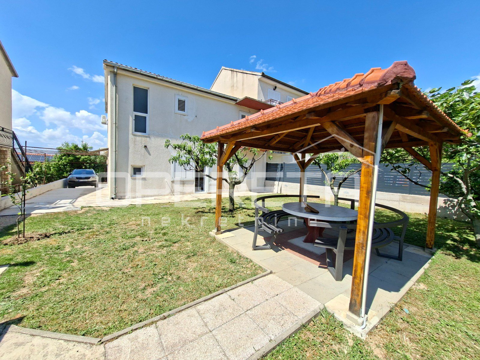 Uz stambeni prostor, nekretnina raspolaže i vrtom površine 100 m2, u kojem se nalazi kamin te vrtna kućica s kamenim stolom za deset osoba, idealna za boravak na otvorenom.