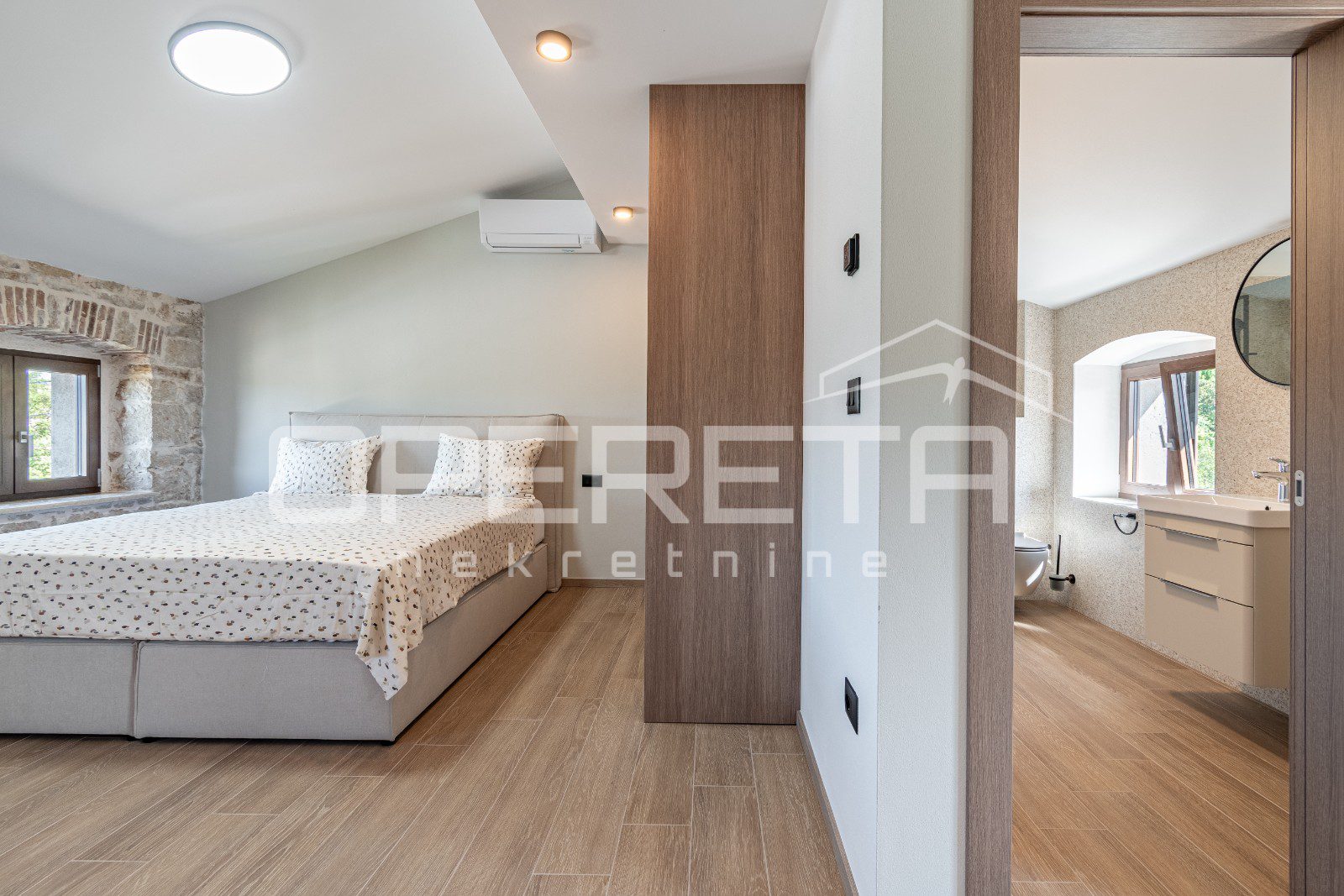 Kuća raspolaže s dvije prostrane i ugodno uređene spavaće sobe, dvije moderno opremljene kupaonice te dodatnim gostinjskim toaletom.