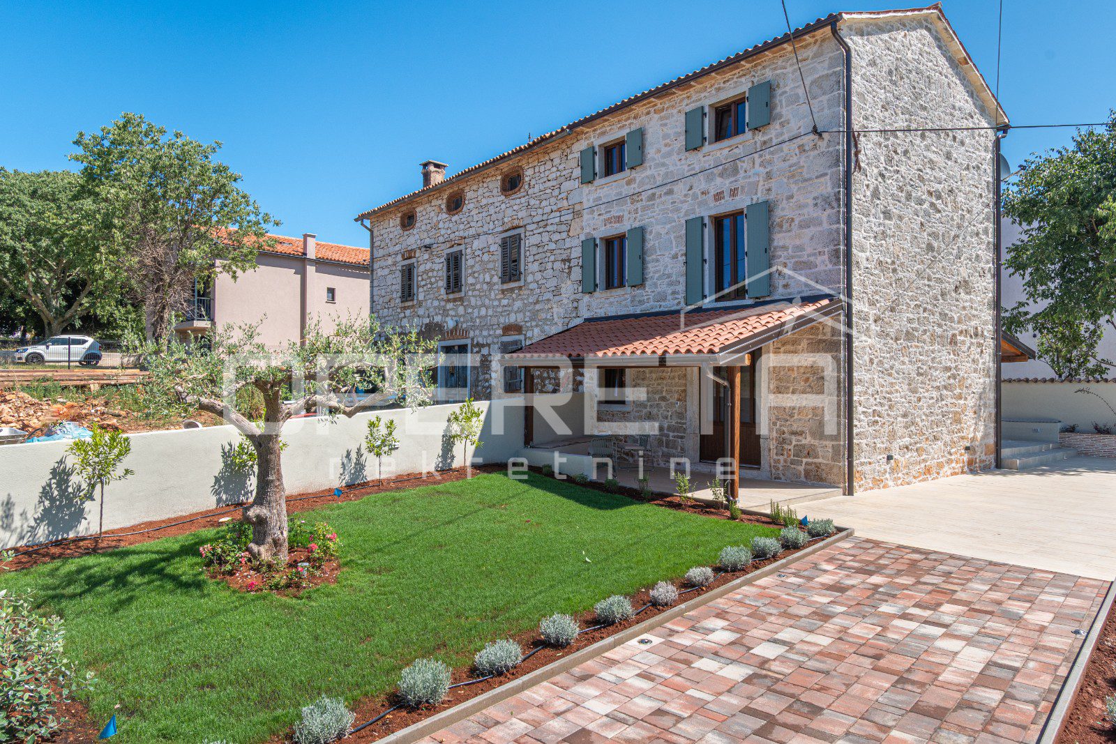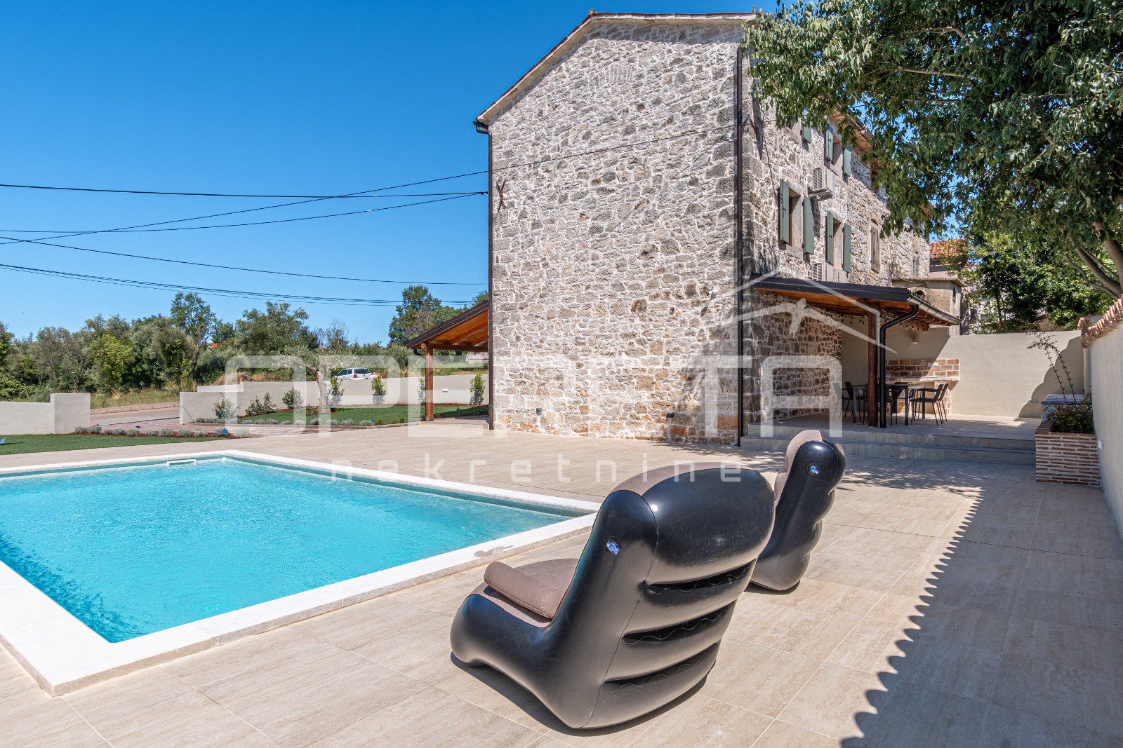 Istra, Poreč okolica- kamena kuća s bazenom, pogledom na more i velikom okućnicom