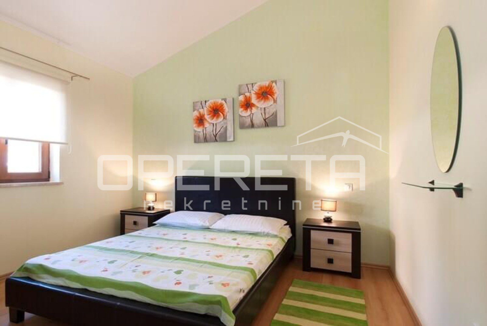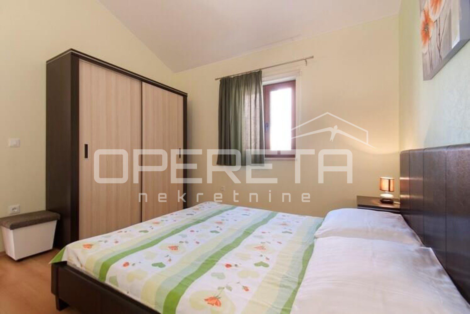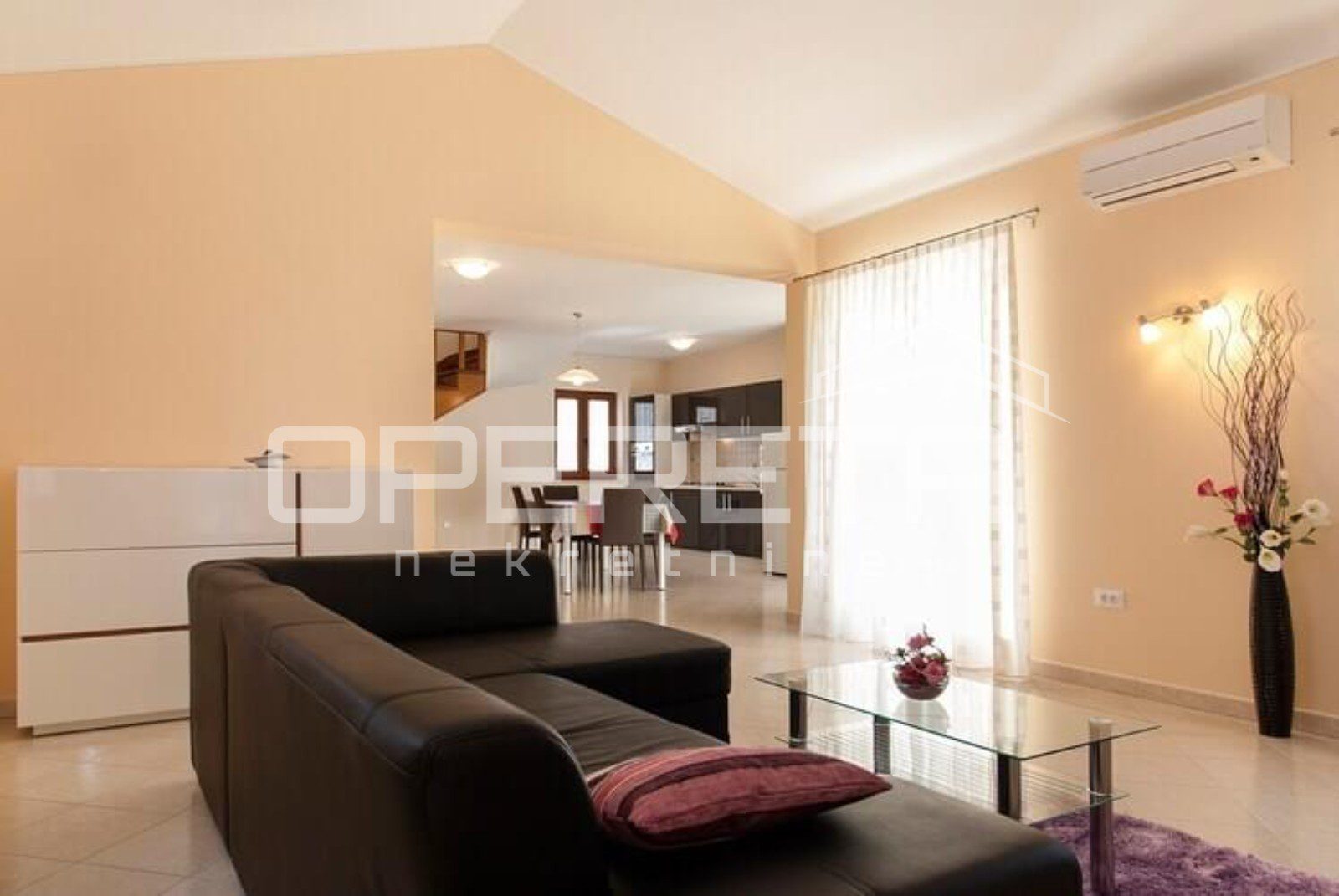 Kuća površine 140 se sastoji od prostranog dnevnog boravka, tri udobne spavaće sobe i dvije moderne kupaonice. Potpuno opremljena kuhinja, te izlaz na lijepu terasu i sunčalište, pružajući prekrasan pogled i savršeno mjesto za uživanje.