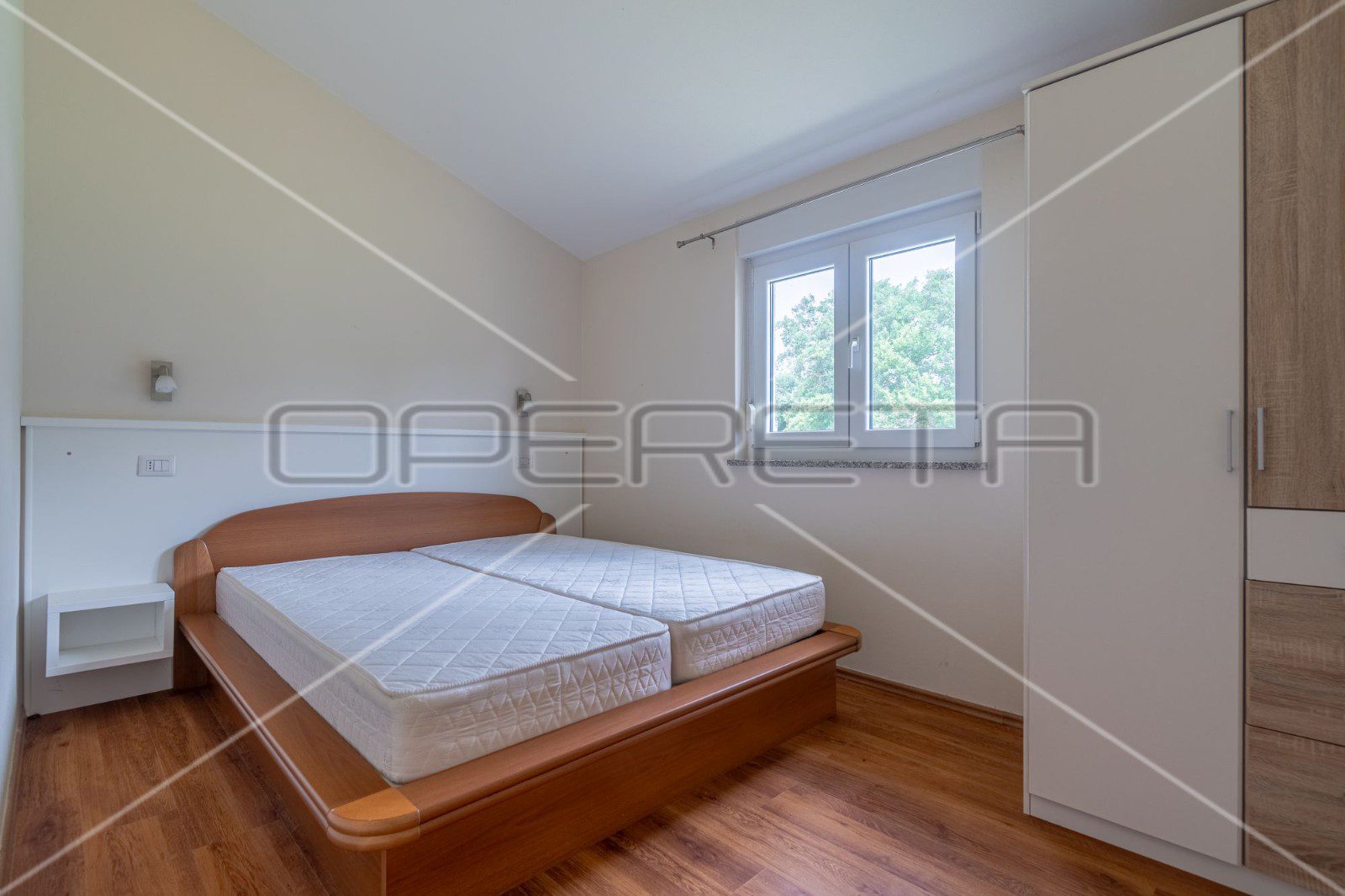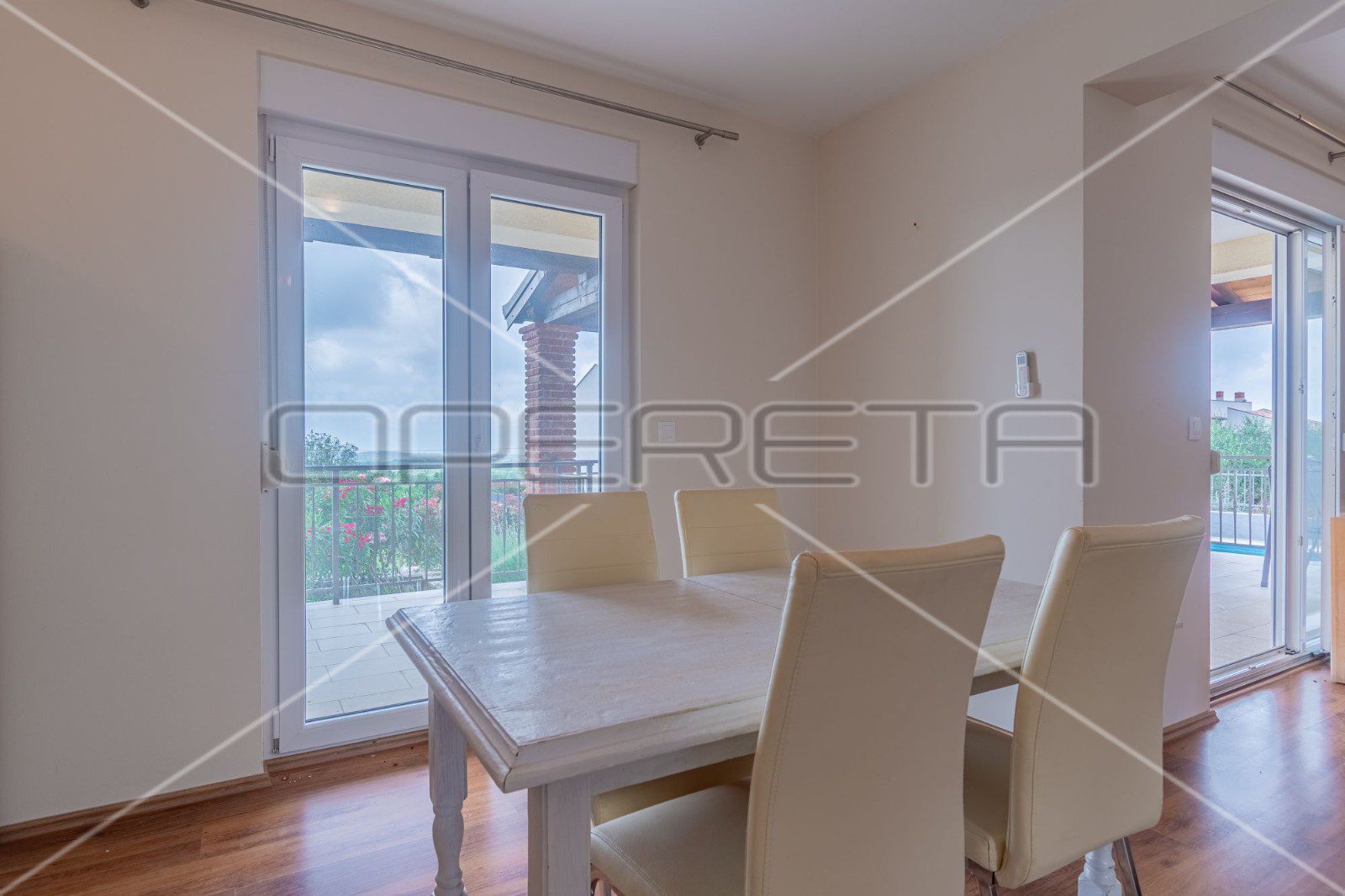 Kuća ukupne stambene površine 165m2 se sastoji od prizemlja i prvog kata, prizemlje se sastoji od ulaznog hodnika, kupaonice, prostranog dnevnog boravka s kuhinjom i blagovaonicom u jednoj cjelini iz kojeg se izlazi na veliku natkrivenu terasu te sunčalište s bazenom s kojeg se pruža pogled na more. Na prvom katu nalaze se tri spavaće sobe i dvije velike kupaonice.