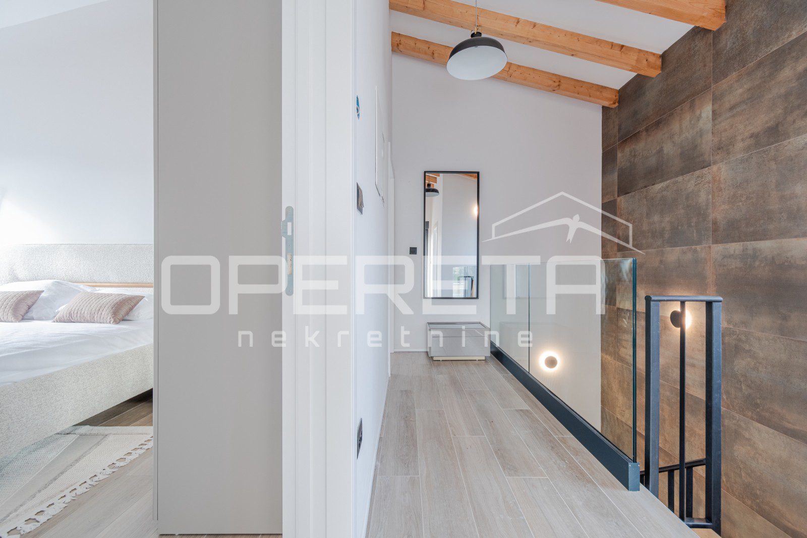 Kat je namijenjen privatnosti i relaksaciji, s dvije udobne spavaće sobe. Svaka spavaća soba na katu ima vlastitu en-suite kupaonicu, a dijele izlaz na terasu. U kući se nalazi i sauna, čime je zaokružena ova wellness zona.