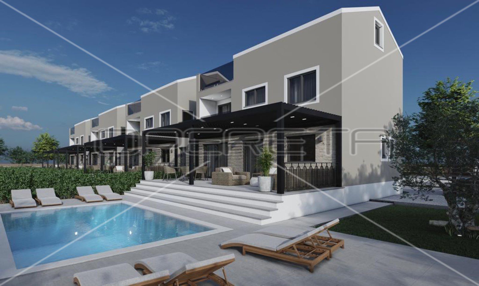 U malom istarskom mjestu nedaleko od Poreča smijestila se ova obiteljska kuća krajnja u nizu s vlastitim dvorištem i bazenom