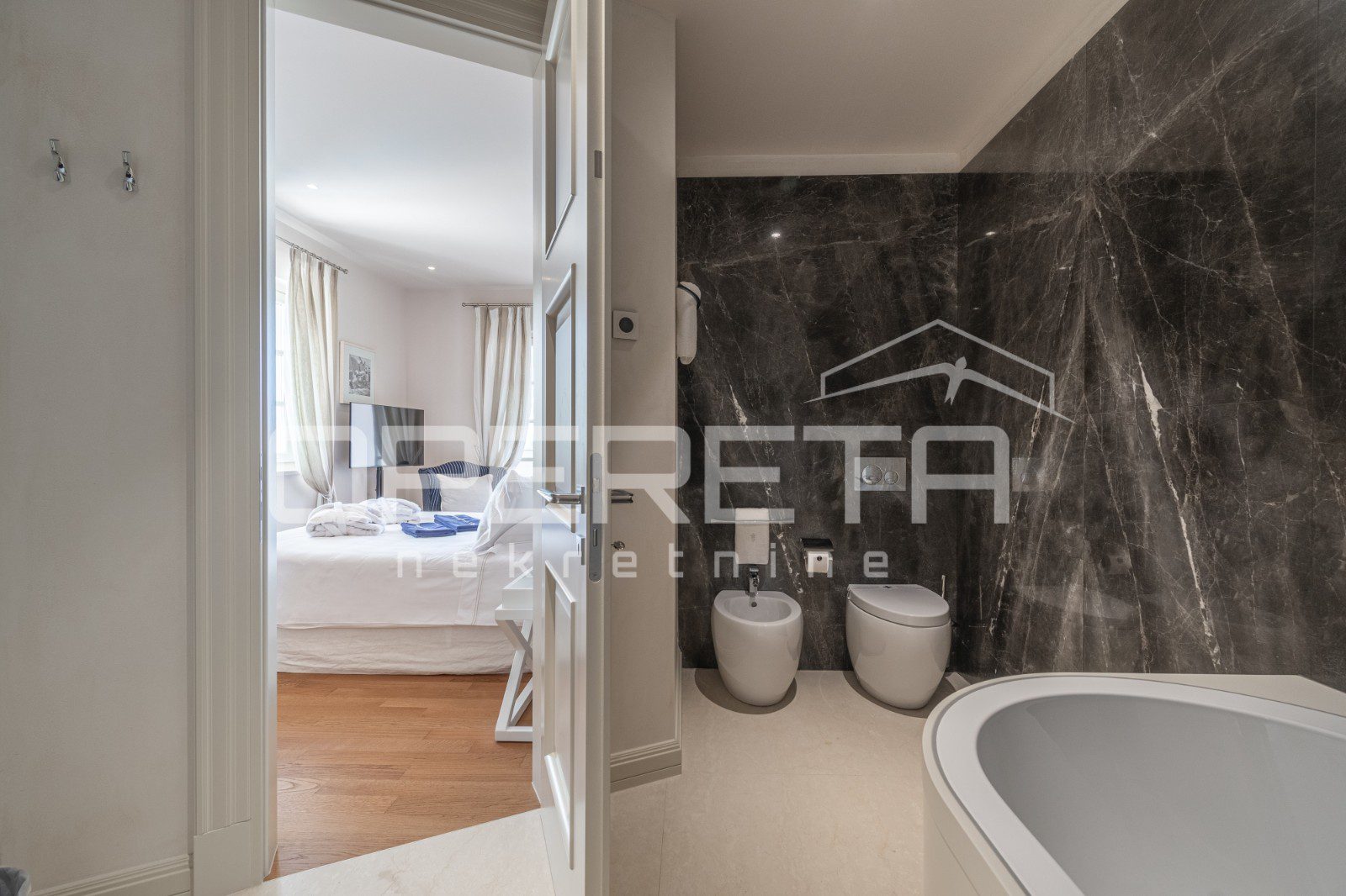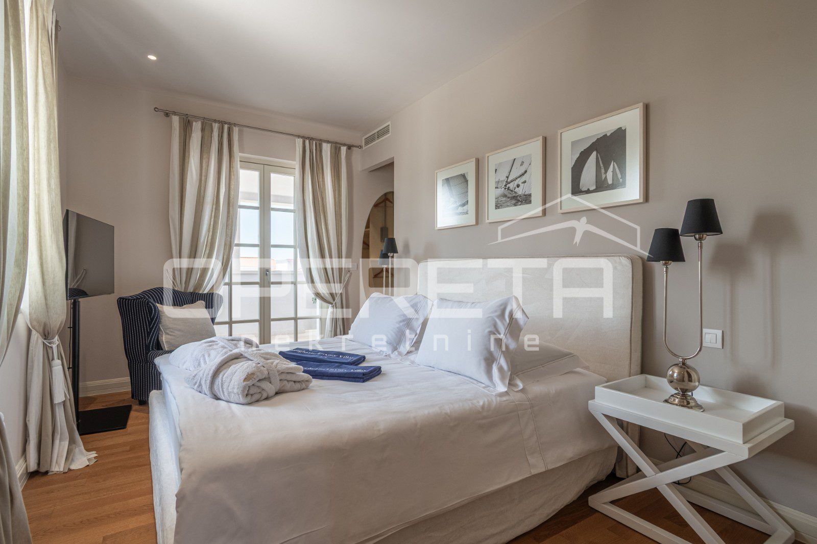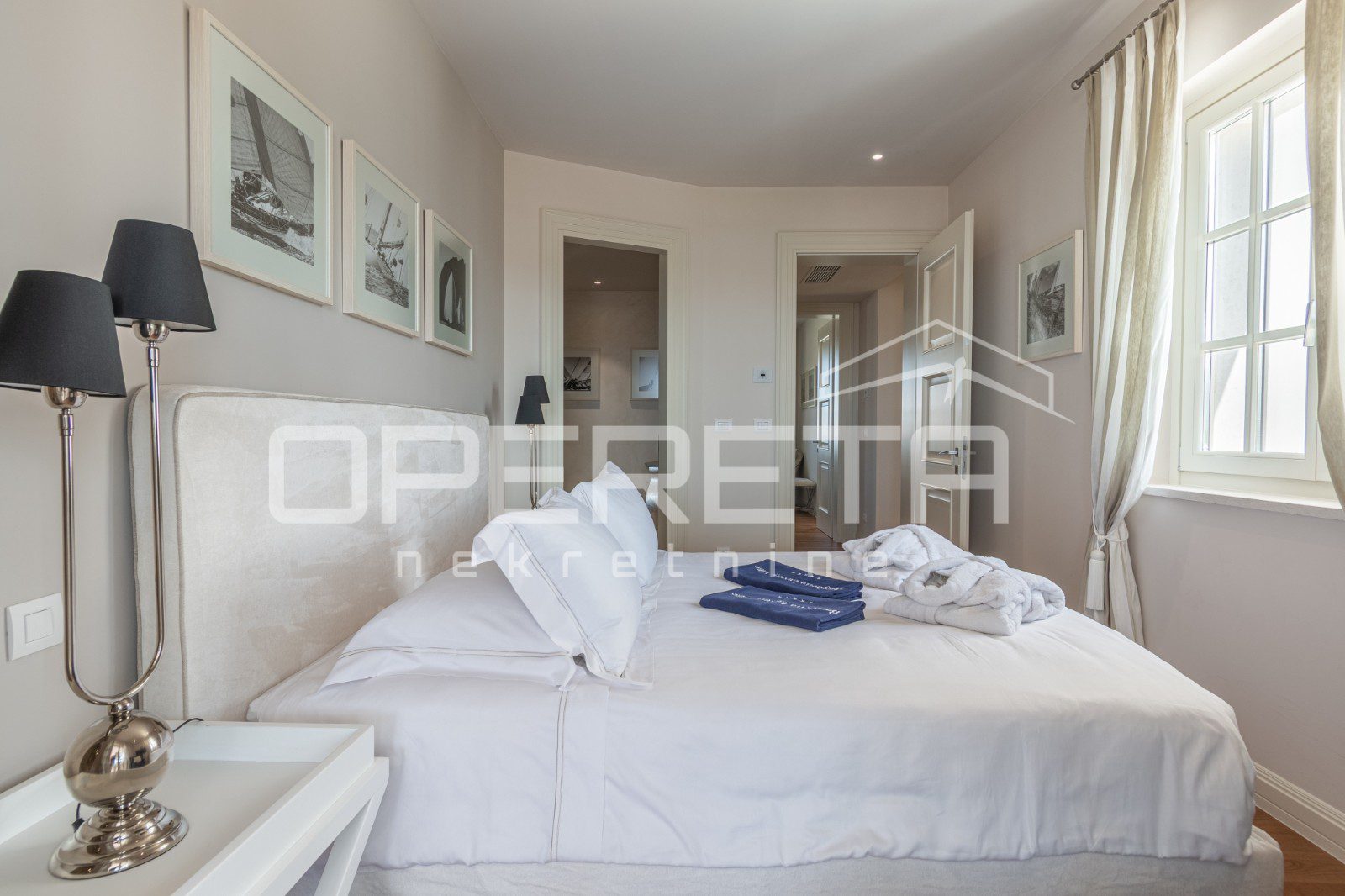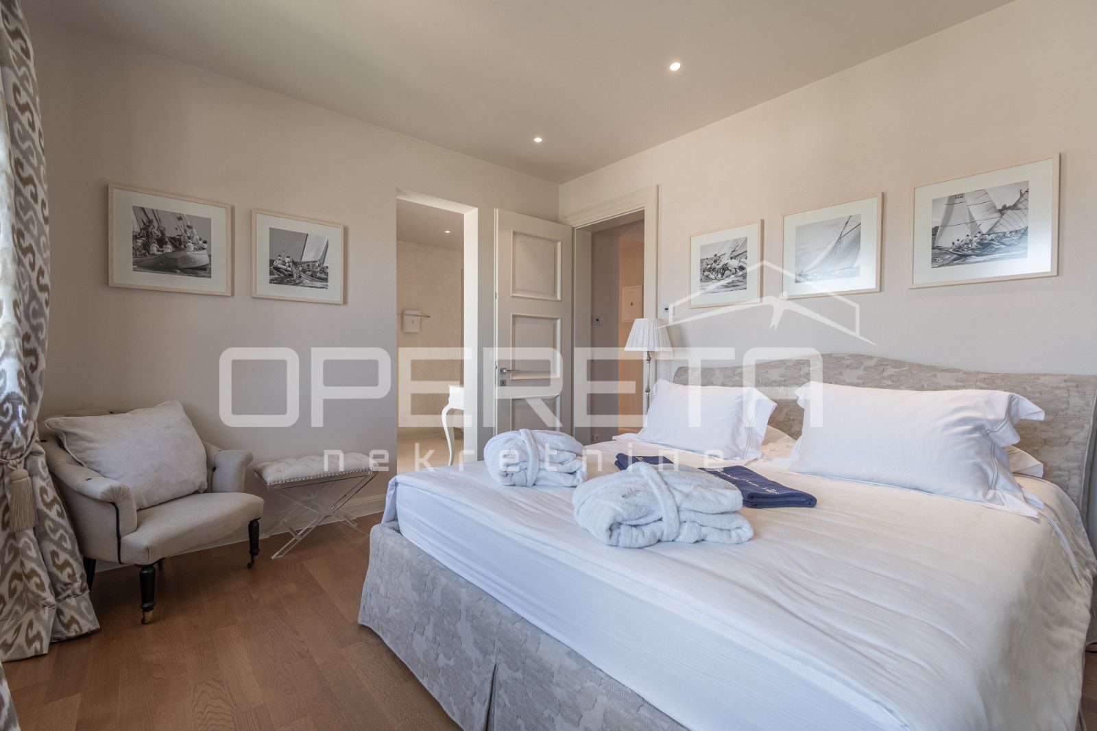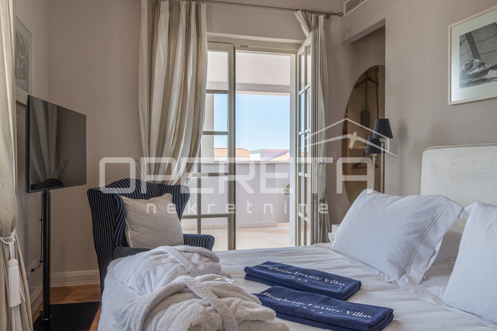 Kamene stepenice vode na prvi kat, gdje su smještene dvije prostrane spavaće sobe, svaka sa svojom luksuznom kupaonicom, nudeći maksimalnu privatnost i komfor. Posebna pogodnost ove vile je i predivna krovna terasa s koje se pruža očaravajući pogled na more, idealna za jutarnju kavu ili večernja druženja pod zvijezdama.