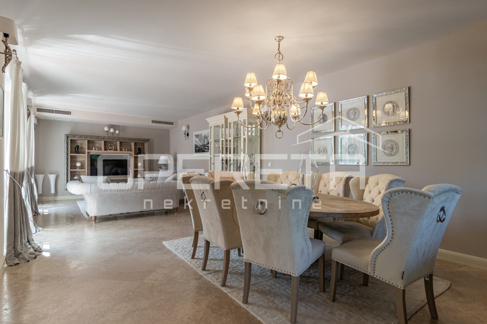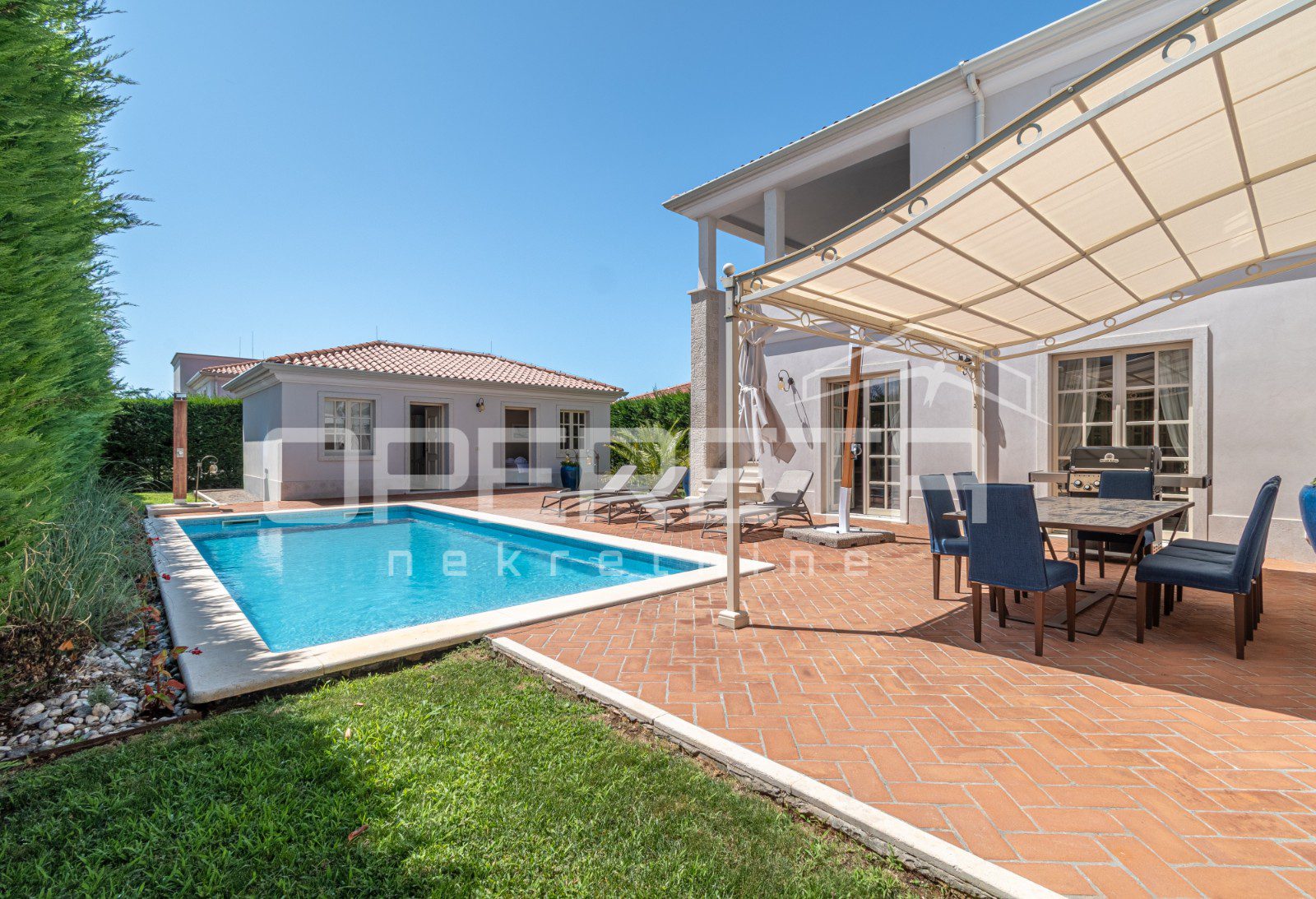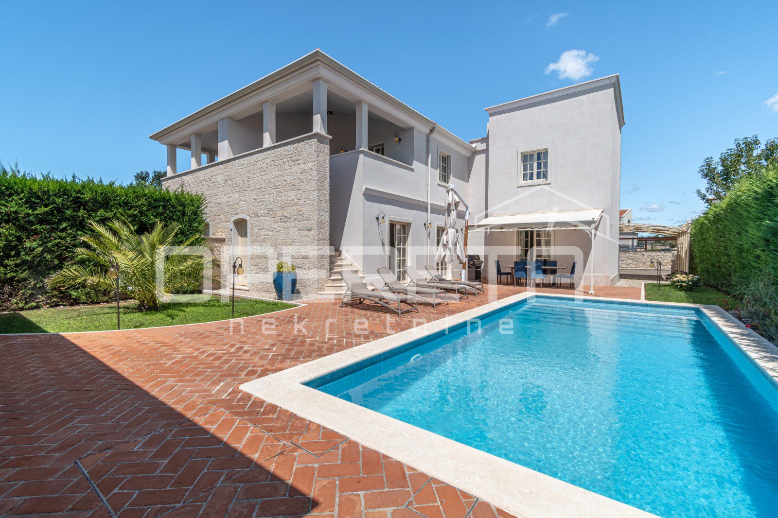 Predstavljamo Vam izvanrednu nekretninu koja utjelovljuje spoj tradicionalne elegancije i modernog luksuza, smještenu na prostranoj okućnici od 651 m². Ova bezvremenska vila, ukupne površine 226 m², pažljivo je dizajnirana za život bez kompromisa i nudi vrhunsku udobnost i privatnost.