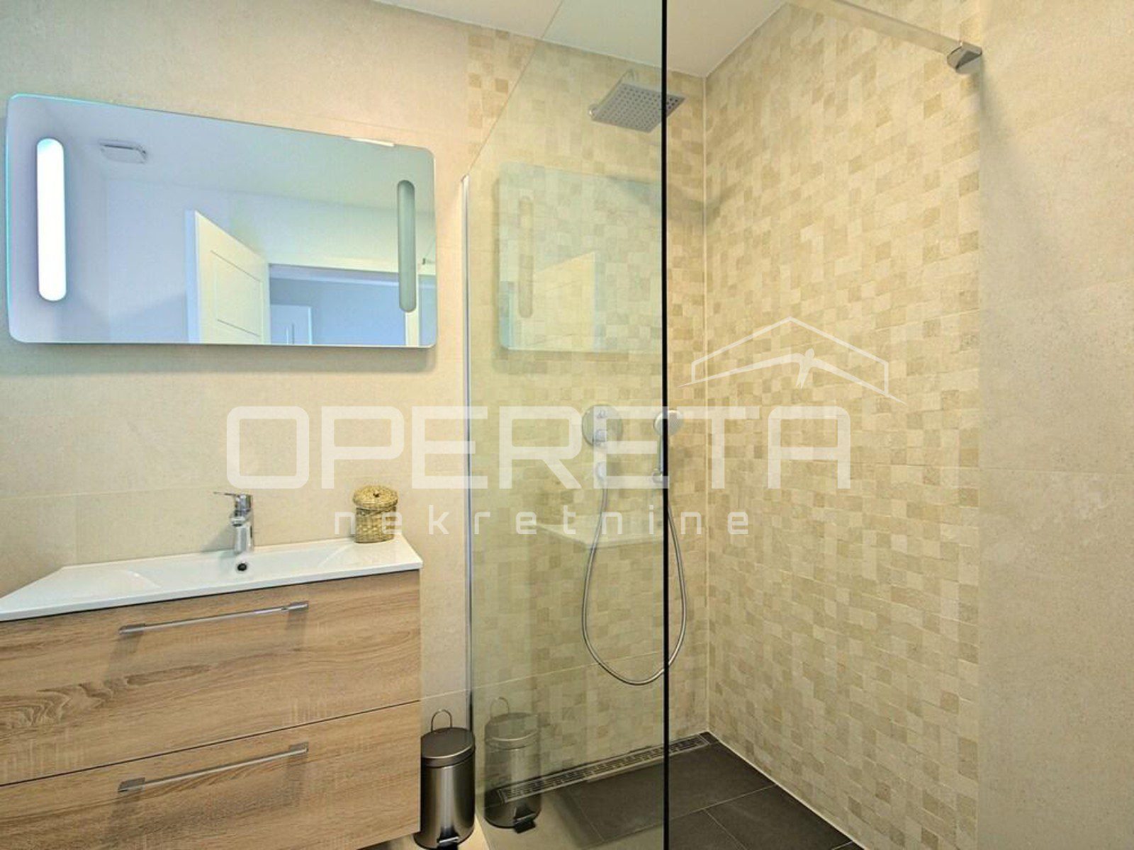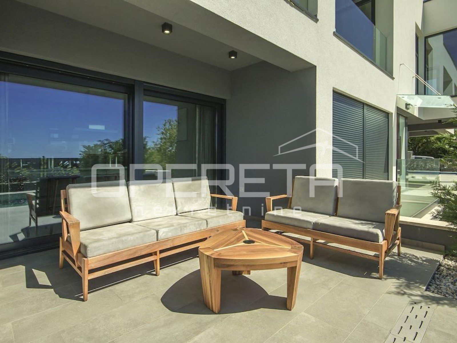 Eksterijer nekretnine podjednako je impresivan, s bazenom okruženim uređenim sunčalištem, natkrivenom terasom za objedovanje na otvorenom te prostorom za roštilj, što vilu čini savršenom za ljetna druženja. Vila je opremljena najmodernijim sustavima grijanja i hlađenja, uključujući podno grijanje, klima uređaje i fancoilere, osiguravajući ugodan boravak tijekom cijele godine. Ova elegantna nekretnina predstavlja rijetku priliku na tržištu, bilo kao prestižan dom za život uz more ili kao visokokvalitetna investicija za turistički najam na vrhunskoj razini.