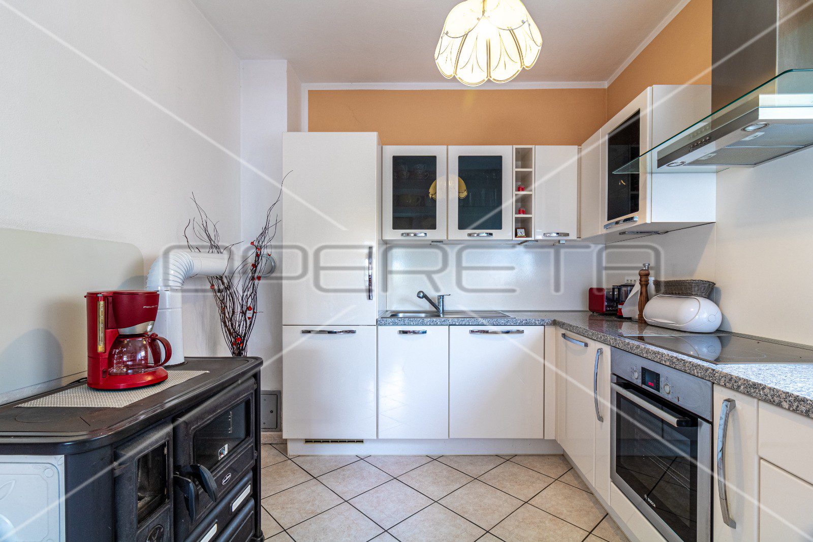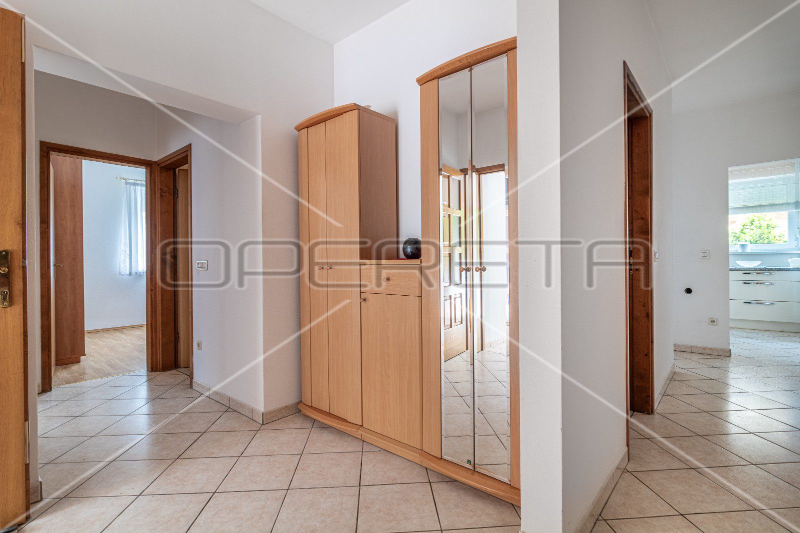 U prizemlju se nalazi stan površine 130 m2 koji se sastoji od prostranog ulaznog dijela, ostave ispod stubišta, dnevnog boravka, blagovaone i kuhinje u jednoj cjelini, te tri spavaće sobe i dvije kupaonice.