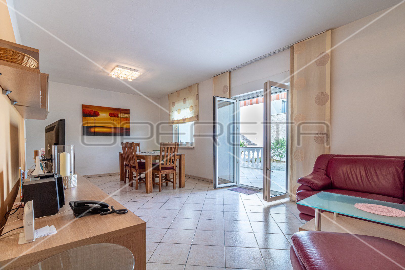 Na prvom katu se nalaze dva apartmana koji se uspješno turistički iznajmljuju. Jedan apartman ima 55m2 i sastoji se od dvije spavaće sobe s kupaonicom, kuhinje i dnevnog boravka koji imaju izlaz na natkrivenu terasu.