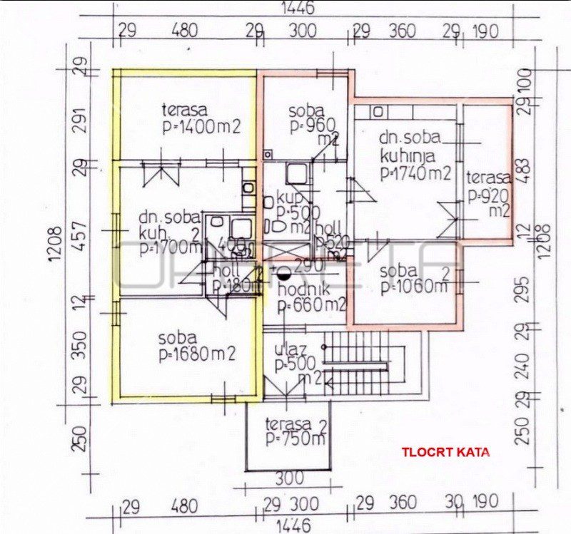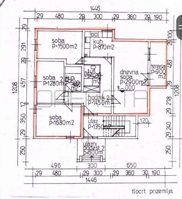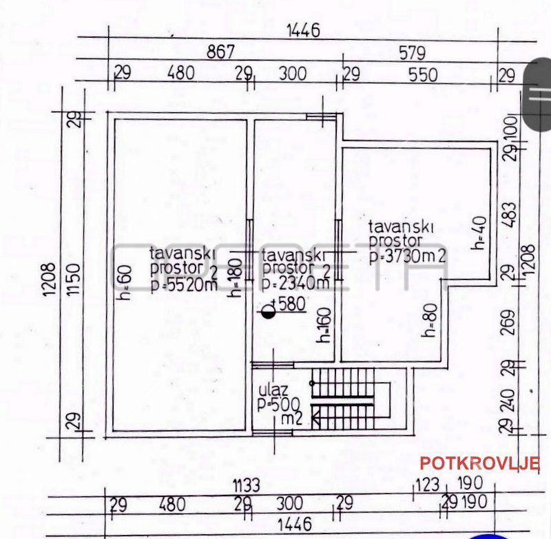 Potkrovlje kuće je nedovršeno, s provedenom vodom , strujom i kanalizacijom, tlocrtne površine 121 m2.