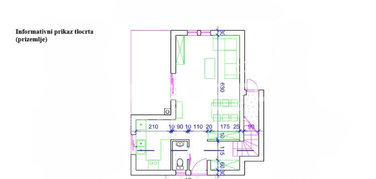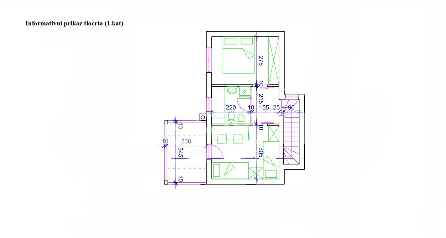 Sa 68,52 m2 stambene površine, i okućnicom od cca. 350 m2, nudi komotan prostor za obitelj, a mirna lokacija, samo 4 km od mora i centra grada, osigurava privatnost i opuštanje.