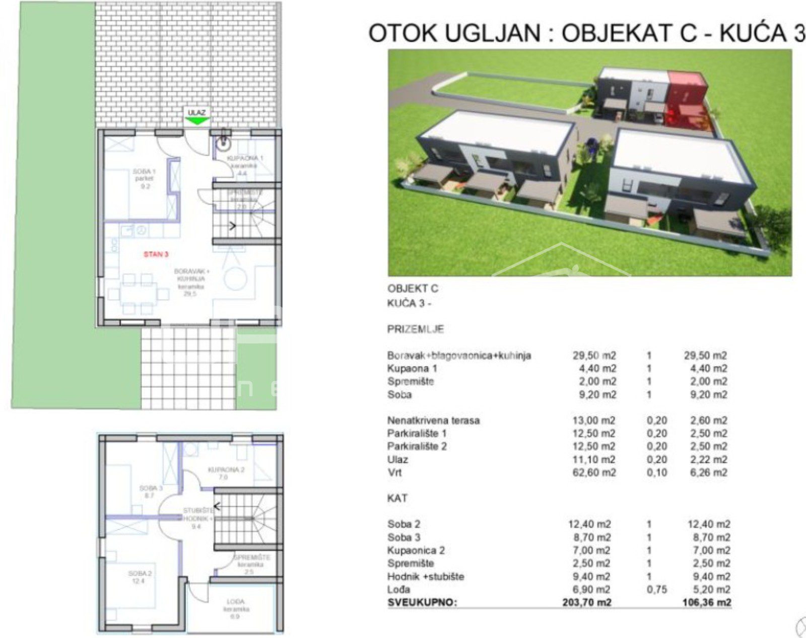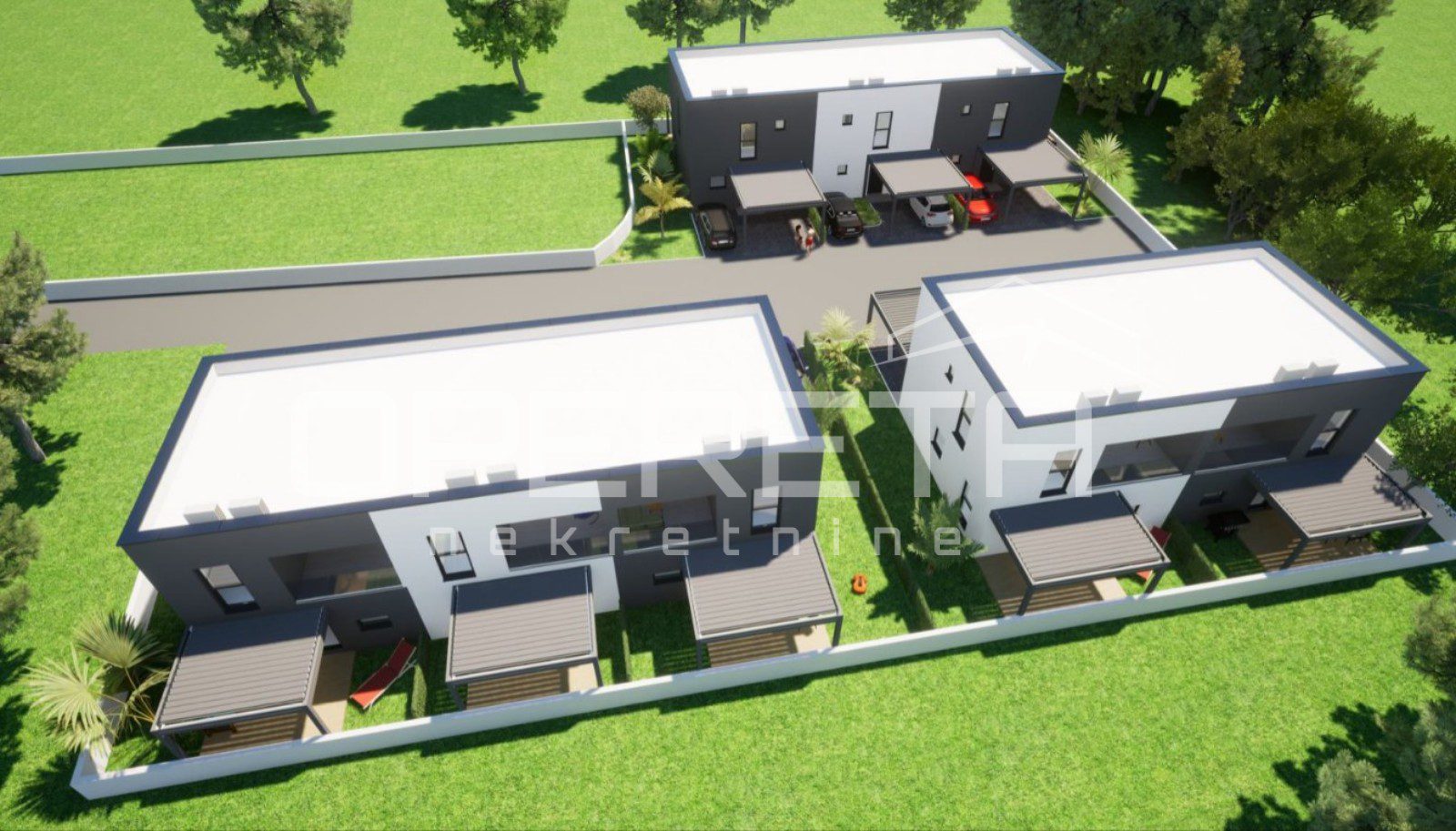 Ekskluzivna luksuzna kuća u nizu, smještena na idealnoj lokaciji u mjestu Ugljan cca. 90 metara od mora i plaže s pogledom na iste. Jedan objekt s 2 kuće u nizu. Na istoj parceli predviđena su još 2 objekta od po 3 kuće u nizu.