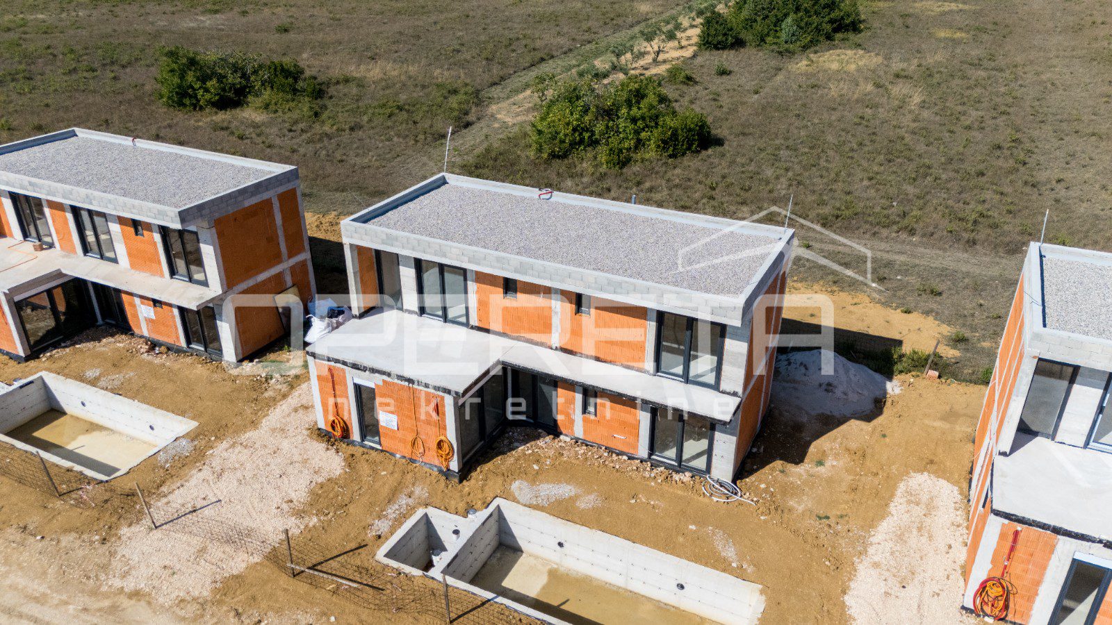 Gradnja je izvedena visokokvalitetnim materijalima, a vile su opremljene suvremenim sustavima koji osiguravaju visoku energetsku učinkovitost i udobnost.