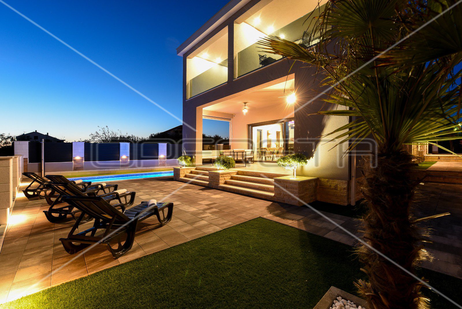 Prodaje se izuzetno luksuzna vila u mjestu Privlaka kod Zadra, udaljena stotinjak metara od mora,koja se prostire na parceli od 553 m2. Kuća se sastoji od prizemlja i prvog kata te ukupno ima 4 sobe i 4 kupaonice. Ispred same kuće nalazi se bazen. Grijanje je predviđeno kao multi split sistem klima – svaka soba ima klima uređaj te dnevni boravak ima dvije. Ostali detalji na upit.