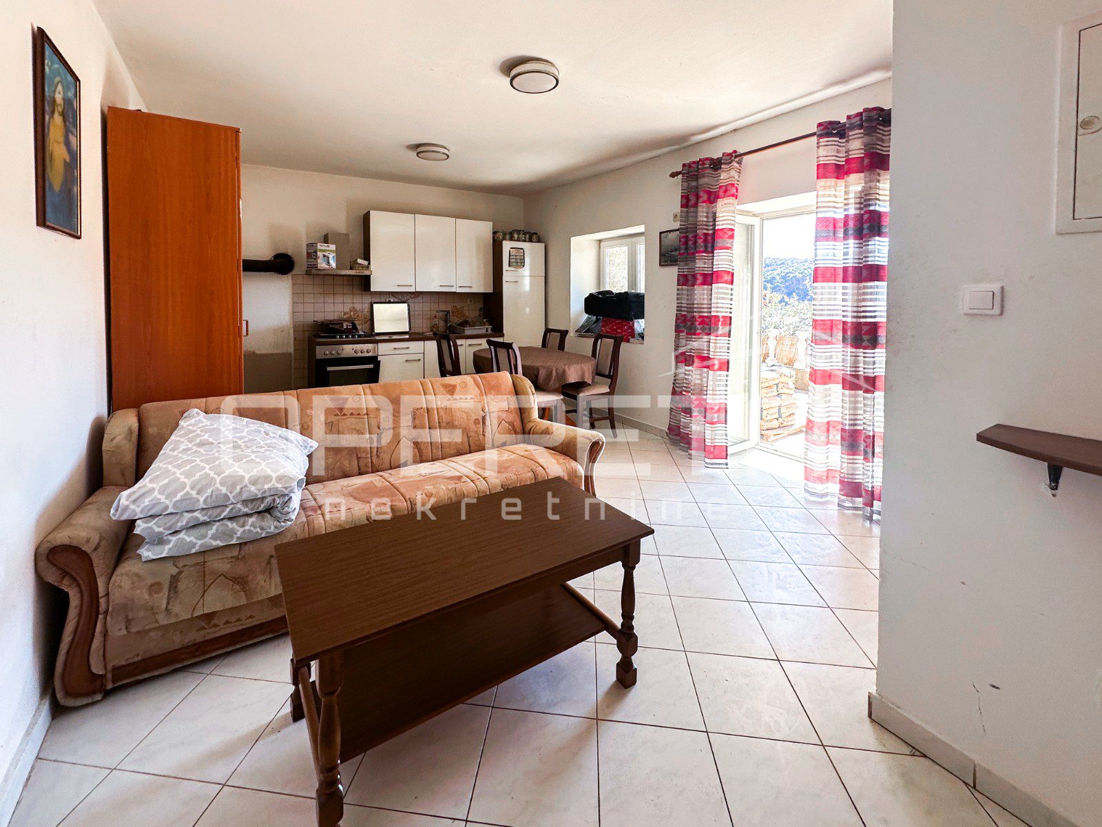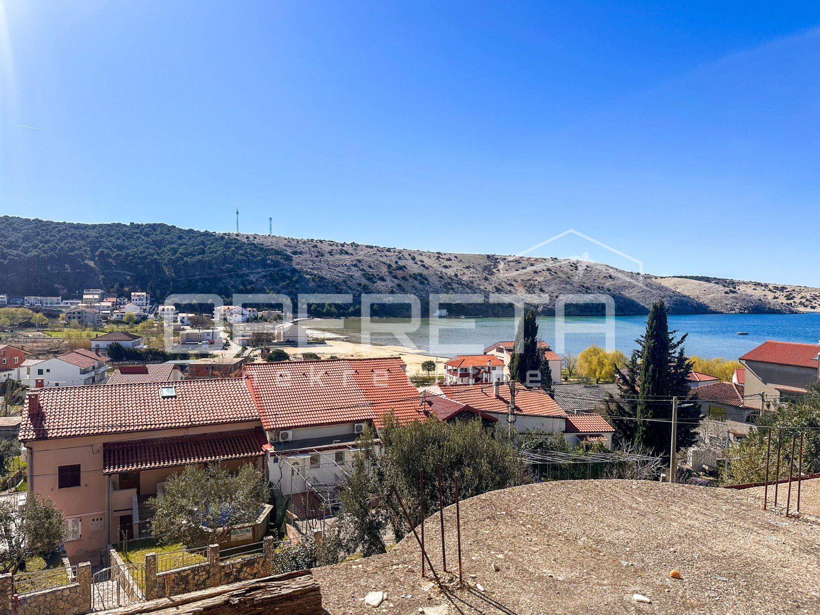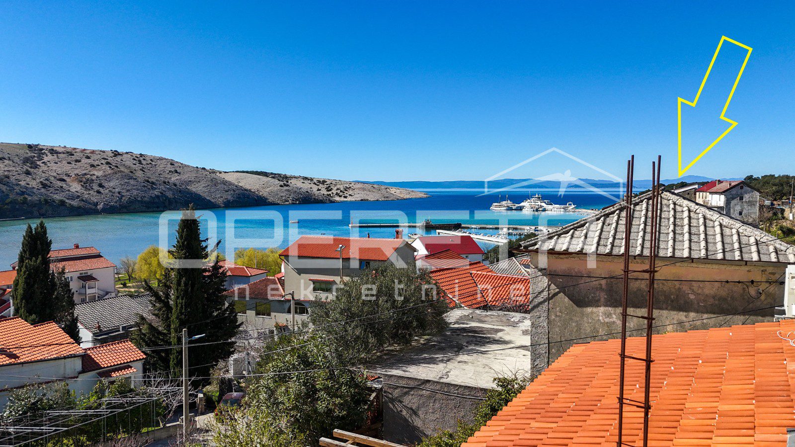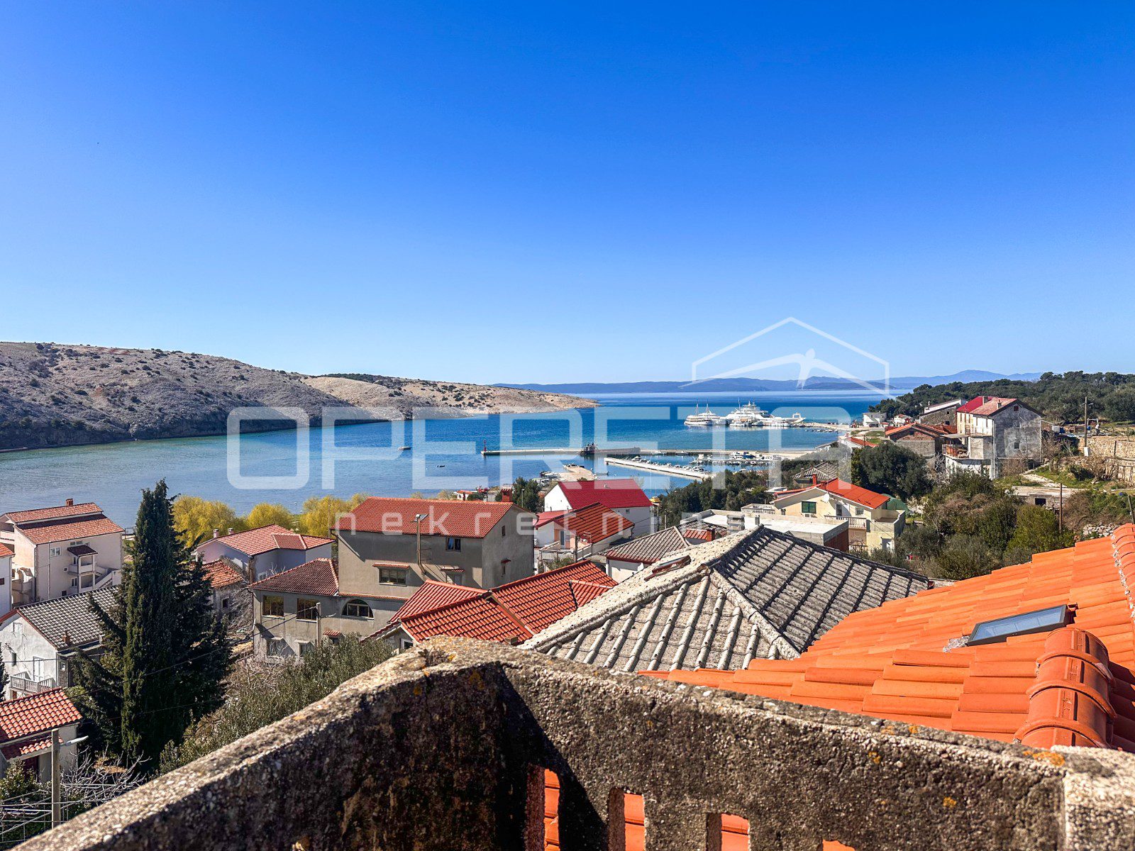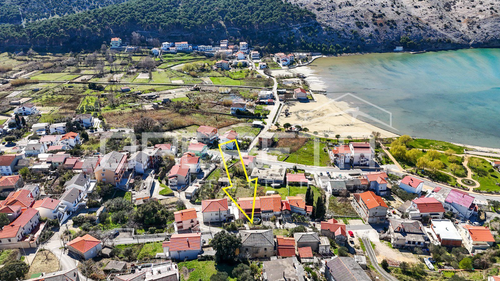 Glavna zgrada ima oko 450 m2 bruto površine, raspoređenih na tri etaže i tavan, a izgrađena je u kamenoj konstrukciji. S prednje strane ističu se terase s pogledom na more, dok se u prizemlju već nalazi djelomično uređen apartman i rustikalna konoba, koja ostavlja prostor za daljnje oblikovanje prema vlastitim idejama.
