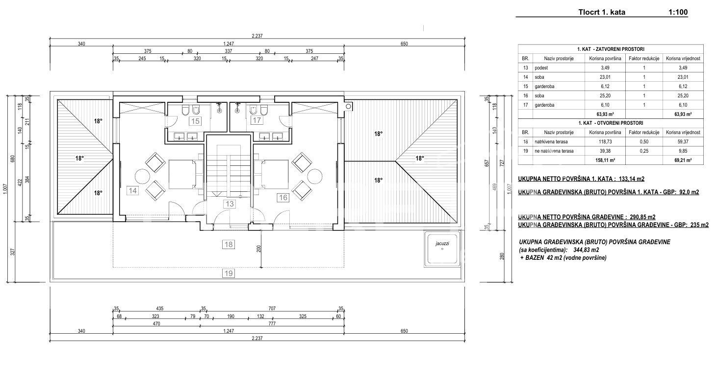 Na katu se nalaze dodatne dvije spavaće sobe s vlastitim kupaonicama, koje imaju izlaz na veliku terasu s pogledom koji oduzima dah. Na terasi se nalazi i ugrađena hidromasažna kada (jacuzzi) za potpuni užitak u prirodnom okruženju.