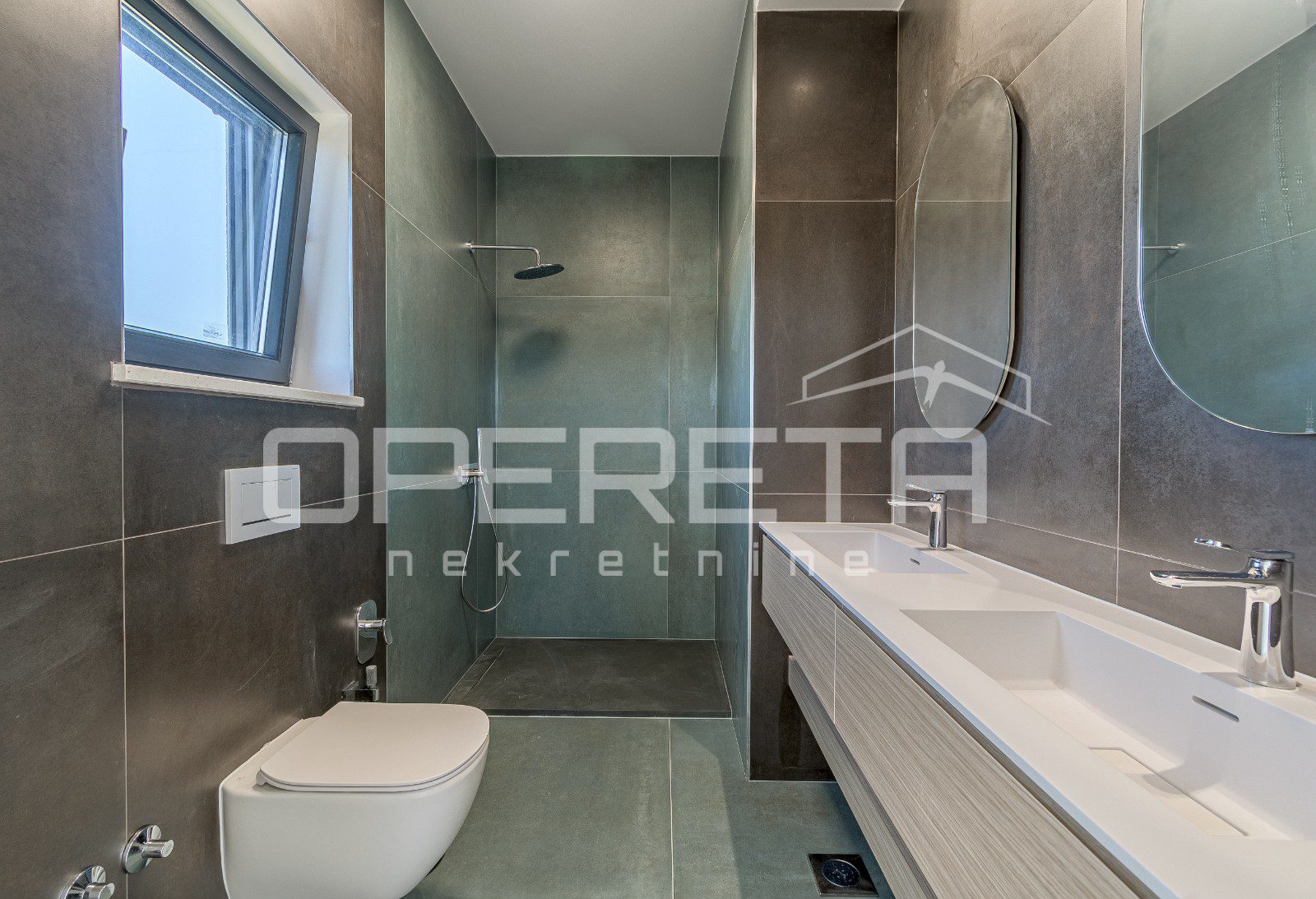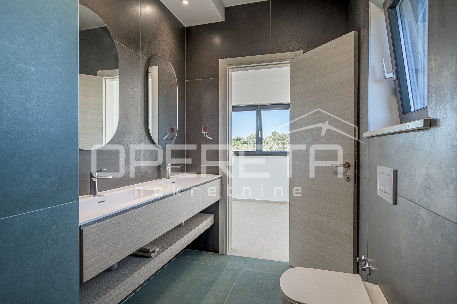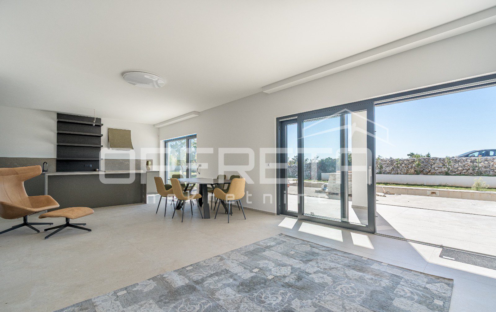 Vila je trenutno u završnoj fazi izgradnje, projektirana za udoban boravak tijekom cijele godine, kombinirajući suvremenu arhitekturu s visokokvalitetnim materijalima i završnom obradom. Raspored prostora raspoređen je na dvije etaže, s ukupno četiri spavaće sobe, od kojih svaka ima vlastitu kupaonicu, te brojnim unutarnjim i vanjskim prostorima pogodnima za opuštanje i druženje.