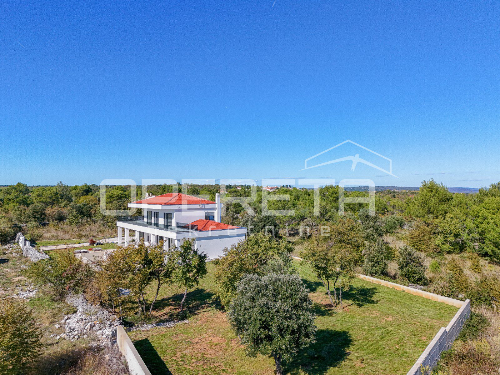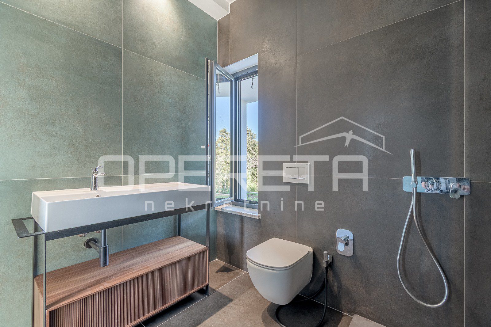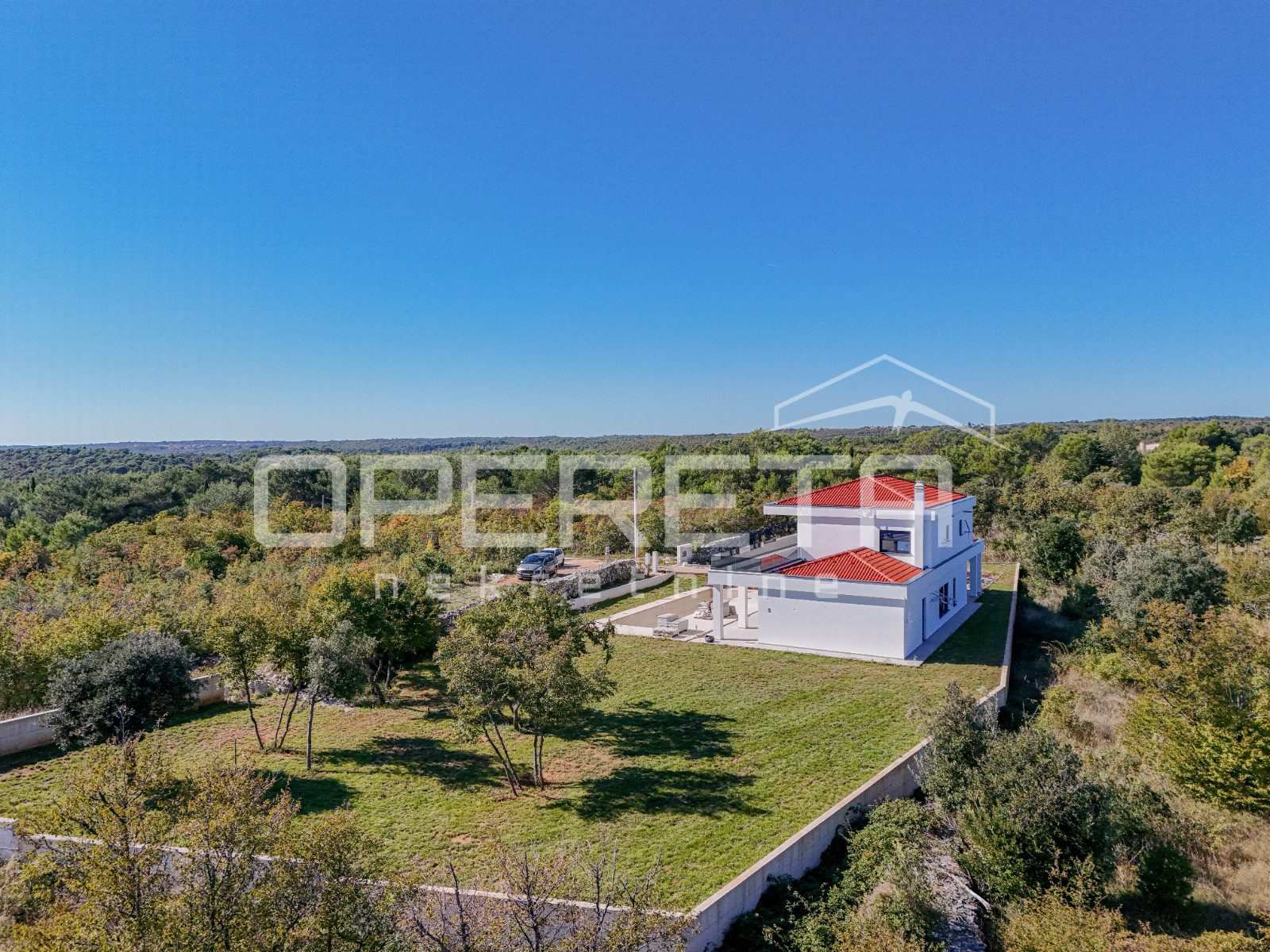 Otprilike 2 kilometra od mora, ova novoizgrađena vila smještena je u potpunoj privatnosti usred netaknute istarske šume. S panoramskim pogledom na Jadran i okolni mediteranski krajolik, nekretnina predstavlja rijetku priliku za posjedovanje suvremenog doma usklađenog s prirodom. Posebno je važno naglasiti da je zemljište između vile i mora zaštićeno te se na njemu ne smije graditi, čime je zajamčen trajni pogled bez prepreka.