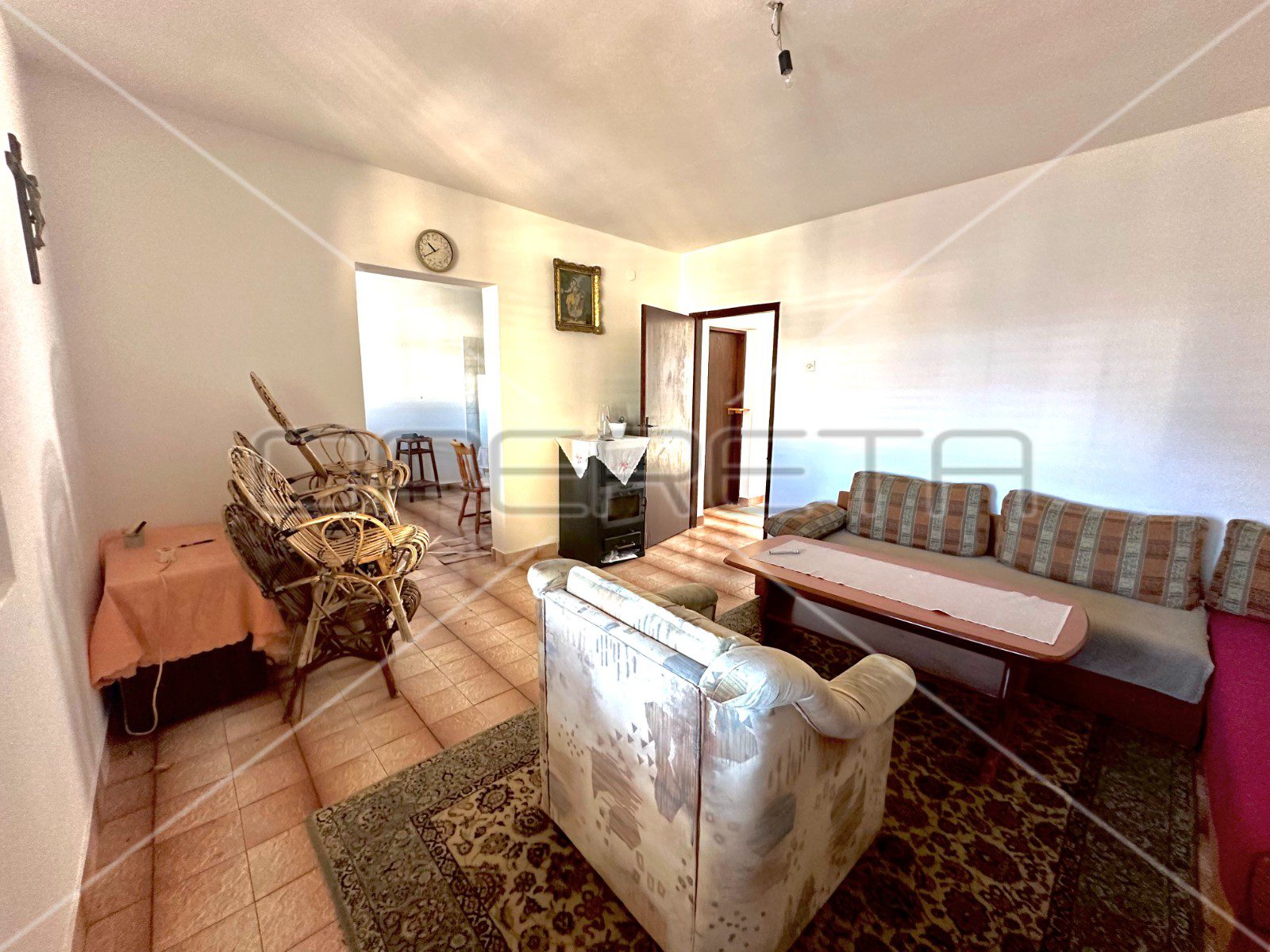 Prizemlje kuće sastoji se od dnevnog boravka koji ima izlaz na prostranu terasu s pogledom na more te odvojene kuhinje s blagovaonicom. Uz dnevni boravak i kuhinju, prizemlje obuhvaća dvije udobne sobe u čijim se blizinama nalazi i kupatilo.