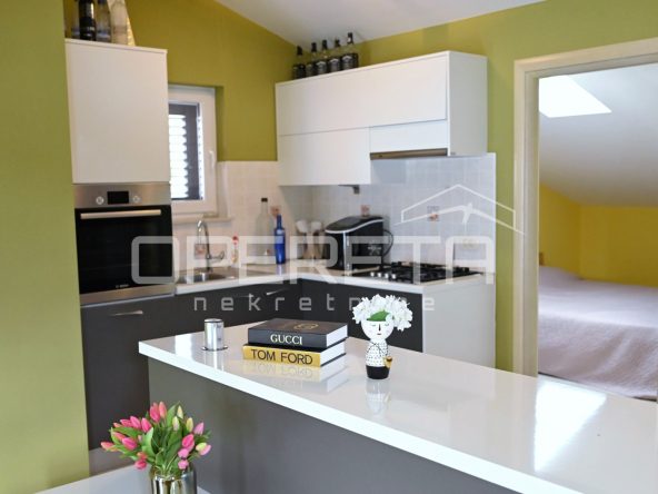 Na sjevernoj strani kuće nalazi se studio apartman s 1 spavaćom sobom, kupaonicom, dnevnim boravkom i kuhinjom.