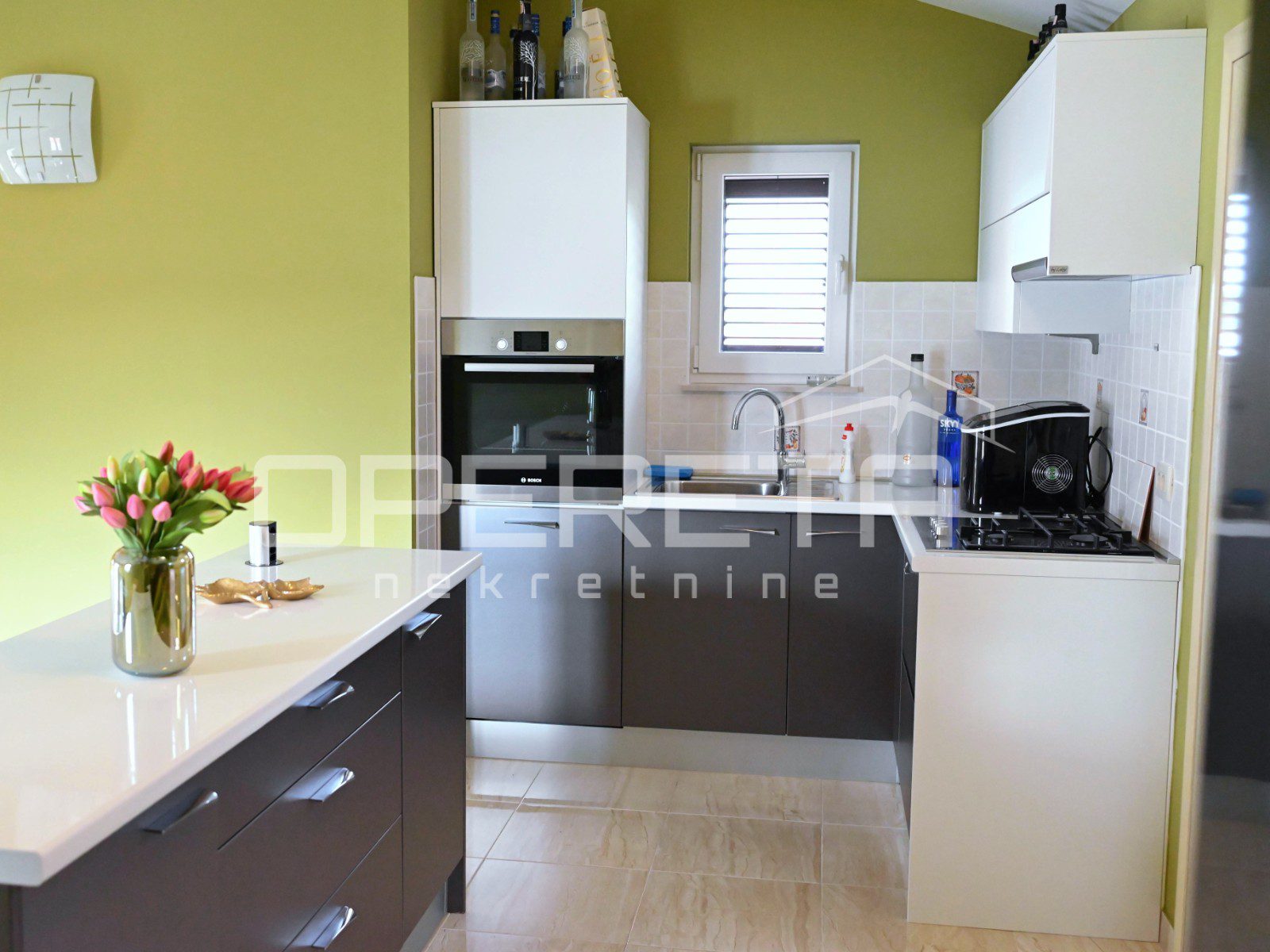 Na visokom prizemlju smjestio se stan s 2 spavaće sobe, kupaonicom, kuhinjom, dnevnim boravkom te terasom s neometanim pogledom na more.